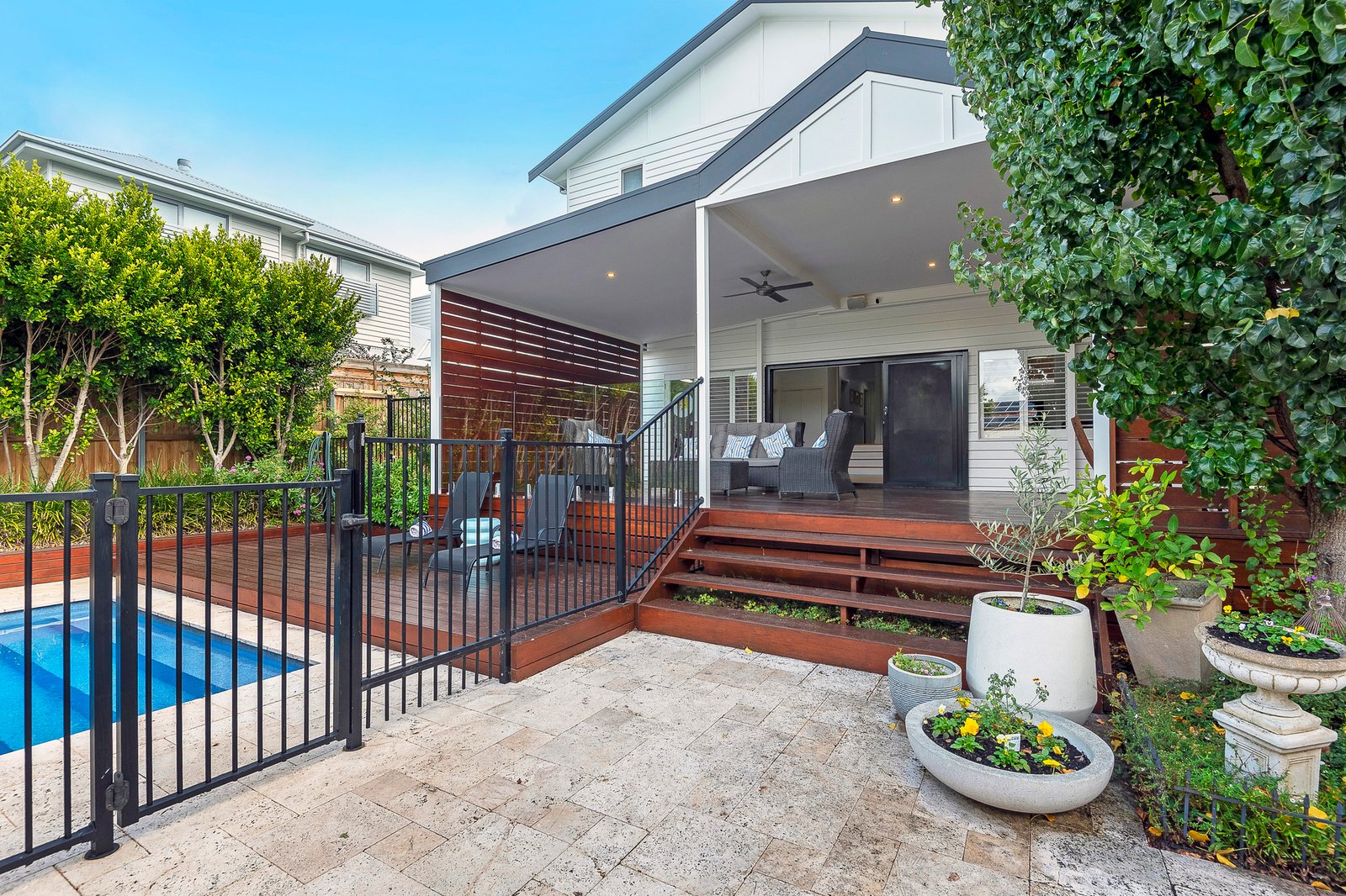 Outdoors, the sense of retreat continues with a beautifully landscaped backyard, a solar-heated pool complete with a new pump and glass filter, and multiple spaces to relax or entertain in complete privacy. The large undercover decked area is ideal for gatherings.