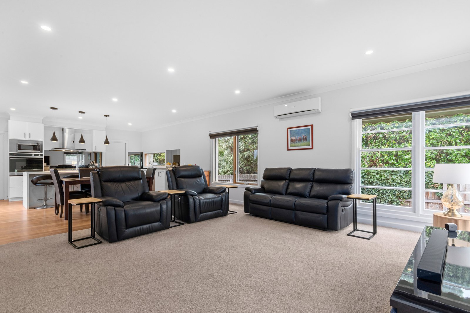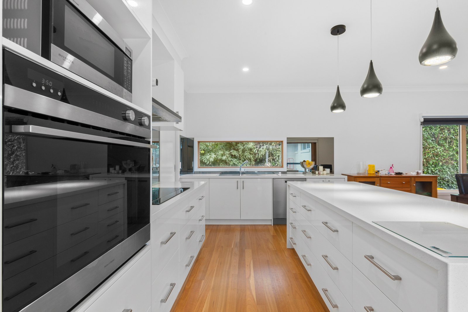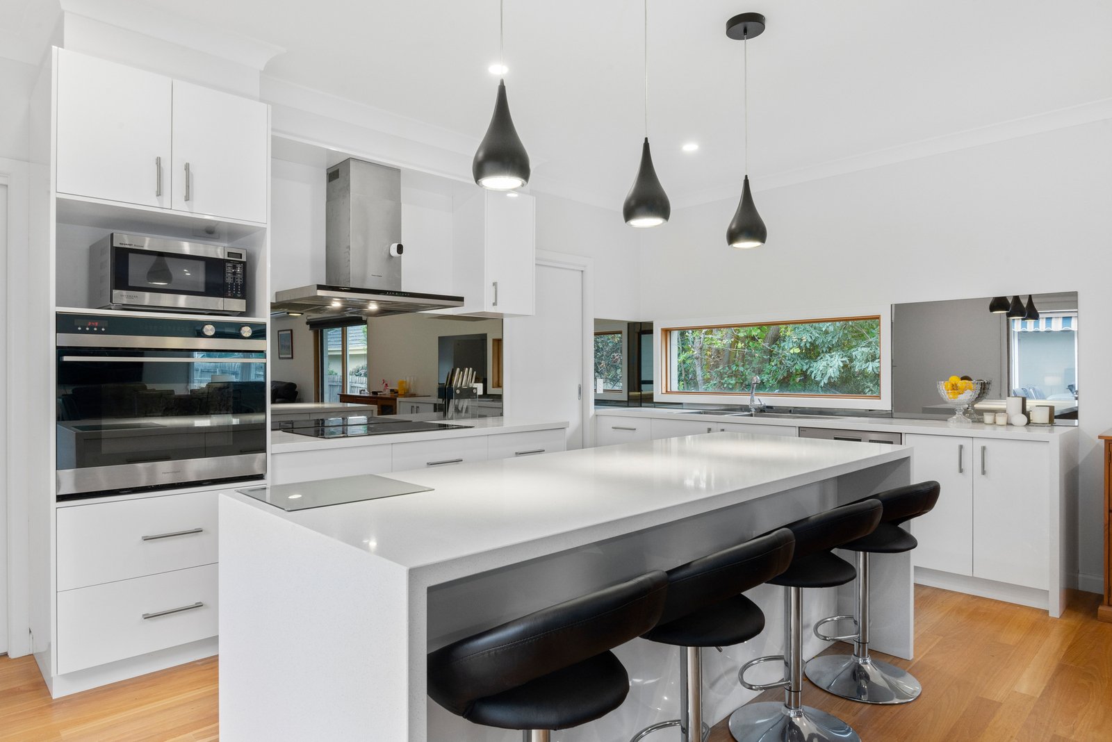 Built in the early 1950s, the Mount Gambier sandstone façade presents timeless appeal. A light-filled entry leads into the welcoming living area, revealing a spacious open plan design with north facing windows allowing natural light to flow throughout. The carpeted lounge transitions seamlessly to the dining and kitchen zone, where beautiful blackbutt timber flooring adds warmth and texture. Elegantly updated, the stylish kitchen features a large island, waterfall stone benchtops, quality Fisher & Paykel cooking appliances including a wall oven, induction cooktop and rangehood, an Asko dishwasher, smoked mirror splashbacks, contemporary pendant lighting and generous storage with a large walk in pantry. Well positioned to overlook the dining space and outdoor deck, the layout allows for easy everyday living and effortless indoor outdoor entertaining.