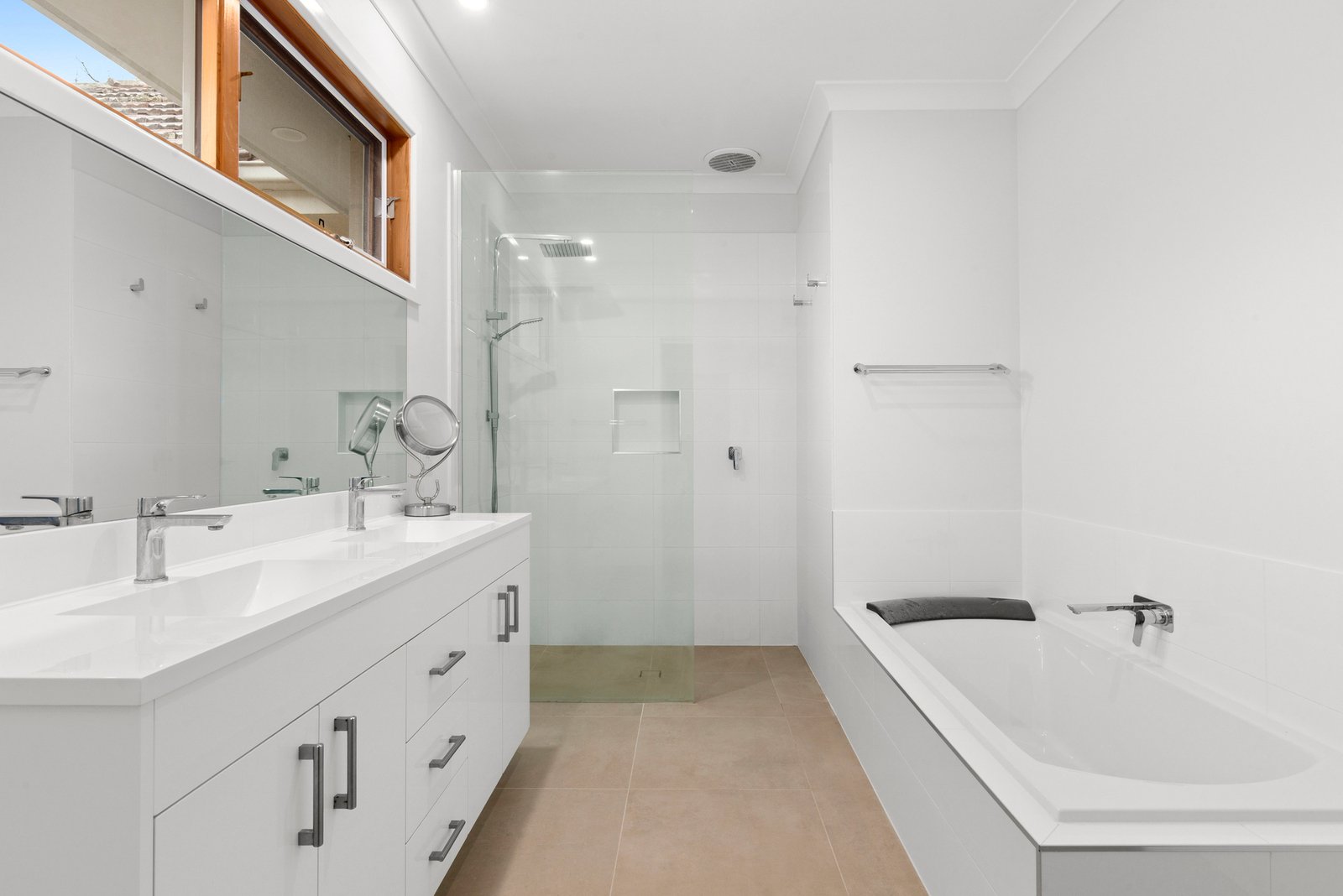 Three generous bedrooms all include built in robes, serviced by a tastefully updated bathroom featuring a bath, walk in frameless glass shower, double vanity, quality tapware and fittings, and a separate powder room.