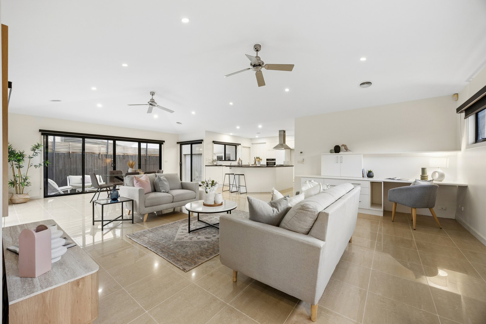 Settle into life at the centre of it all with architectural style, easy-care space, and generous single-level living. Perfectly positioned for the ultimate village lifestyle, this adaptable four-bedroom, two-bathroom home offers privacy in a beautiful bay-windowed master suite, impressive living in a vaulted-ceiling family zone, and flexible accommodation with a fourth bedroom that can easily double as a second living area.