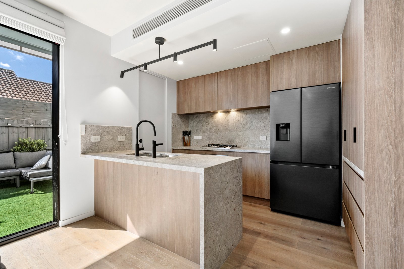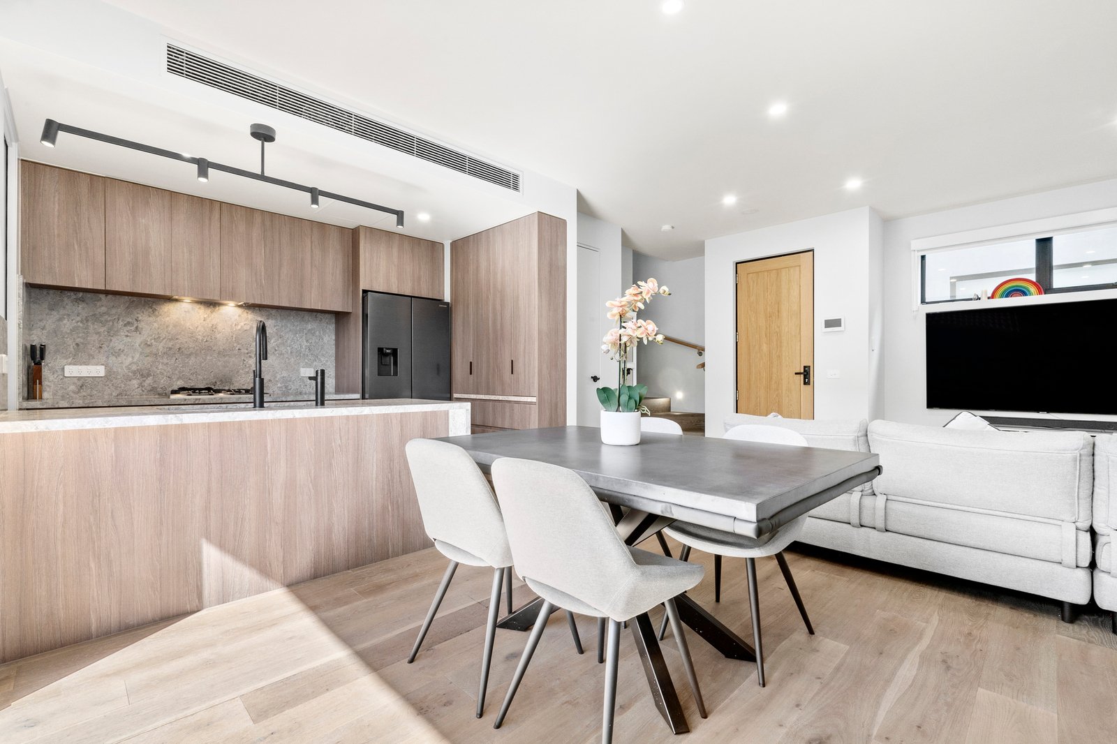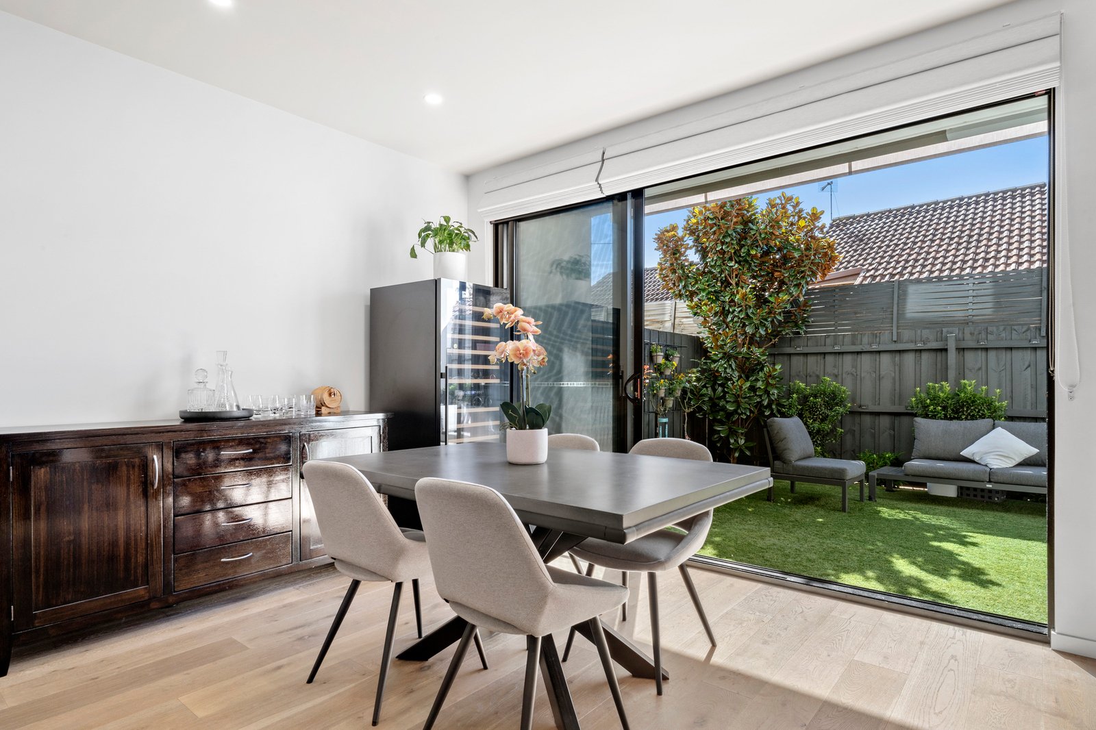 Step inside to discover a thoughtfully designed layout complemented by ducted zoned heating and cooling, ensuring year-round comfort. The light-filled living and dining areas flow seamlessly out to a north-facing terrace with fully automated awning —ideal for relaxing or entertaining in the sun.