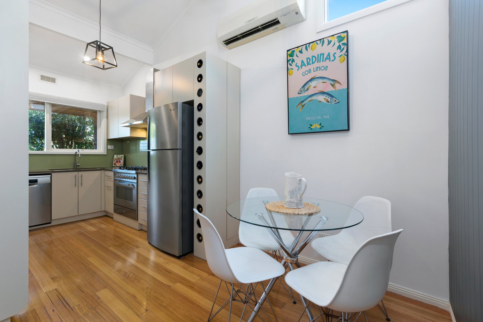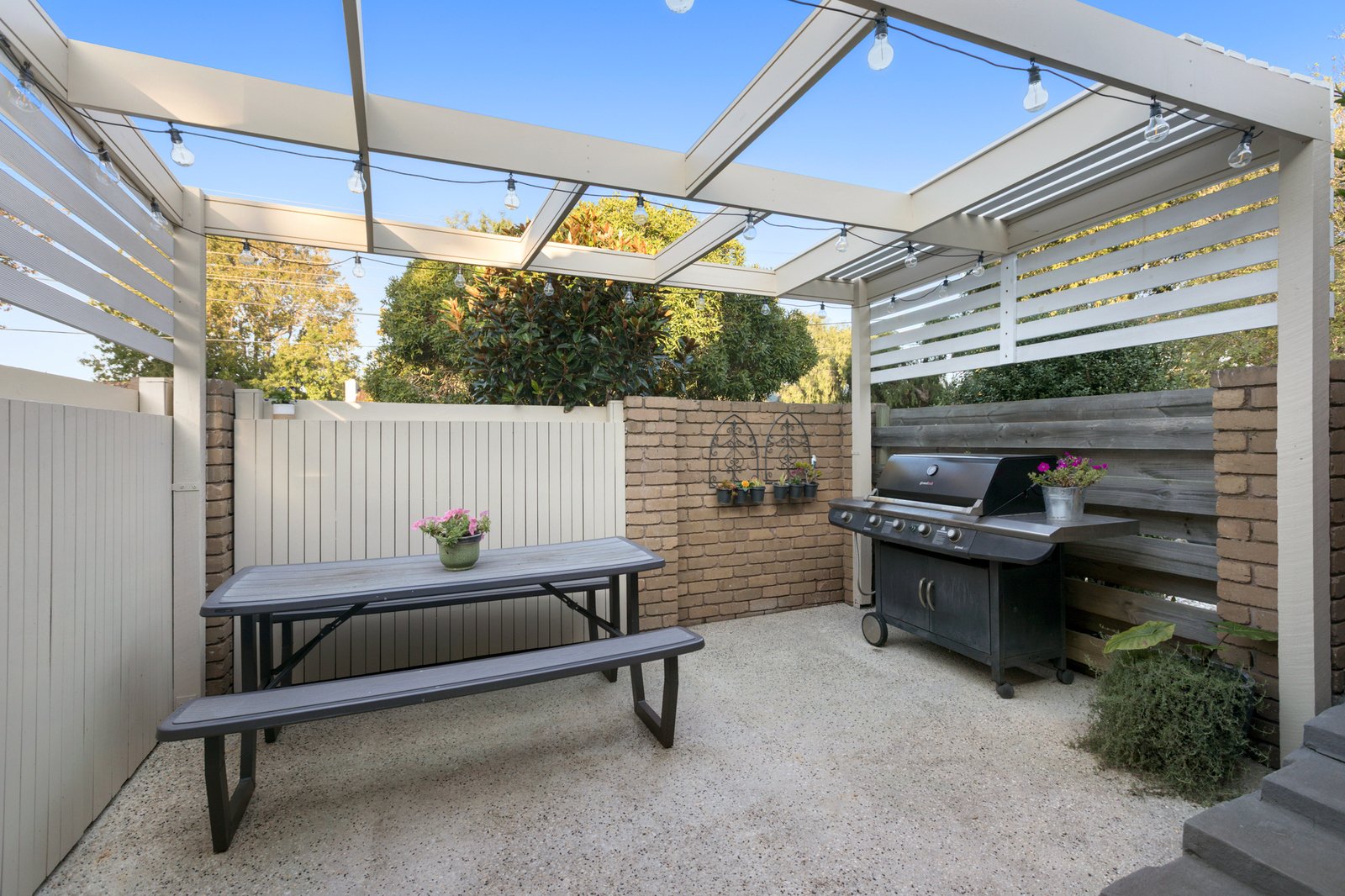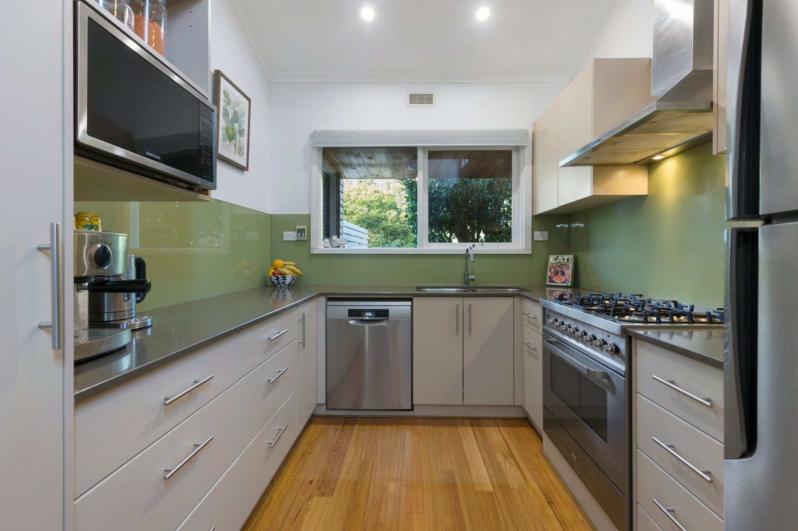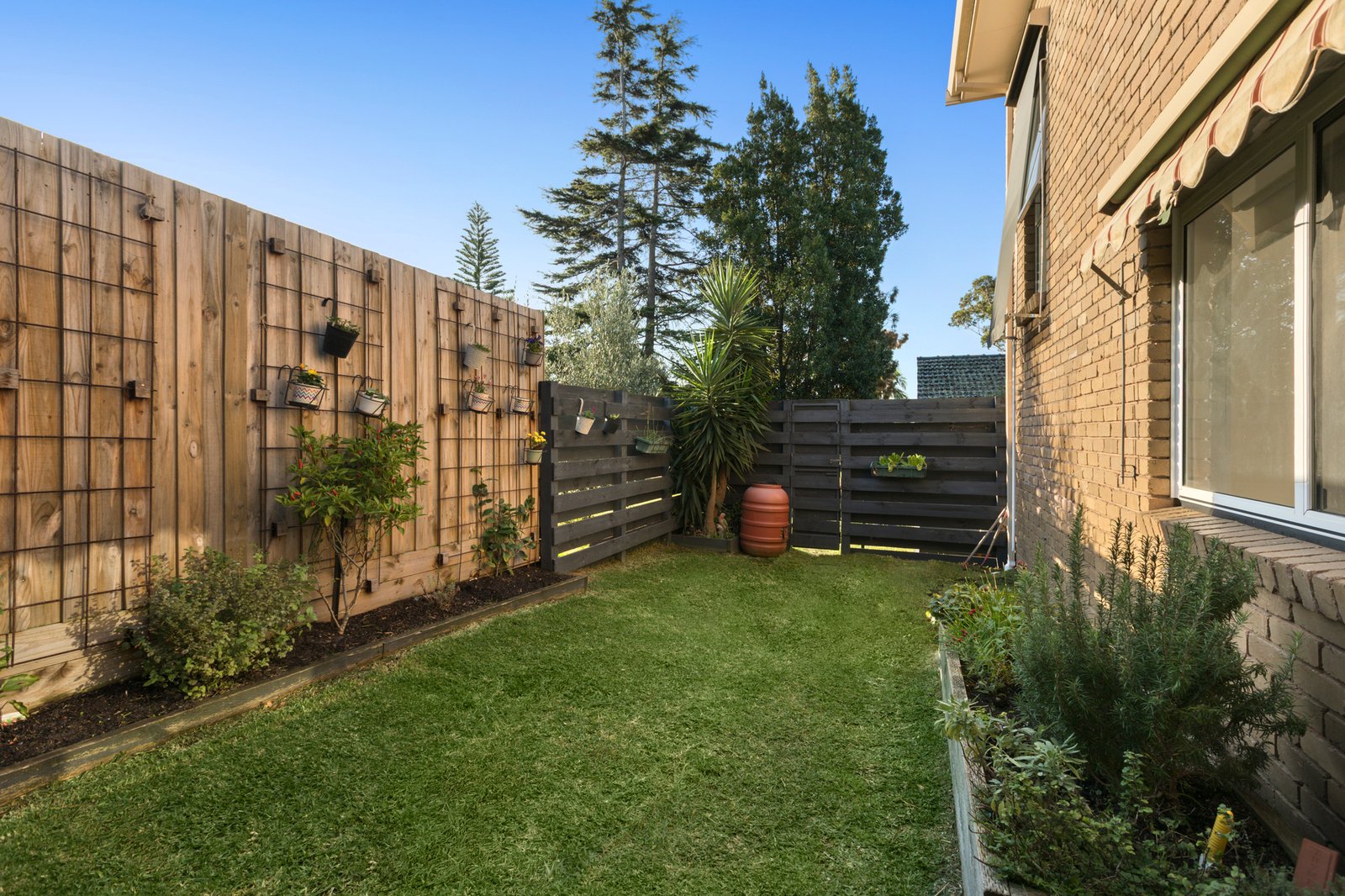 Enriched by warm hardwood floors and crowned by soaring raked ceilings enhancing the sense of light and space, the accommodation comprises a generous lounge and dining zone that wraps around to a contemporary Caesarstone kitchen with quality Bosch and Ilve appliances. Extending the living space, the private alfresco courtyard has mains gas plumbed ready for your BBQ, while out the back there is a secure yard & lawn.
