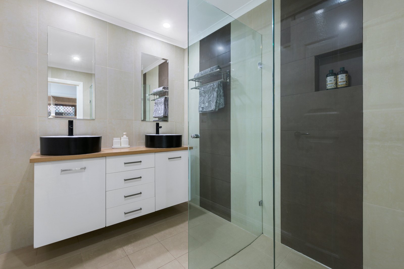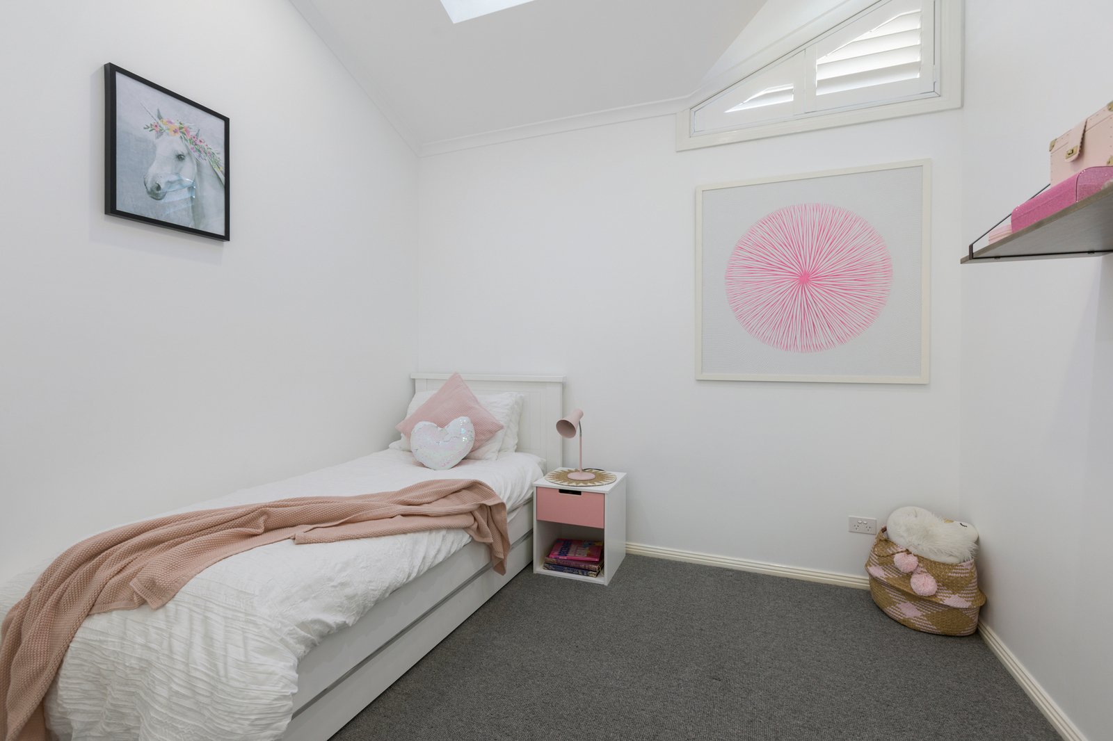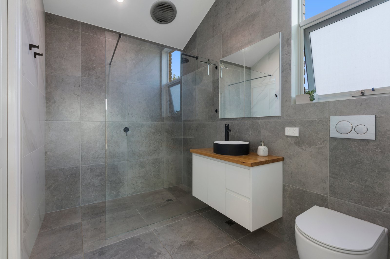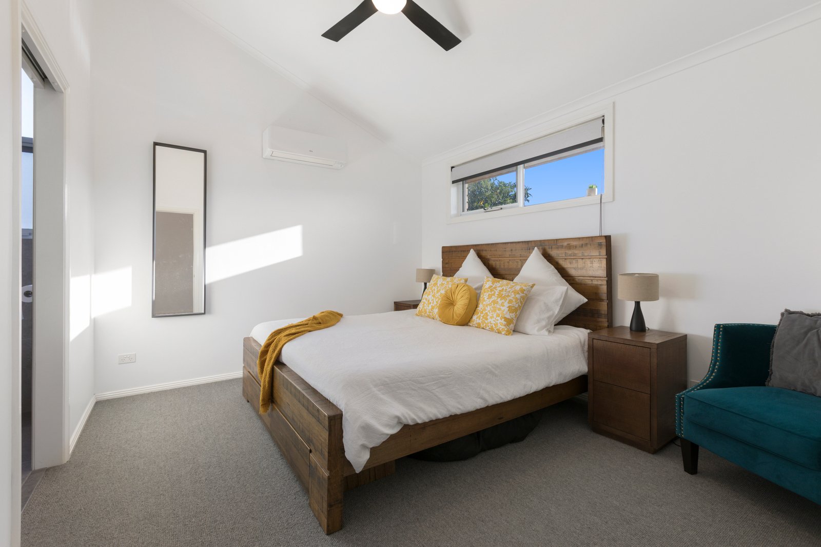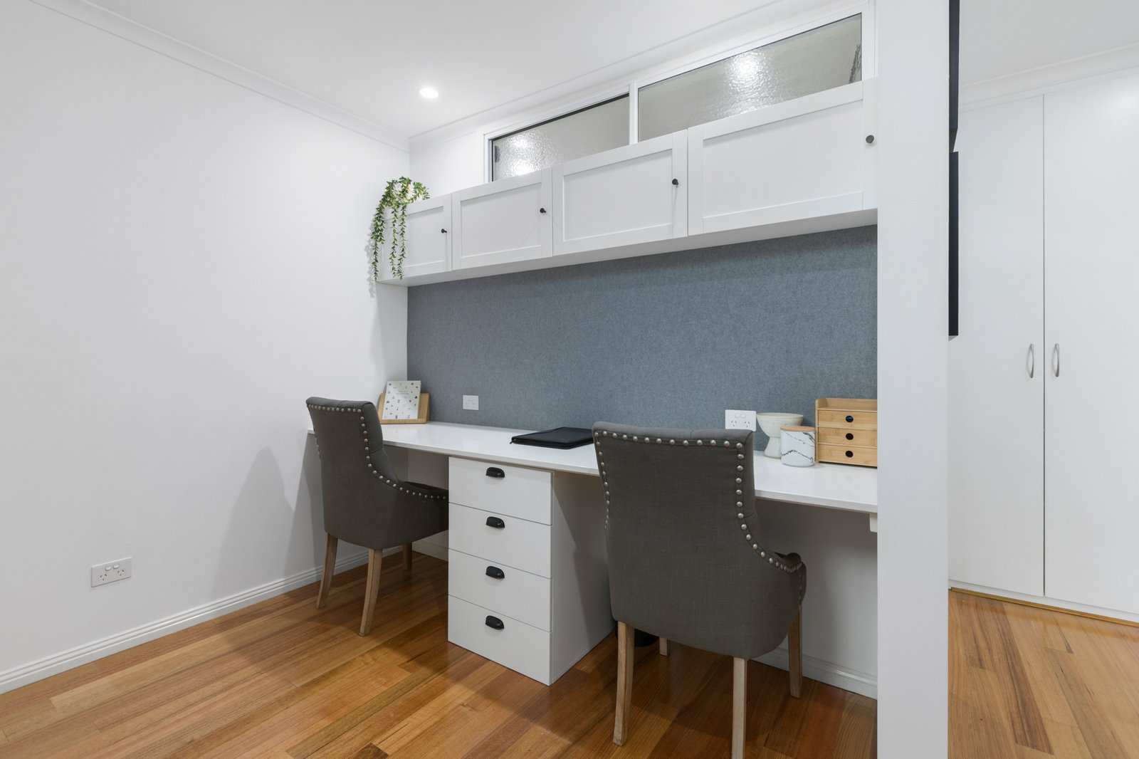 A ground-floor bedroom and stylish bathroom with twin black basins and a handcrafted timber benchtop is a sought-after inclusion - upstairs is the main suite with a luxe fully-tiled bathroom and walk-in wardrobing, as well as a third bedroom with robes and a remote Velux window. Premium carpet, plantation shutters and ceiling fans are amongst the highlights, whilst the fitted study with stone worksurface plus a laundry with access out to the yard are functional highlights.