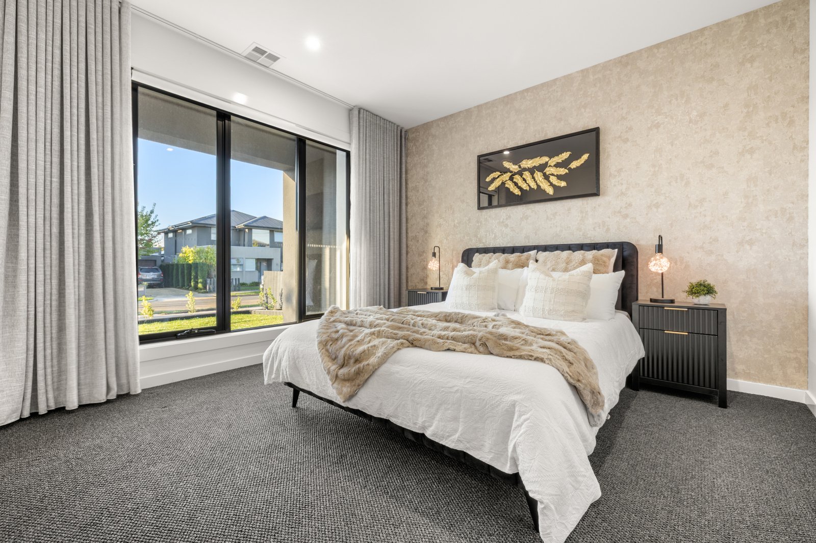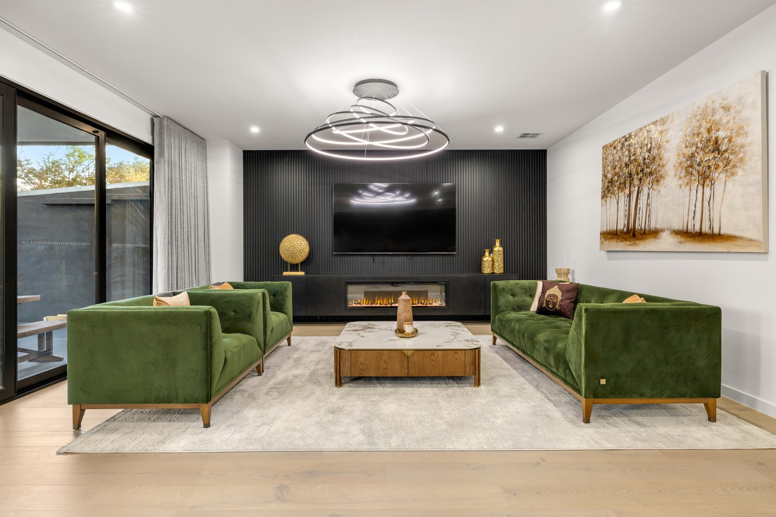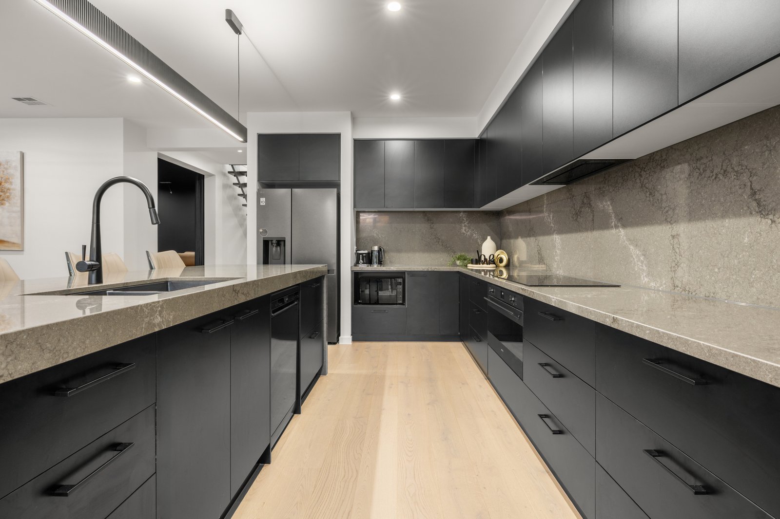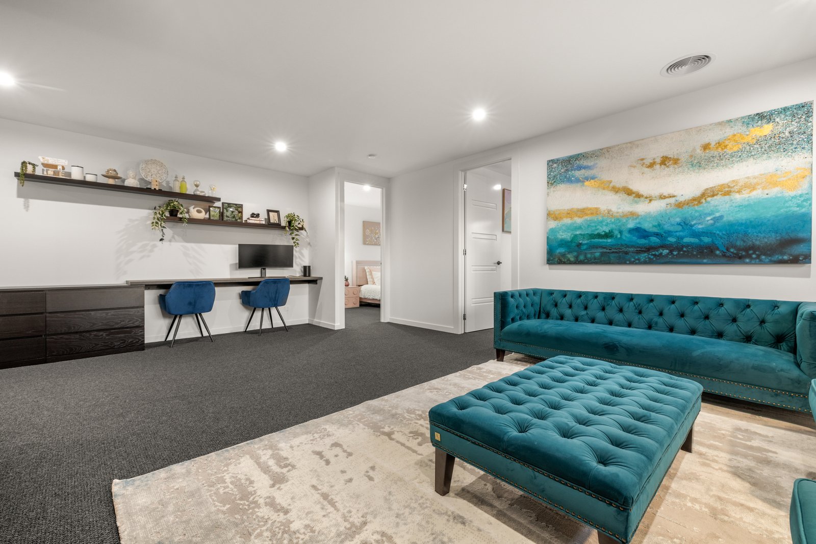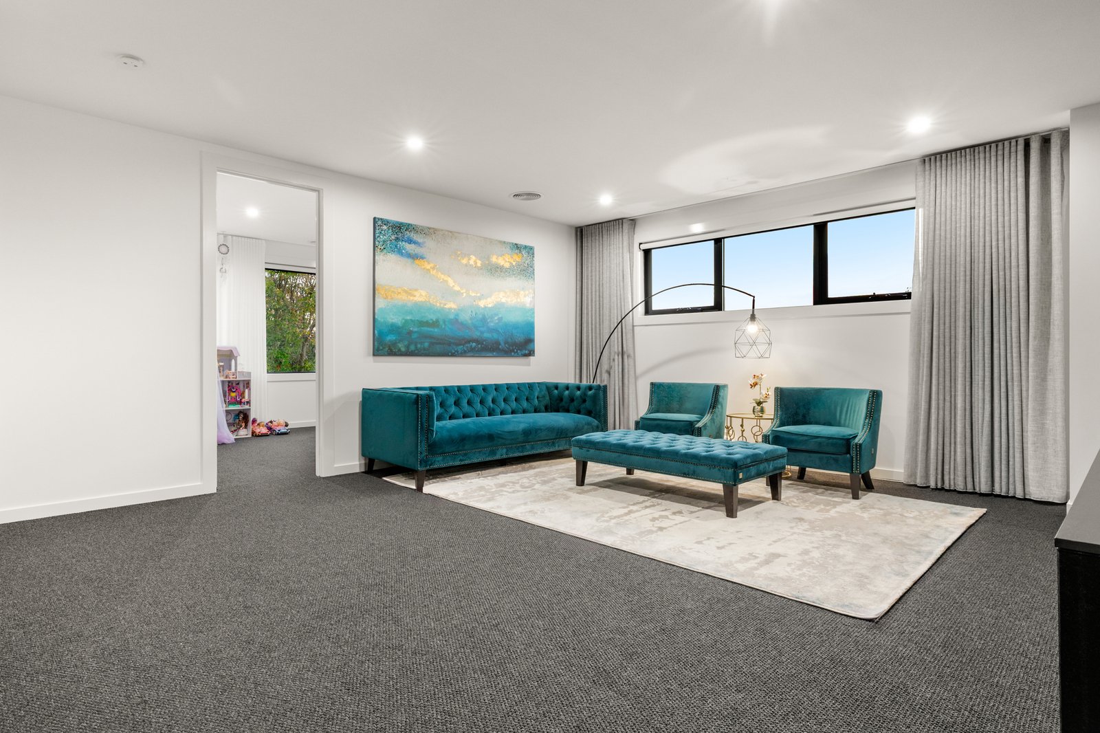 Showcasing a 5 Star fit-out featuring premium Oak floors, loop-pile carpets and premium stone benchtops, the home offers opulent extras including sheer curtains (plus block-outs to cocoon the media-lounge), app-controlled motorised blinds, floor-to-ceiling bathroom tiling and a wide-span decorative fireplace for each main living zones. Even the lighting is optioned up with a range of warm and cool schemes and LED features - extending from bathroom mirrors, to under-step strip-lighting for a grand entry!