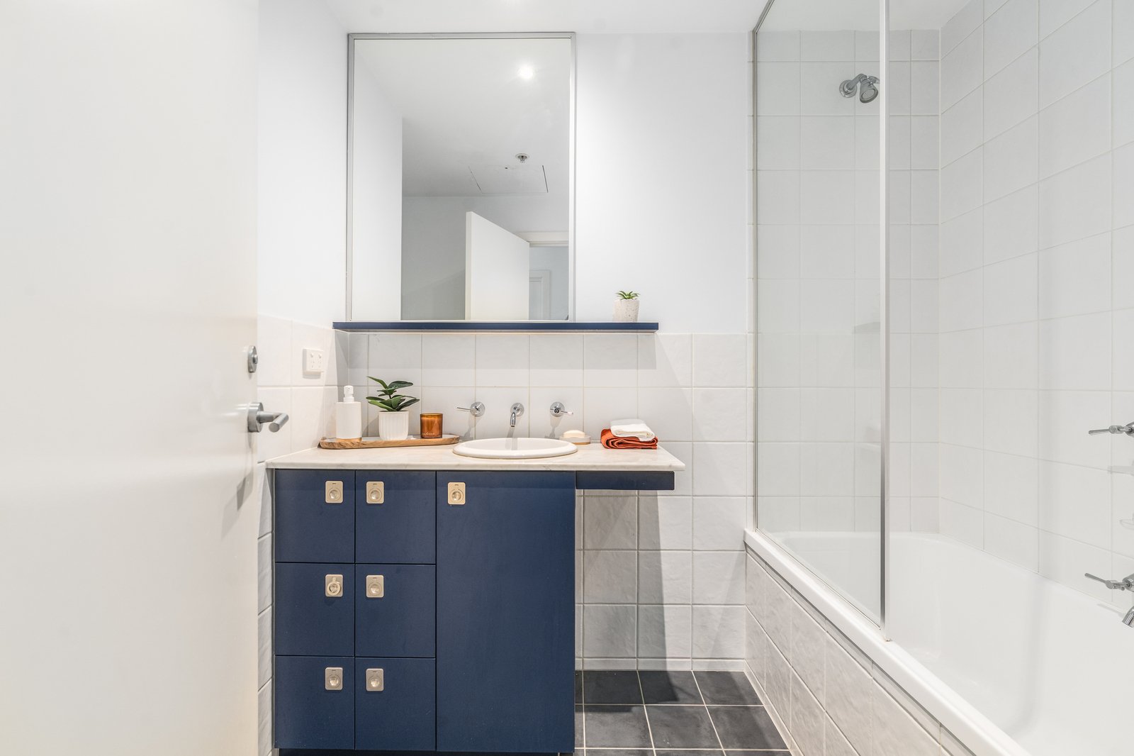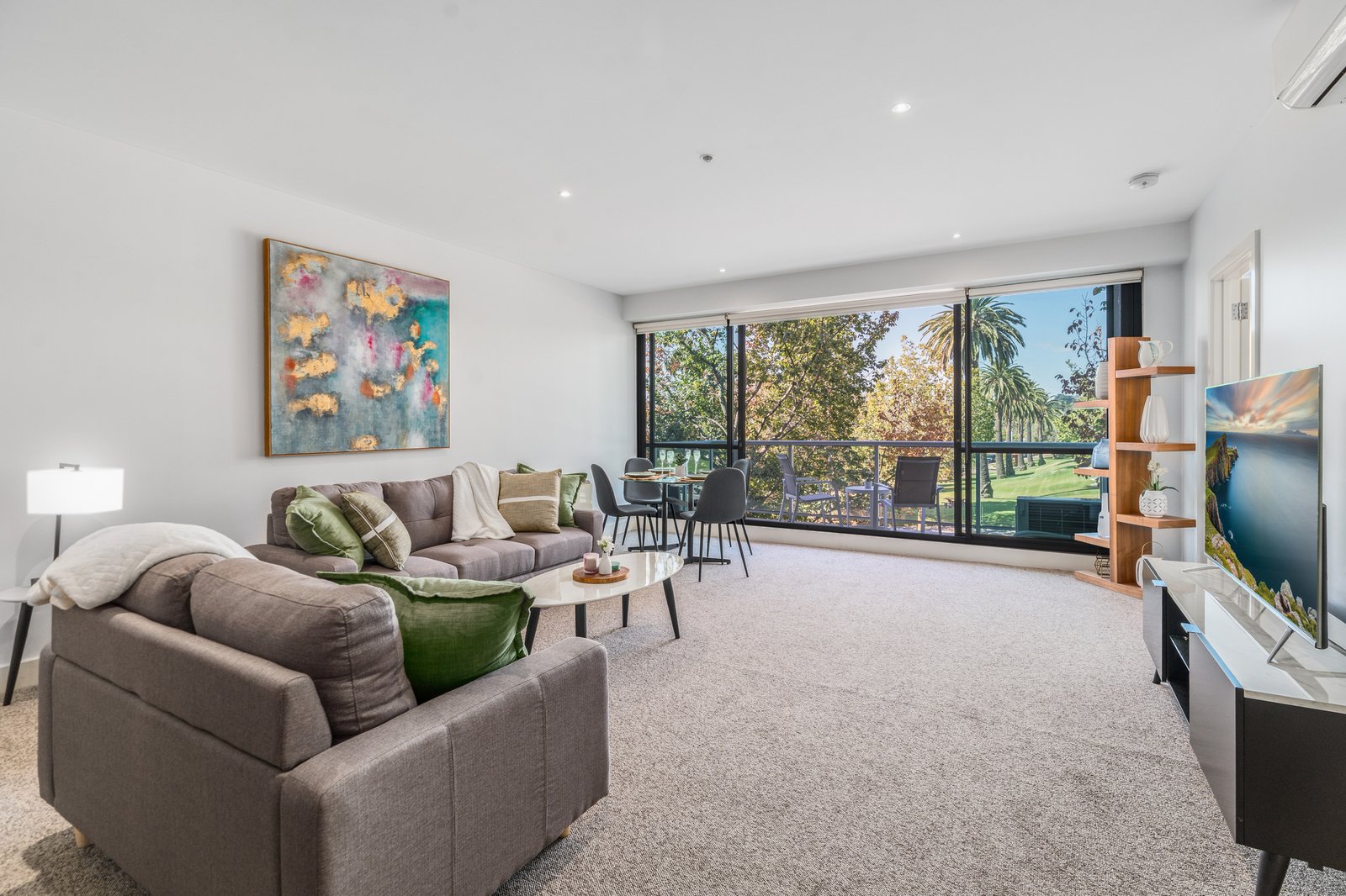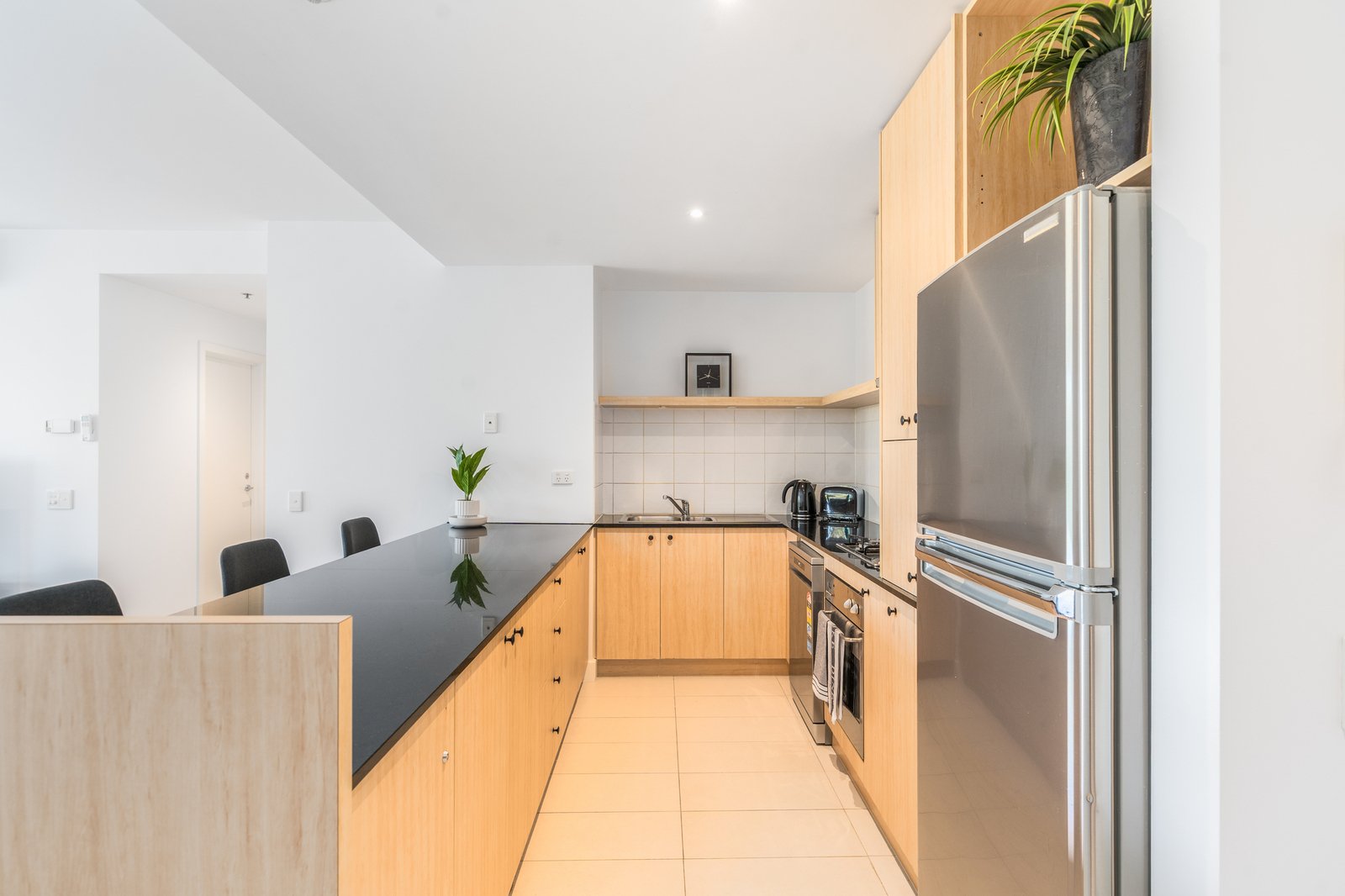 Entry to the apartment reveals a spacious open plan kitchen, dining and living area featuring light interiors, square set ceilings, and a tranquil backdrop of picturesque parkland views. The quality kitchen features granite benchtops, modern appliances including a 600mm oven, gas cooktop, dishwasher, ample bench space and generous storage. Glass sliders open from the lounge to a private balcony, providing the perfect spot to enjoy your morning coffee or evening nightcap while taking in the vibrant surrounds of the bay.