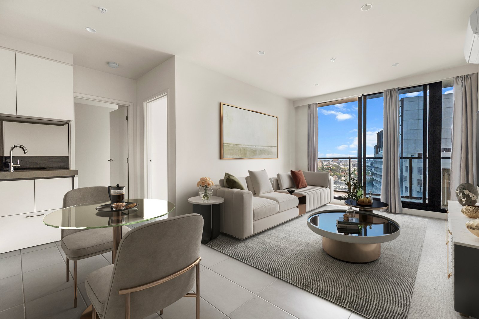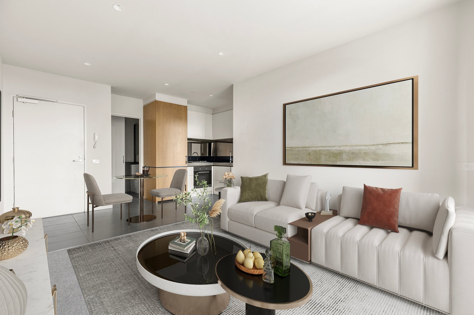 Tailored to busy professionals, couples or astute investors, this residence delivers the ultimate low-maintenance lifestyle in one of Melbourne’s most energetic precincts. The stone-appointed kitchen is finished with premium stainless steel Miele appliances, combining streamlined cabinetry with quality craftsmanship to create a sophisticated yet practical culinary space. Comfort is assured year-round with air-conditioning to both the living domain and main bedroom, while the building’s comprehensive security including controlled lift access and multiple entry points offers peace of mind. Beyond your front door, residents enjoy exclusive access to resort-style facilities including a swimming pool, spa, sauna, fully equipped gym and lounge, transforming everyday living into a first-class experience. A secure single car space completes the package.