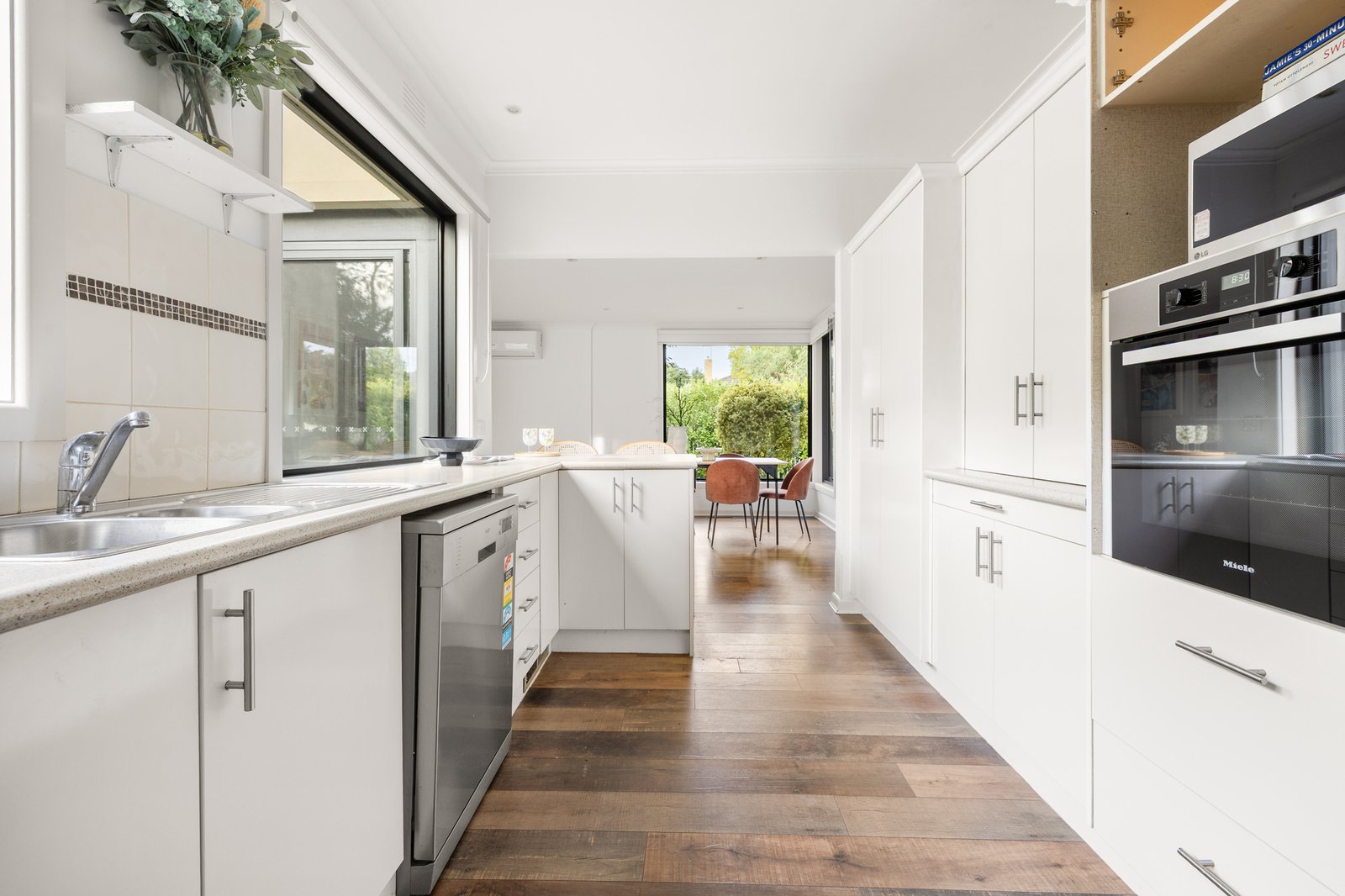 At the heart of the home, the kitchen connects effortlessly with the dining and living domains, creating a functional hub for everyday living and entertaining. The adjoining living area is both generous and comfortable, offering a relaxed setting enhanced by garden outlooks and seamless flow to the outdoor zones.