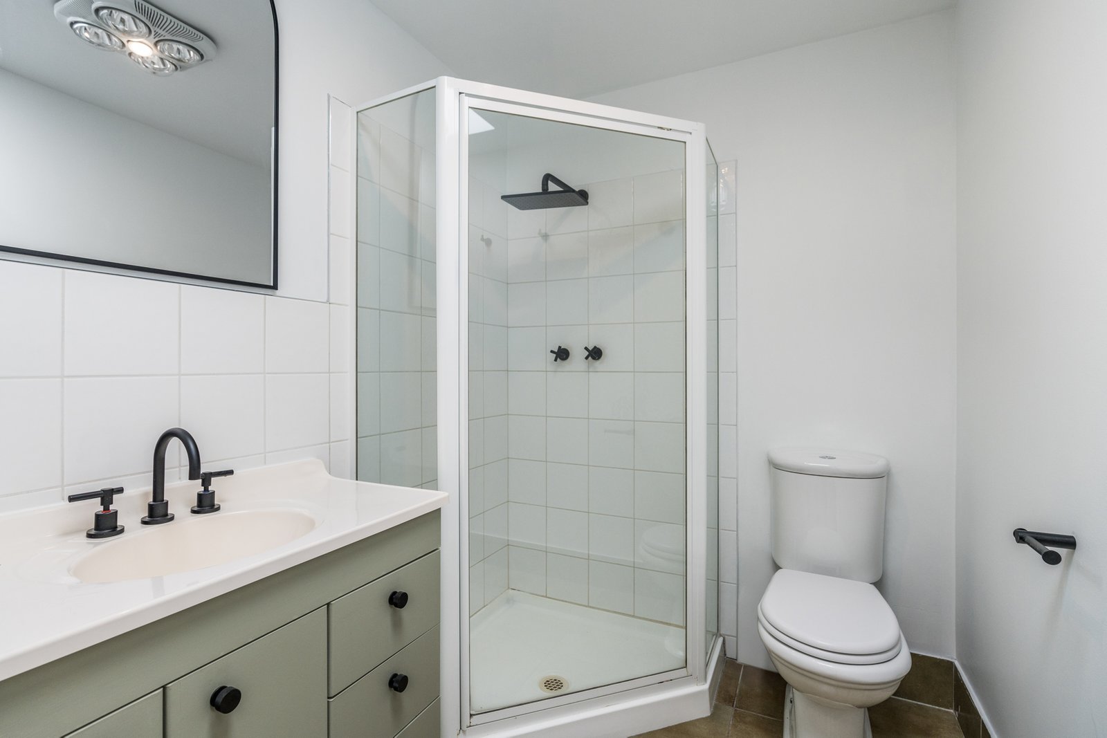 The main bathroom is bright and airy thanks to a skylight and includes a shower, toilet, and vanity, with the added benefit of an adjoining laundry for everyday practicality.