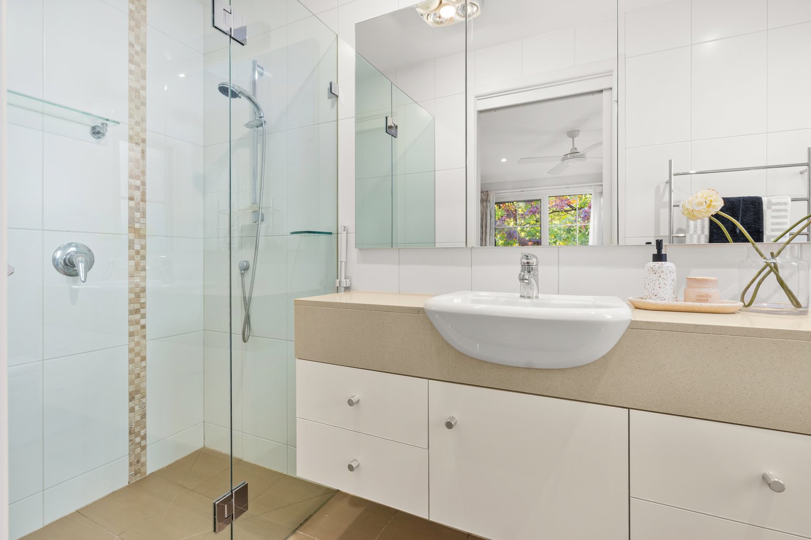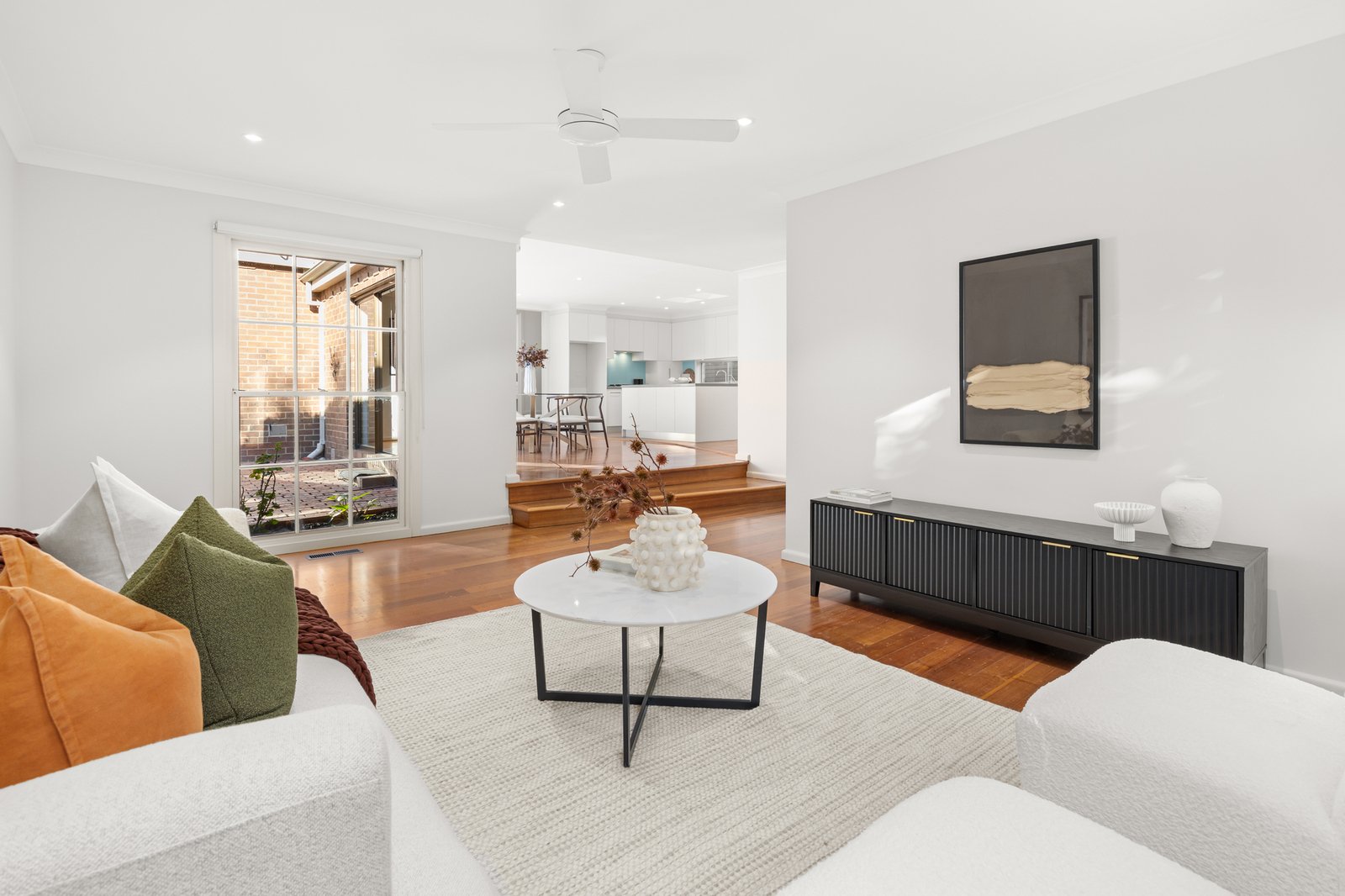 Accommodation is exceptionally well considered, with four genuine bedrooms providing flexibility for growing families. The main bedroom enjoys its own ensuite and built-in robes, while the additional bedrooms are serviced by a bright central bathroom with separate bath and shower.