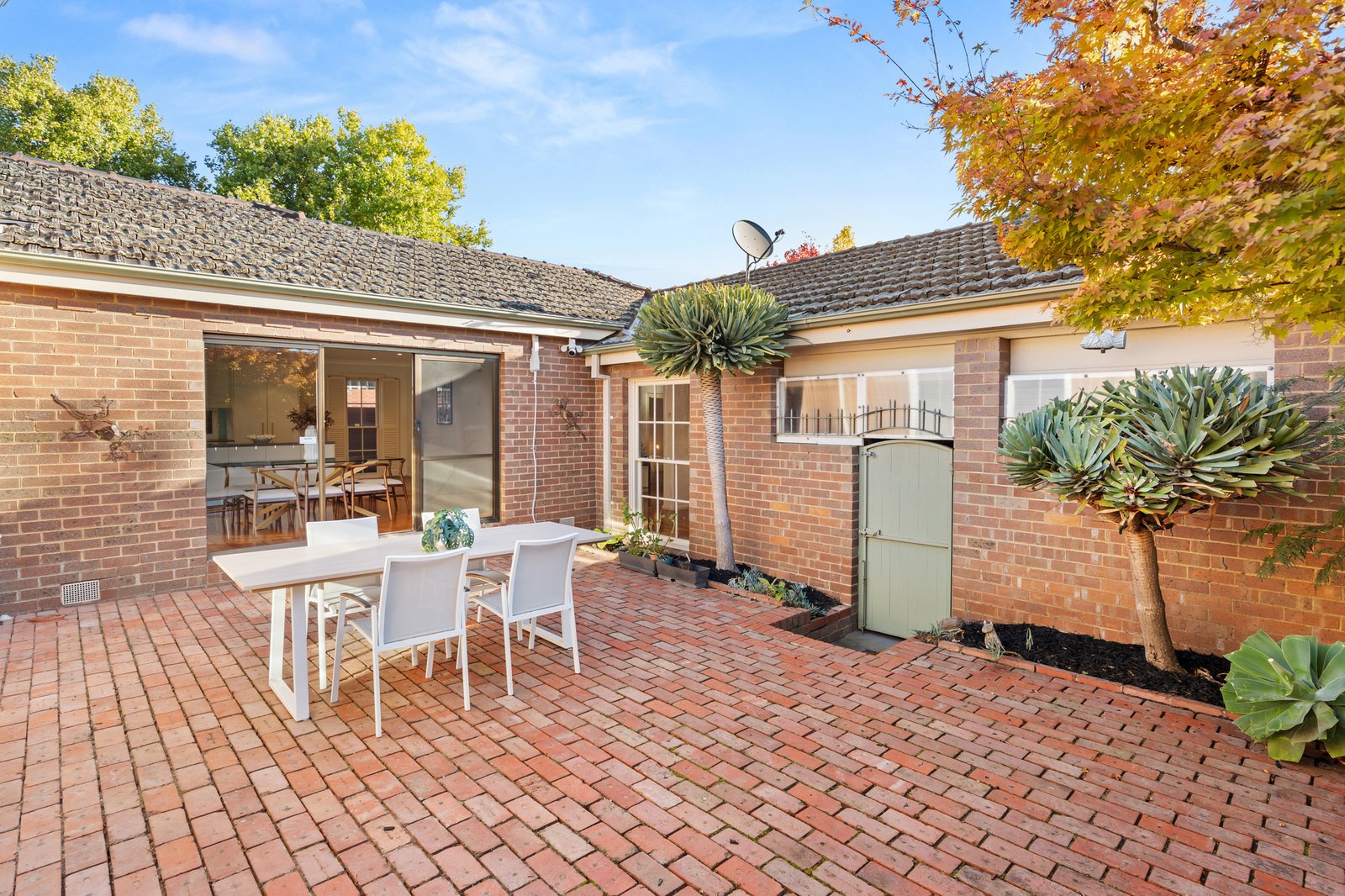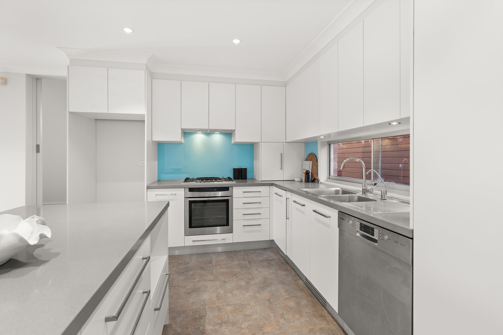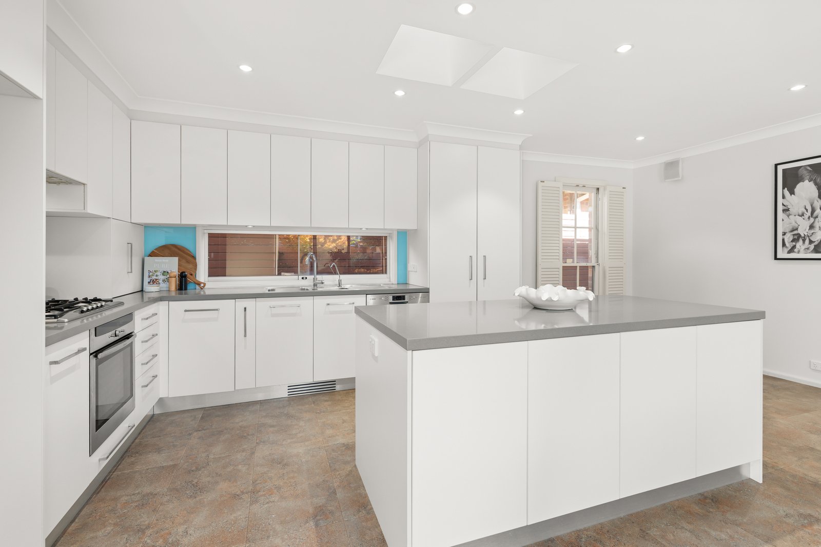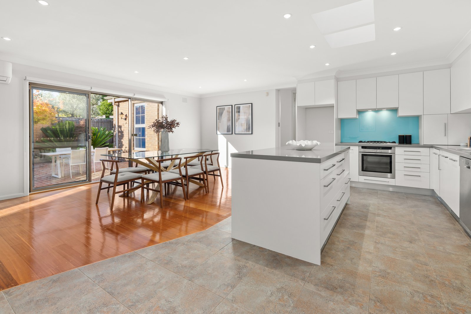 Designed for comfortable living and easy entertaining, the home opens to a welcoming formal lounge before flowing through to a spacious open-plan kitchen and dining domain, where a large stone island bench, extensive storage and quality appliances create a highly practical central hub for everyday life. Sliding doors extend the living outdoors to a private brick-paved courtyard, ideal for relaxed alfresco dining and low-maintenance entertaining.