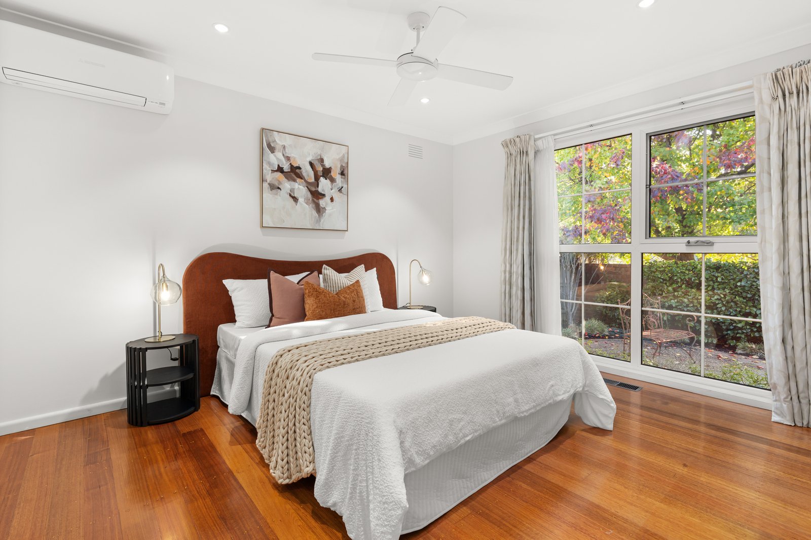 Warm timber flooring, abundant natural light, multiple split-system heating and cooling units, ceiling fans and a thoughtful floorplan all enhance day-to-day comfort, while the double lock-up garage adds valuable secure parking and storage.