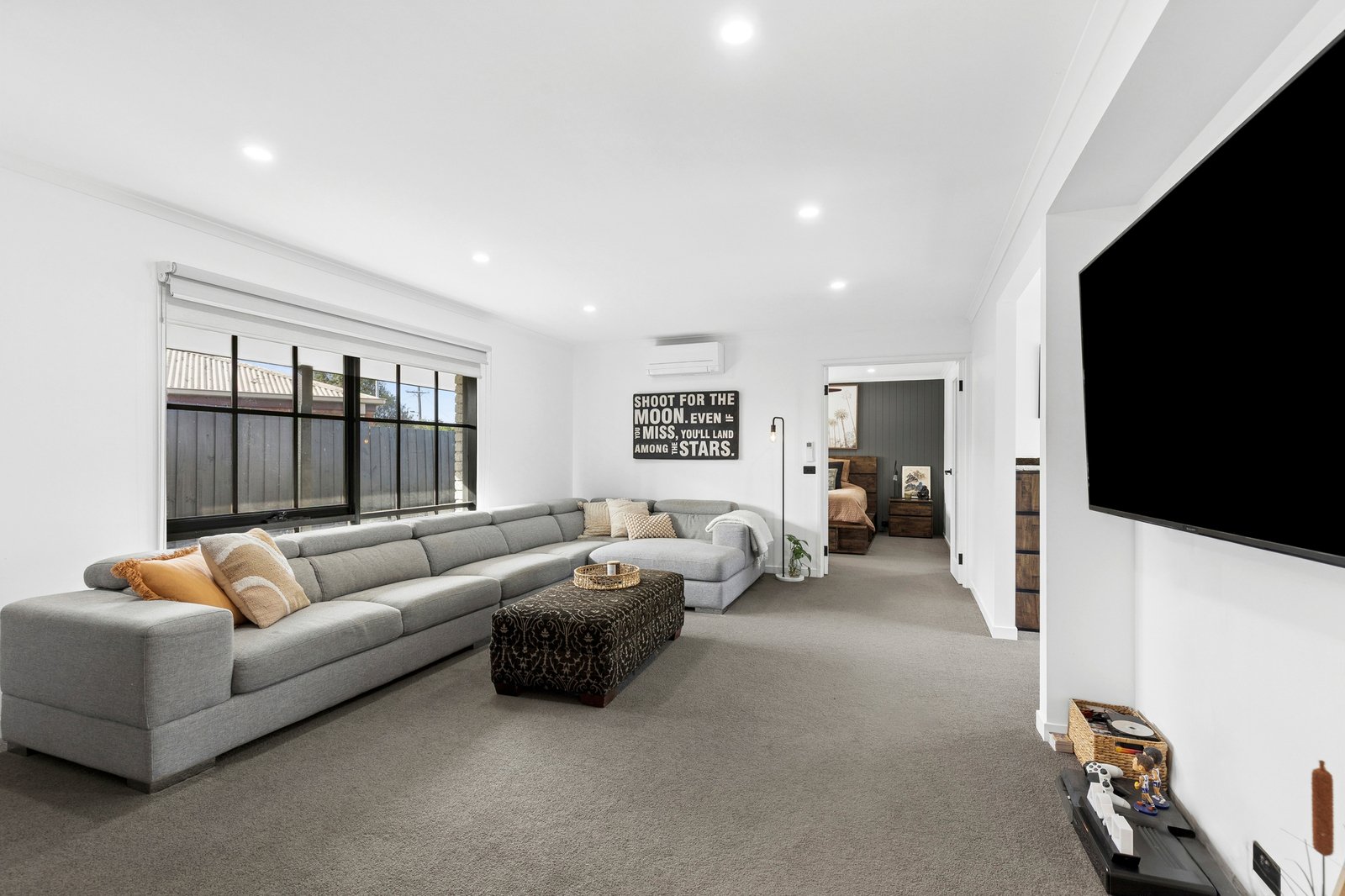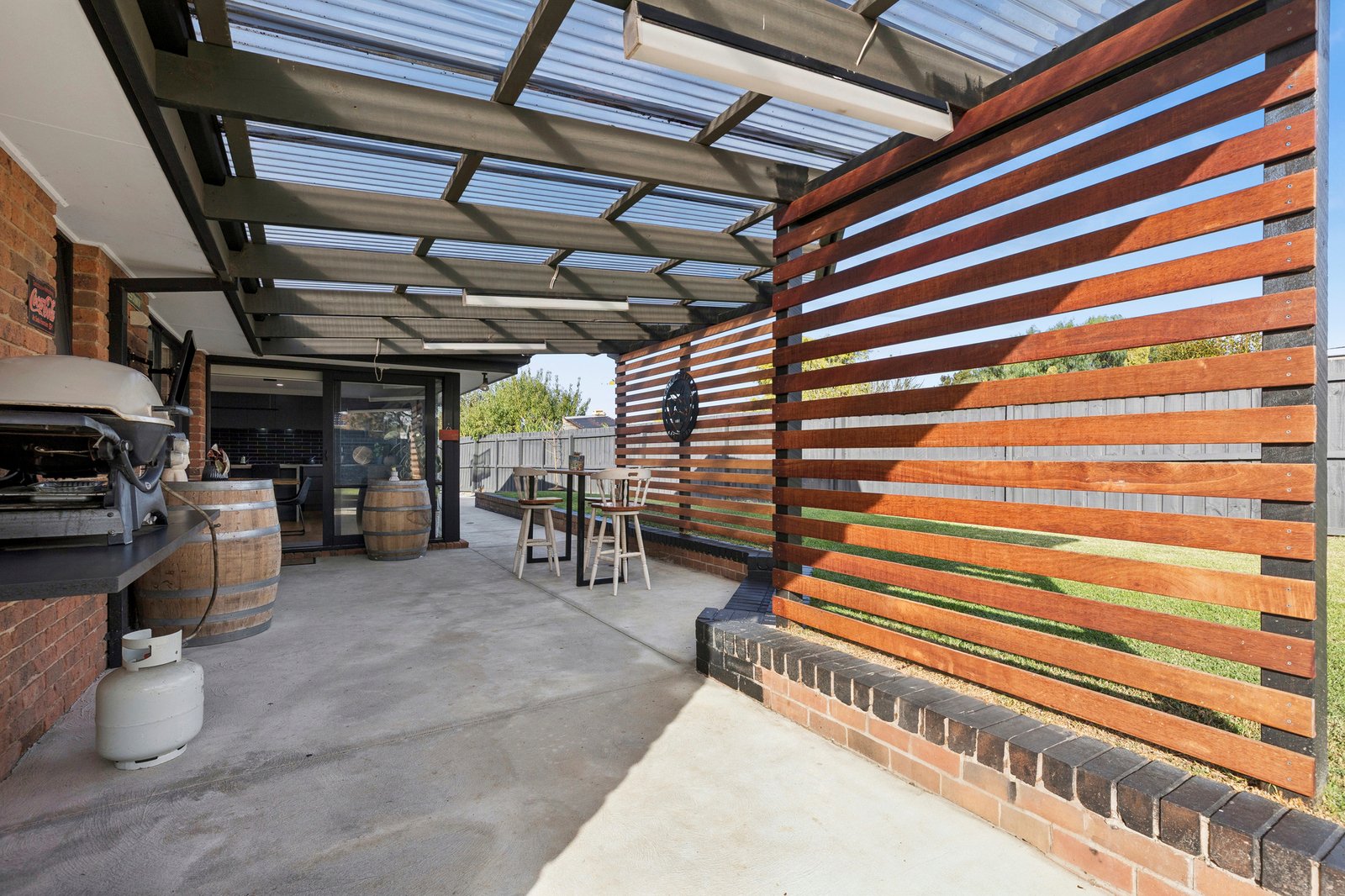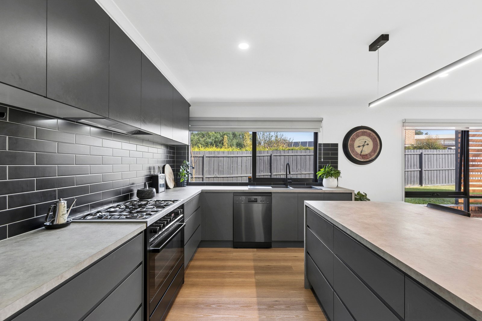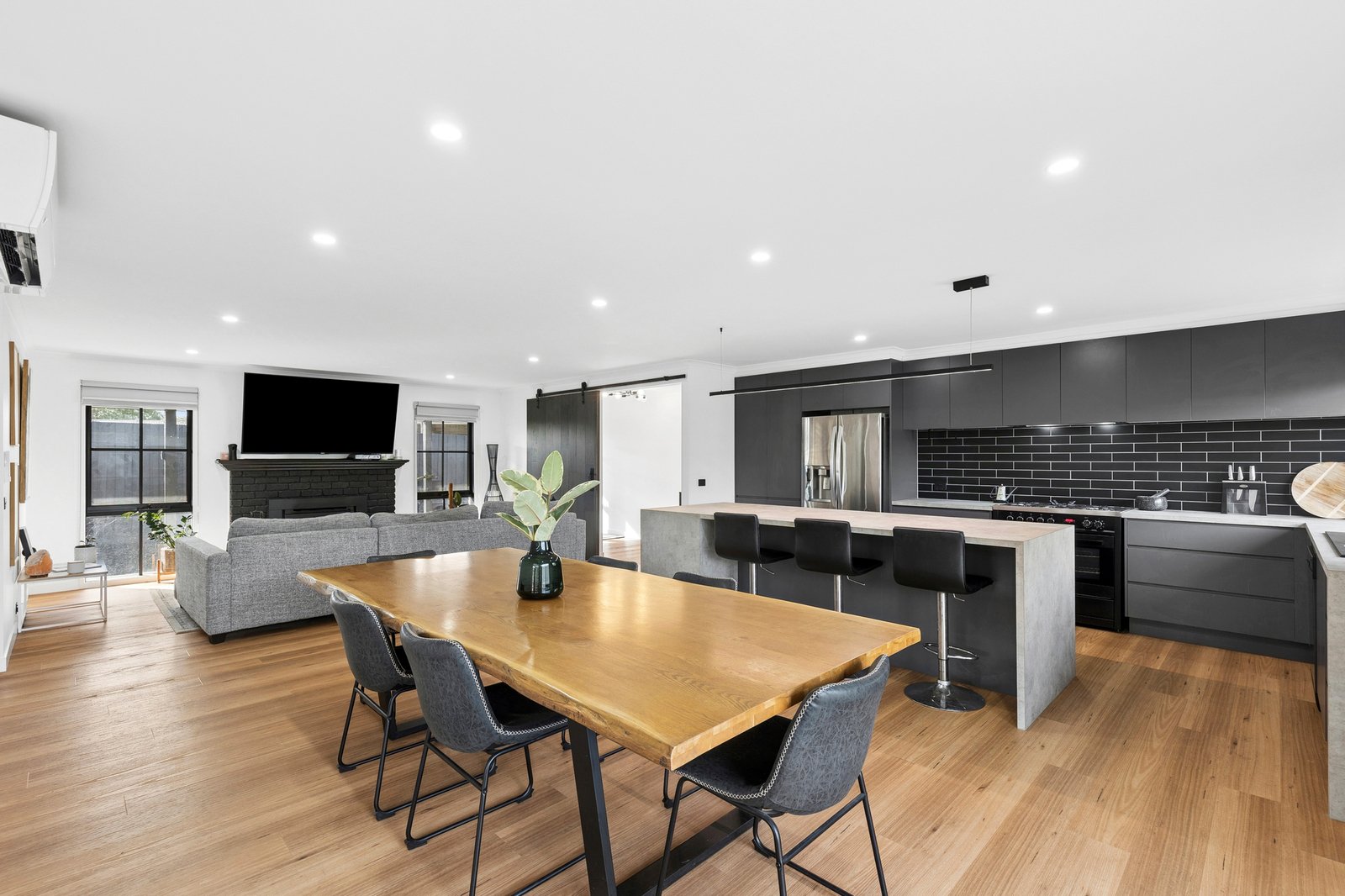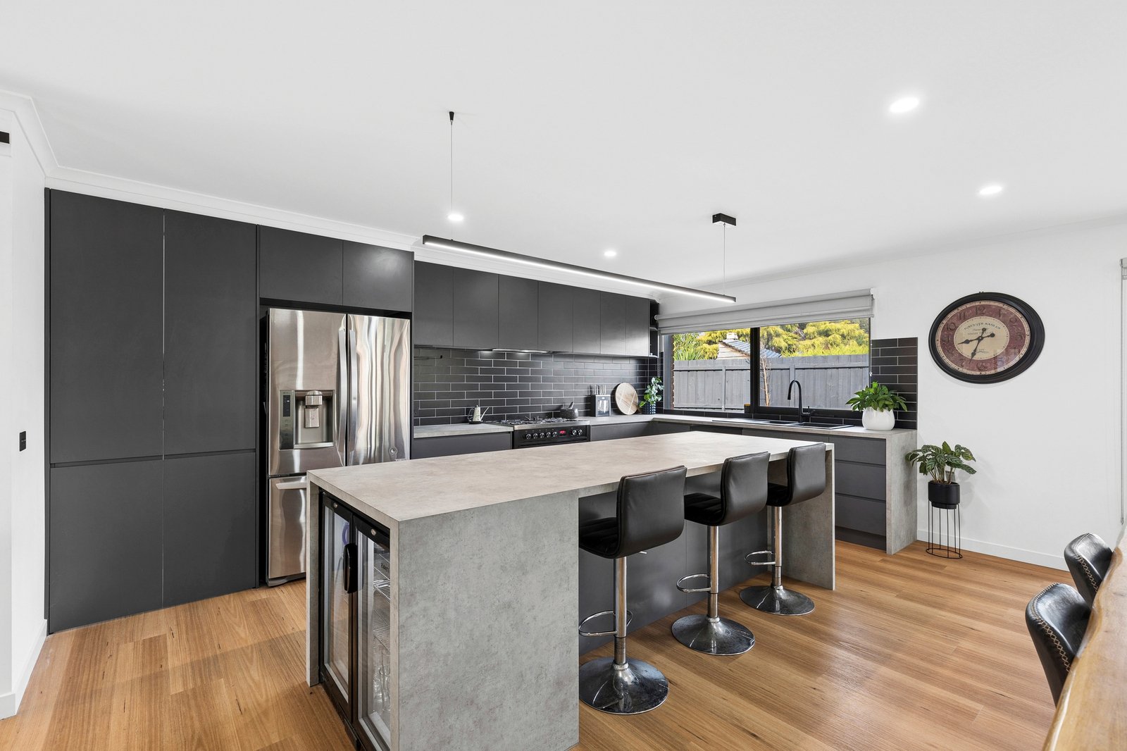 Tastefully updated throughout to offer elegant style and contemporary functionality, this quality home delivers outstanding family living. Occupying an expansive 784m² (approx.) allotment, it offers generous spaces indoors and out, ideal for the modern lifestyle. Set in a family-friendly pocket surrounded by local parks and reserves, the Bellarine Rail Trail, within minutes of Leopold Primary and all the shopping and amenities of Gateway Plaza, convenience is on your doorstep. Just 15 minutes (approx.) from the CBD, with easy access to the Bellarine Peninsula, enjoy peaceful community living moments from city or surf. A long north-facing verandah leads to a light-filled entry where contemporary interiors and modern flooring introduce the sophisticated style within. A stunning barn door opens into the heart of the home, revealing a spacious open-plan kitchen, dining and living area, with a brick mantel and woodfire heater creating an inviting atmosphere. The sleek kitchen features an island bench with integrated drinks fridge, quality appliances including a 900mm oven and cooktop, dishwasher, ample bench space and a large butler’s pantry with a second sink. Positioned to overlook the dining area and alfresco, the layout caters for effortless indoor-outdoor entertaining. The adjacent formal lounge offers a quiet space to retreat, with an adjoining office providing the perfect spot to work from home. The main bedroom is a privately zoned retreat, featuring walk-through robes and a contemporary ensuite finished in floor-to-ceiling tiles, with herringbone feature tile, frameless-glass walk-in shower and double stone-topped vanity. Three additional bedrooms are positioned in a rear wing, two include built-in robes, all serviced by a stylish main bathroom and separate wc. Additional features include four split system heating and cooling units, ceiling fans, rear laundry with direct external access and generous linen storage. Outside, the undercover alfresco provides a private and sheltered area for relaxing or entertaining, while the huge backyard offers plenty of space for the kids to play in a secure setting. The wide driveway, double garage and excellent side access accommodate ample off-street parking. A beautifully updated home offering space, style and modern comfort, this is an ideal opportunity for families seeking quality living in a peaceful and convenient community setting.