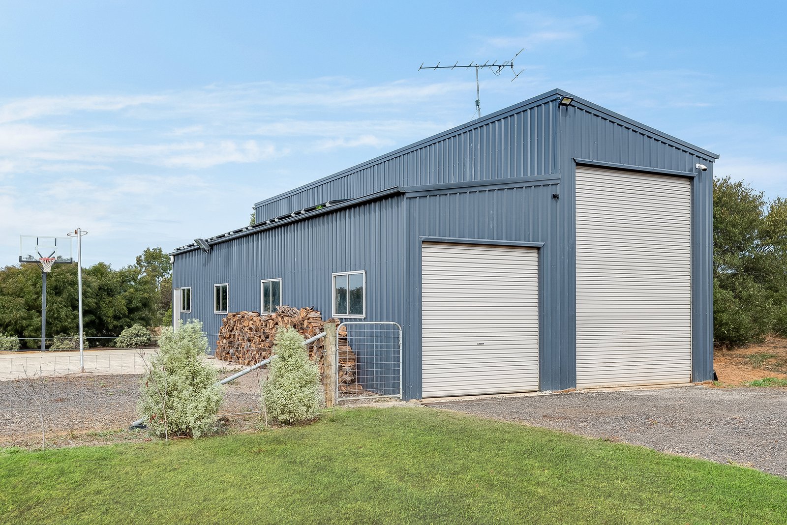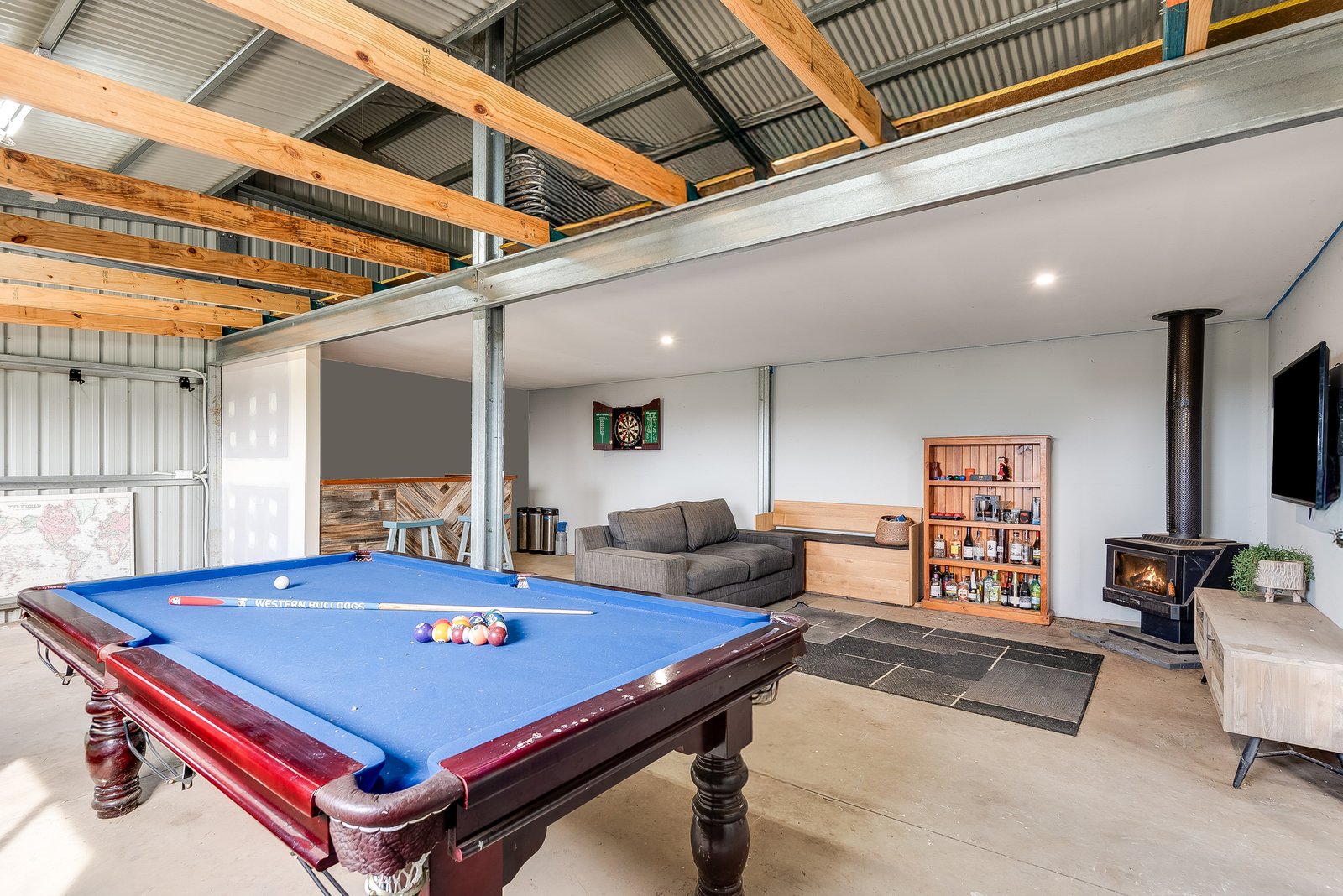 Outside offers a selection of spaces to play, relax or entertain. The huge alfresco provides ample room for dining and lounging zones, complete with built in barbecue facilities, cabinetry, drinks fridge and plumbed gas. The heated in ground pool is the perfect place to spend your summers, with a firepit nearby to finish the day with a cosy night by the fire. A high clearance shed accommodates additional parking with mezzanine storage, and includes a large entertaining space with a woodfire heater and bar facilities. A basketball court and cubby house ensure hours of outdoor fun for the kids.
