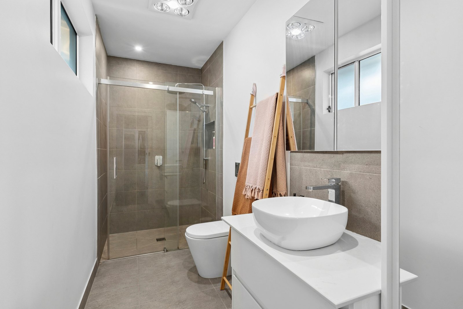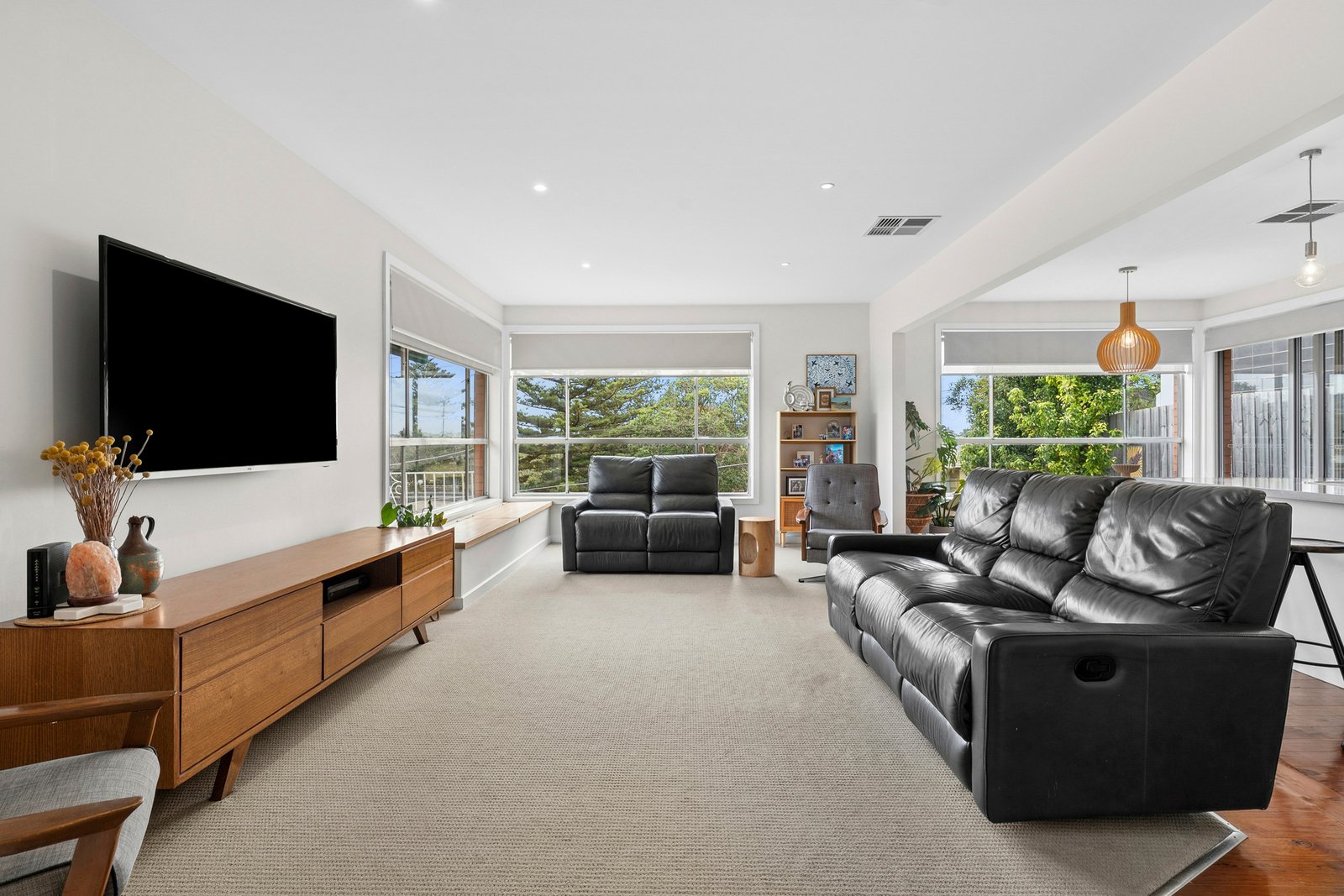 Comprising three bedrooms, the main suite features walk-in robes and a tastefully updated ensuite presented in contemporary finishes. Two additional bedrooms are generous in size, both include built-in robes, serviced by a bright family bathroom with bath, separate shower, and modern vanity.
