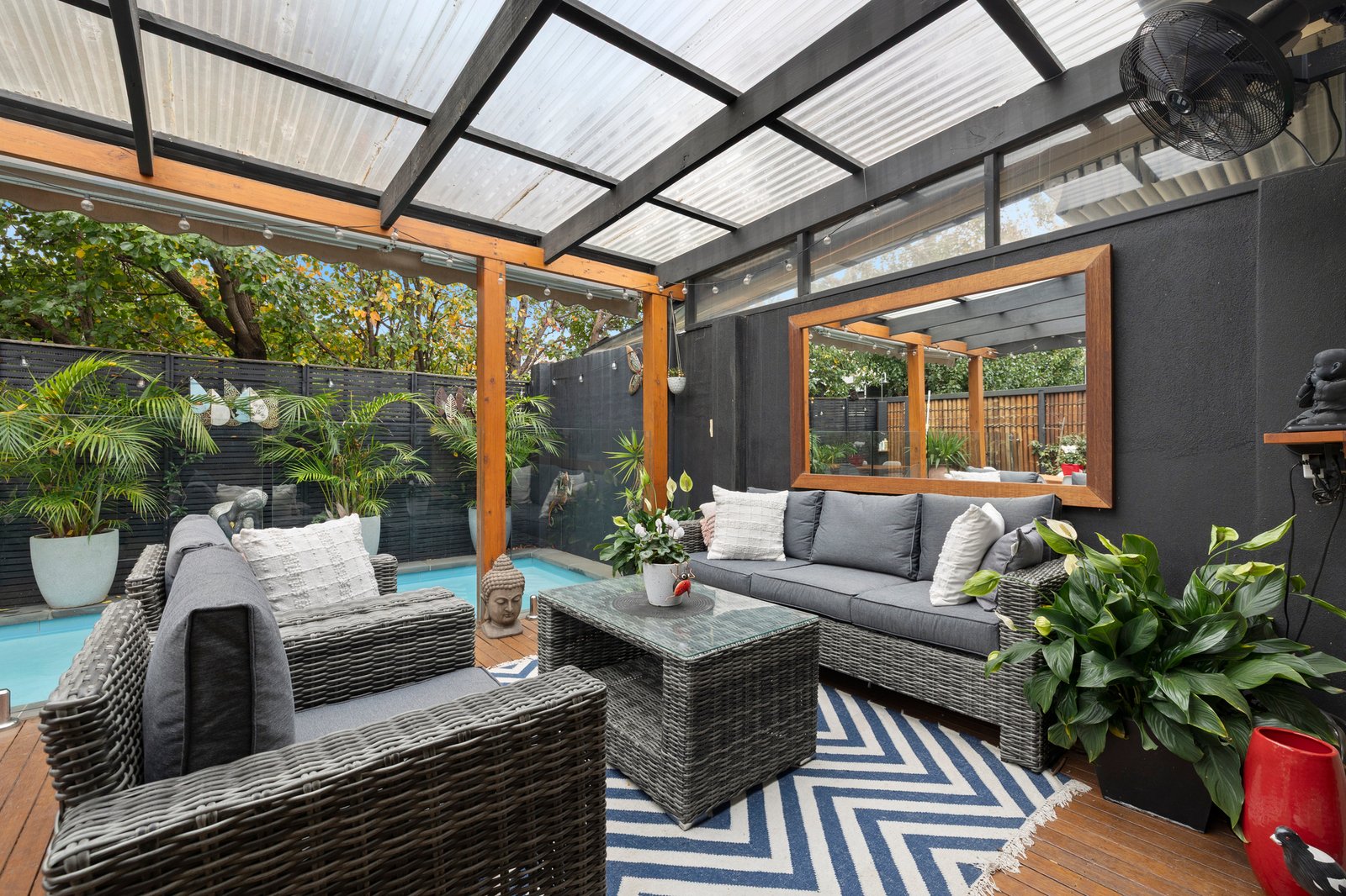 For more information about this smart poolside setting, please contact Mathew Cox at Buxton Mentone.