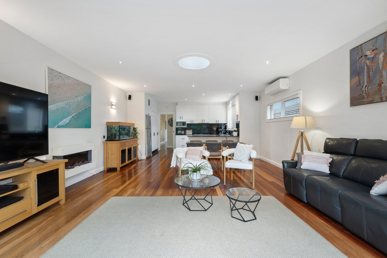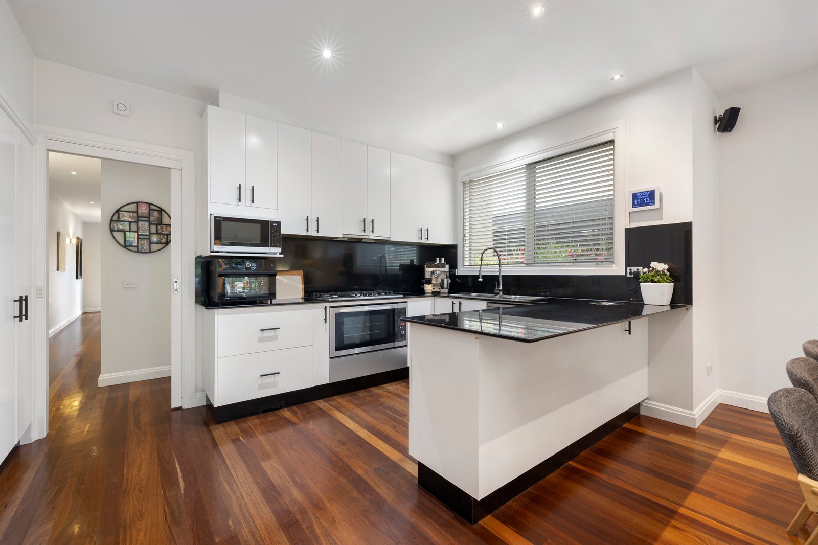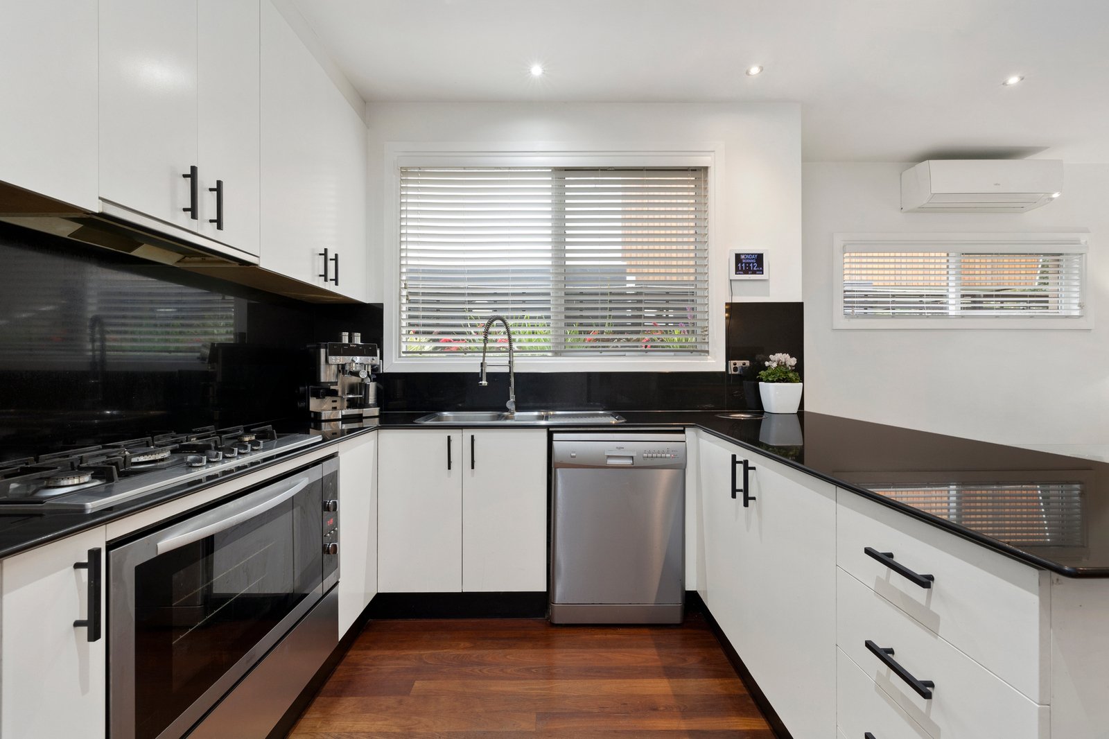 Perfectly presented and flooded with natural light, the home offers a layout that is warmed by rich timber floors flowing from the entrance to the open plan entertaining zone at the rear. Featuring a quality granite kitchen showcasing stainless steel appliances including 900mm oven & cooktop, the living and dining spaces extend out to a huge alfresco deck ideal for free-flowing get togethers. While the adults relax on the deck, kids will love the heated plunge pool (solar & electric), which can be shaded by a remote awning when the summer sun kicks in.