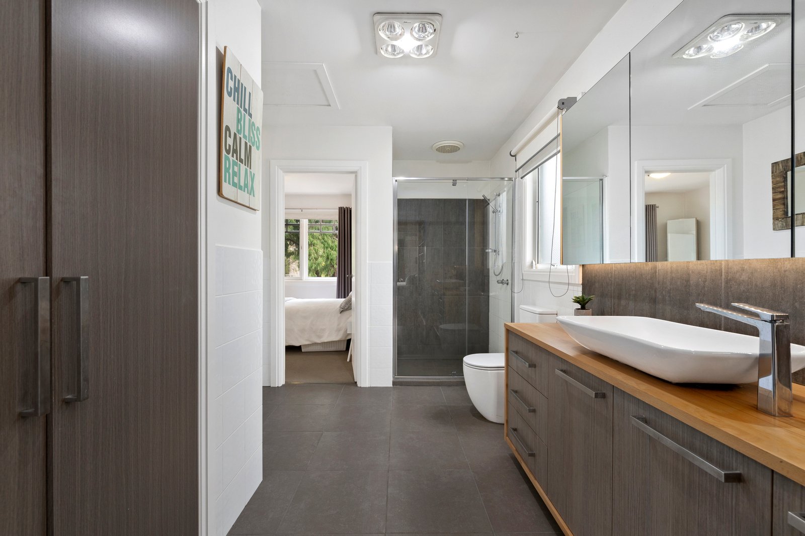 The inclusion of a ground-floor bedroom and bathroom (bath) will appeal to downsizers, while the real highlight is a simply massive main bedroom with substantial walk-through wardrobing to a stylish Jack & Jill bathroom shared with a further peaceful bedroom.