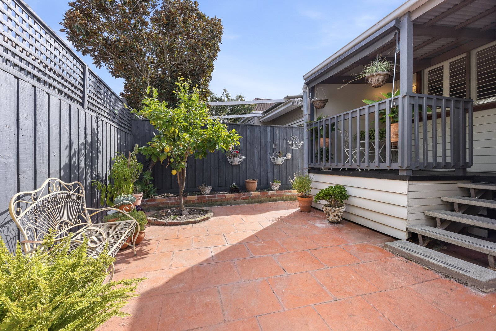 A pretty picket fence and captivating weatherboard facade introduce charm-filled interiors, where beautiful period detail complements modern comfort. Gleaming polished floorboards flow past three generous bedrooms, two graced with decorative ceiling roses, ornamental fireplaces and gorgeous garden outlooks, while the third features a full wall of built-in robes. The bathroom is stylishly appointed with a dual-head rain shower and separate powder room.