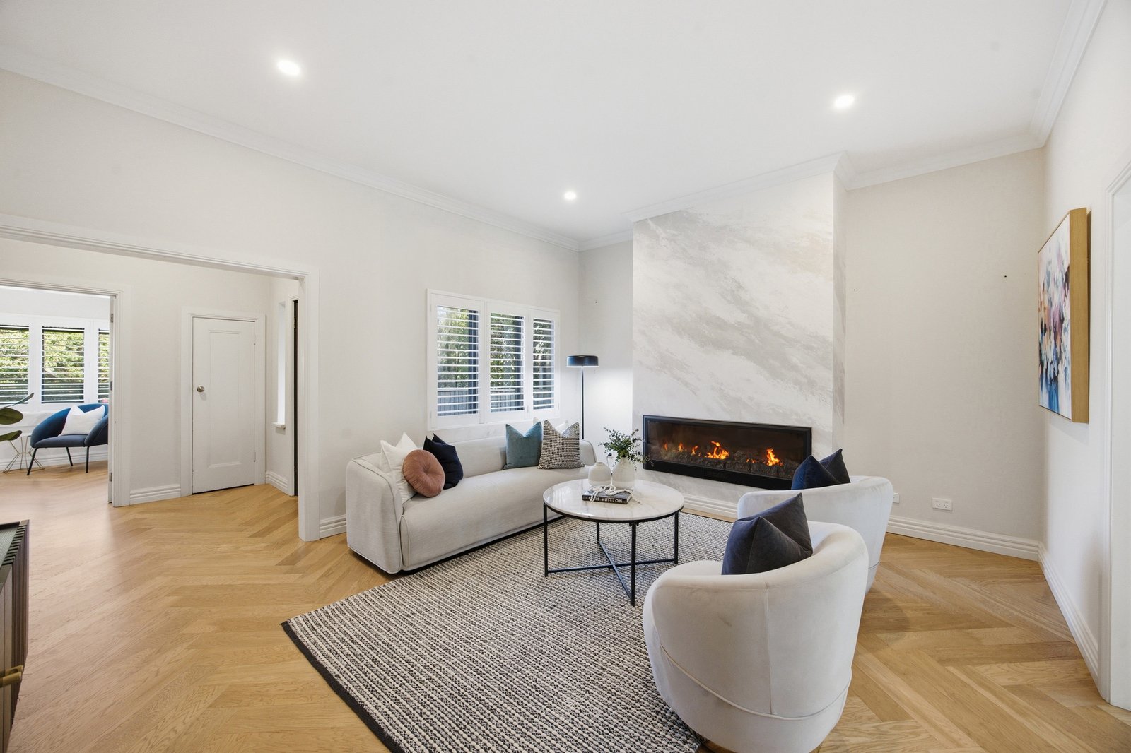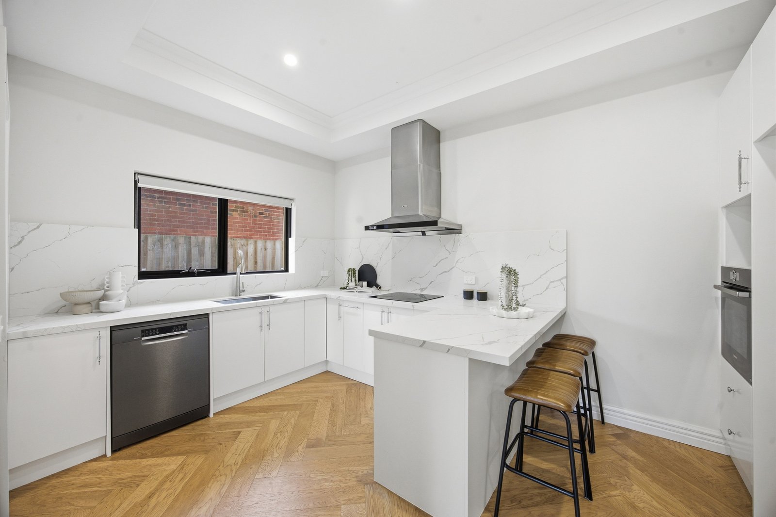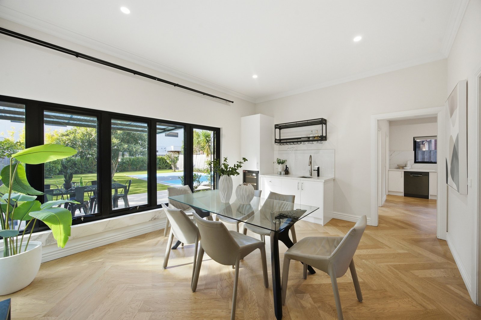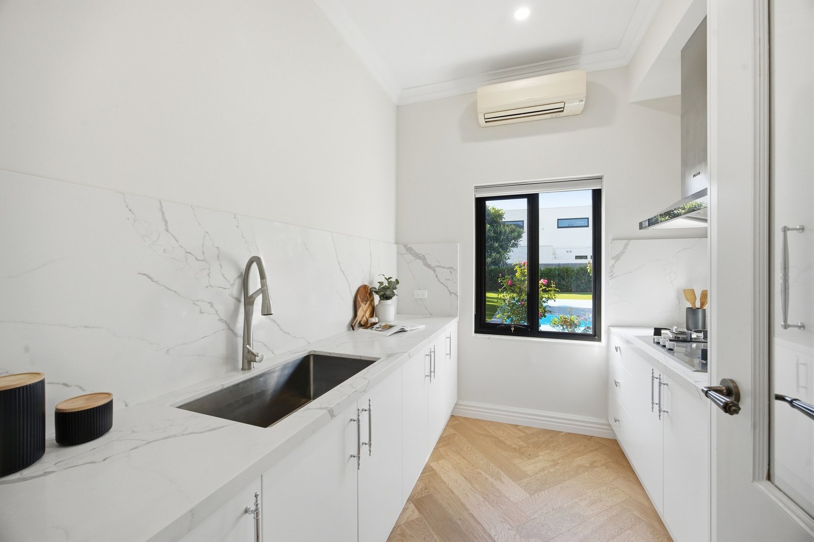 Building on the original grand design with great contemporary luxury, the home puts a focus on entertaining with unparalleled kitchen facilities. Starring a Bosch appliance kitchen (with induction cooktop), this chef’s paradise includes a fry-kitchen (with high-specification Fotile gas-cooktop and rangehood), a versatile laundry positioned to double as butler's pantry, and a bar-kitchenette (with Vintec fridge) to serve indoor-out living. Adding 5 Star luxury with fully-tiled bathrooms on each level (one ensuite, main with dual-vanity and semi-freestanding bath), the home features plushest carpets, the most elegant herringbone Oak floors and the airiest plantation-shutters.