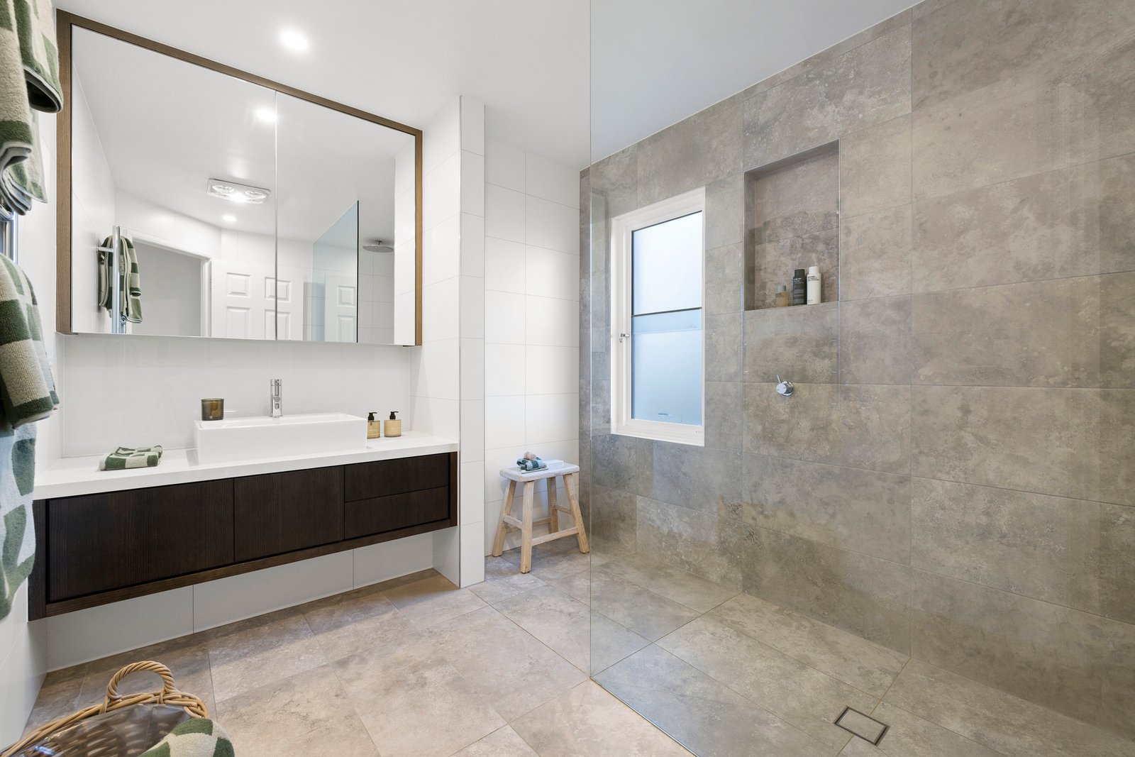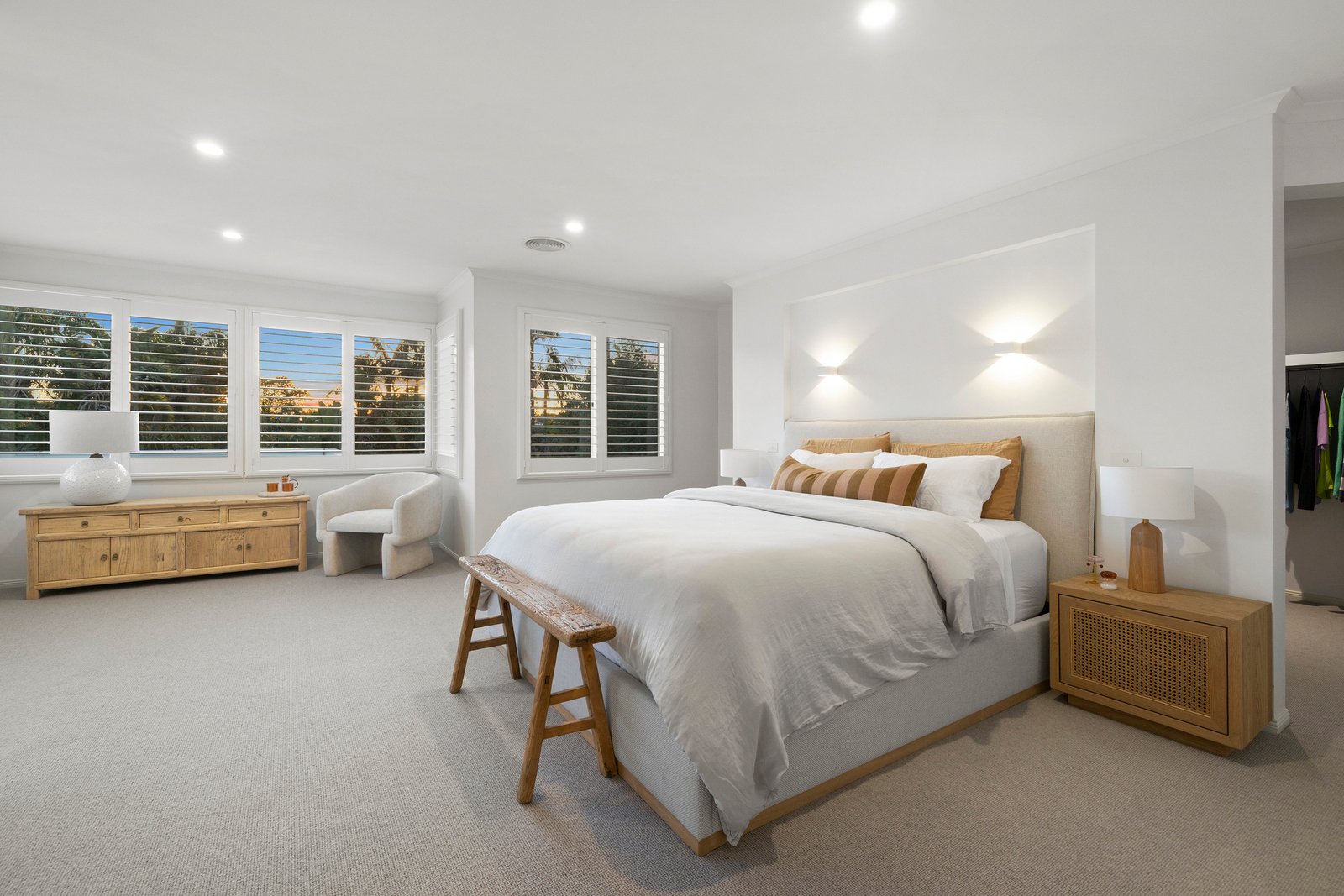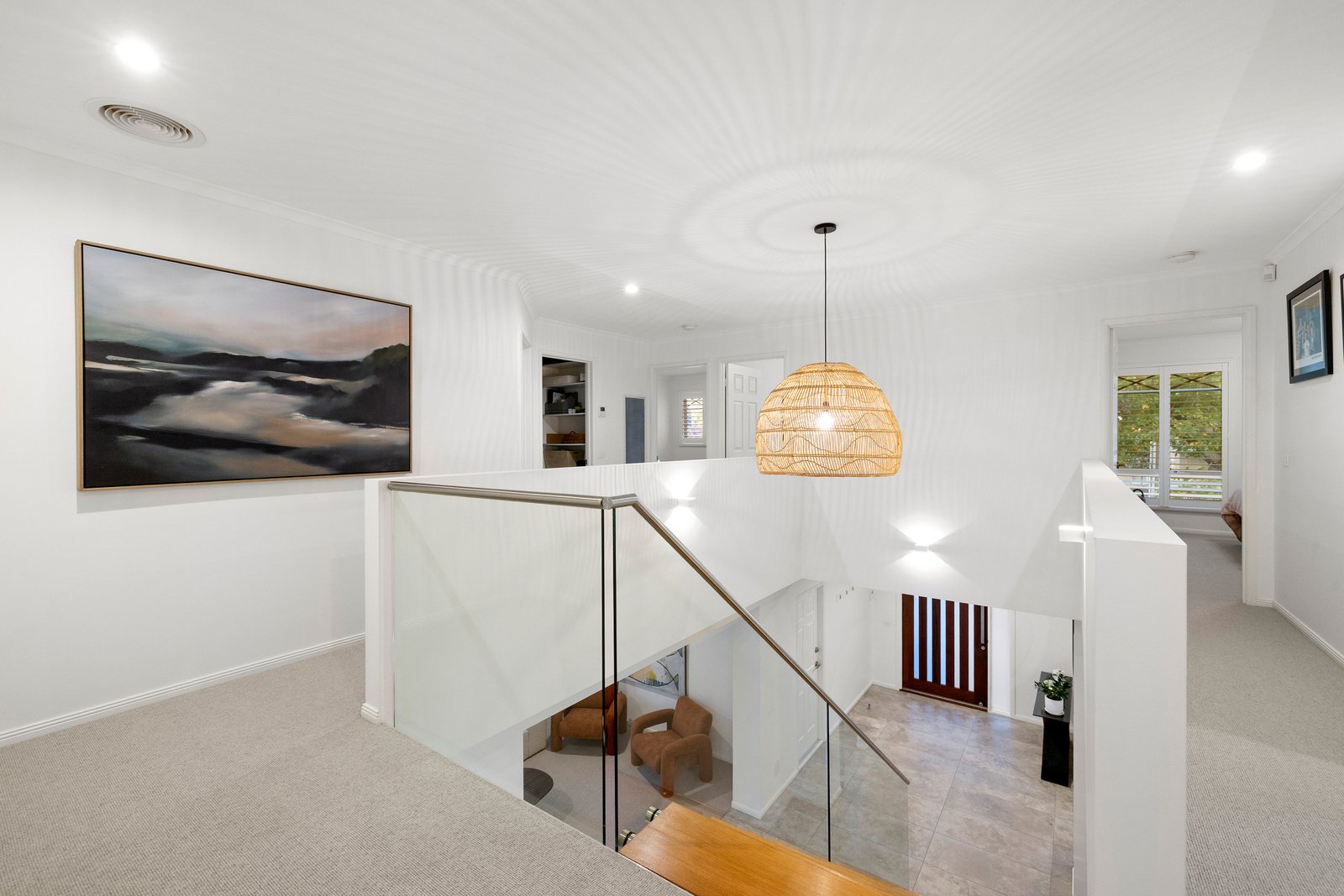 All bedrooms are tucked away upstairs for optimum privacy & quietude. The primary suite is a sanctuary in every sense – it boasts a tranquil sitting area, hotel-inspired ensuite and decadent walk-in wardrobing. A smartly-finished family bathroom with drenching rain shower and mirrored storage services the remaining bedrooms, all with built-in robes.