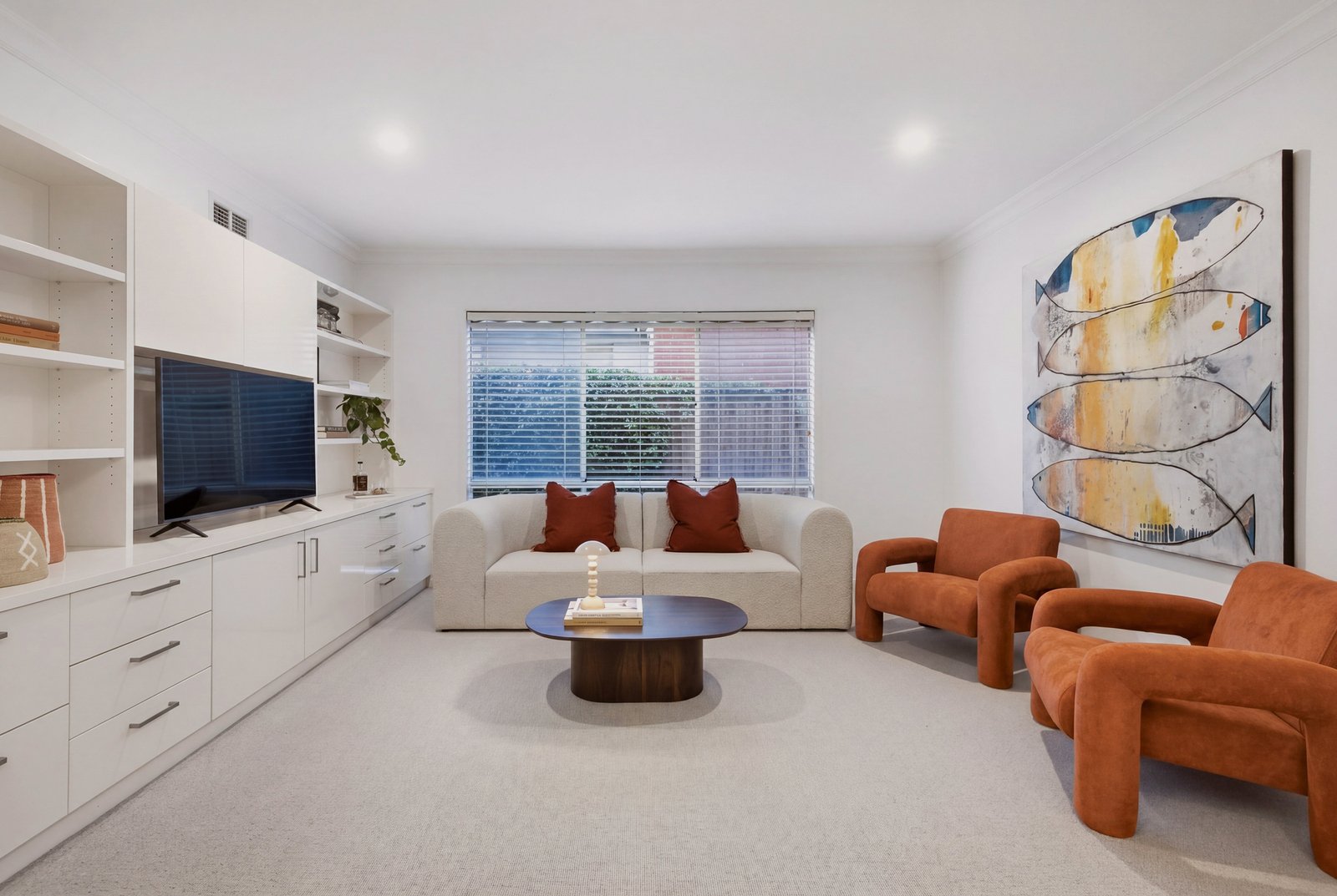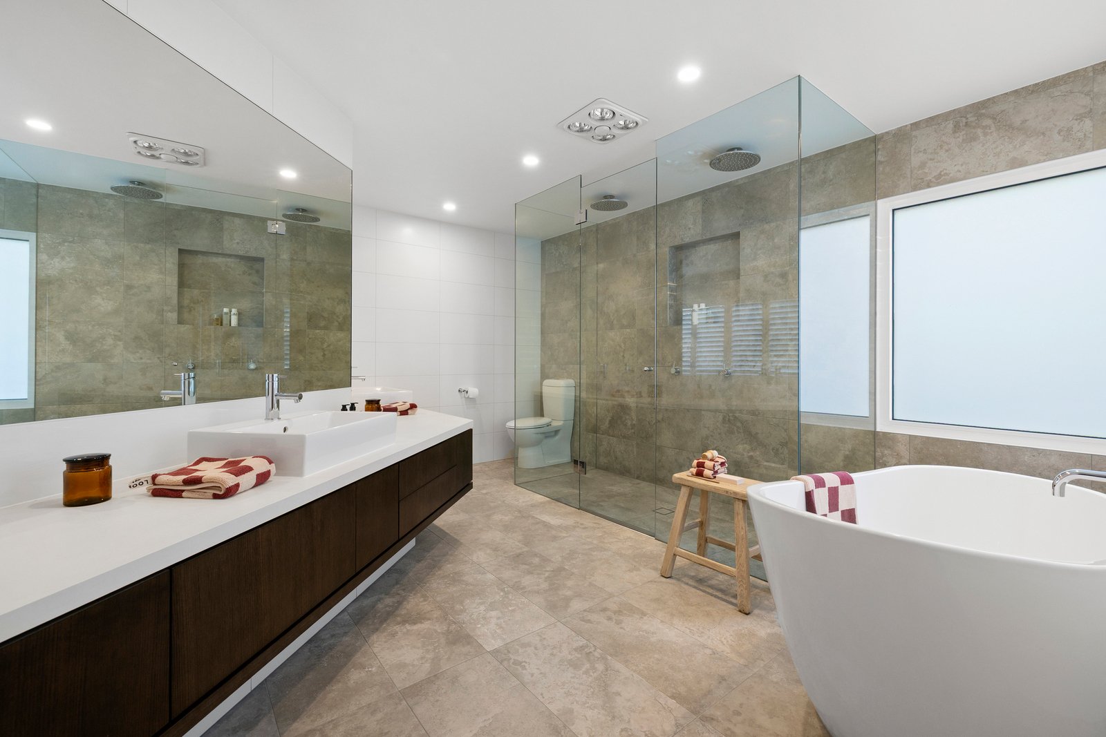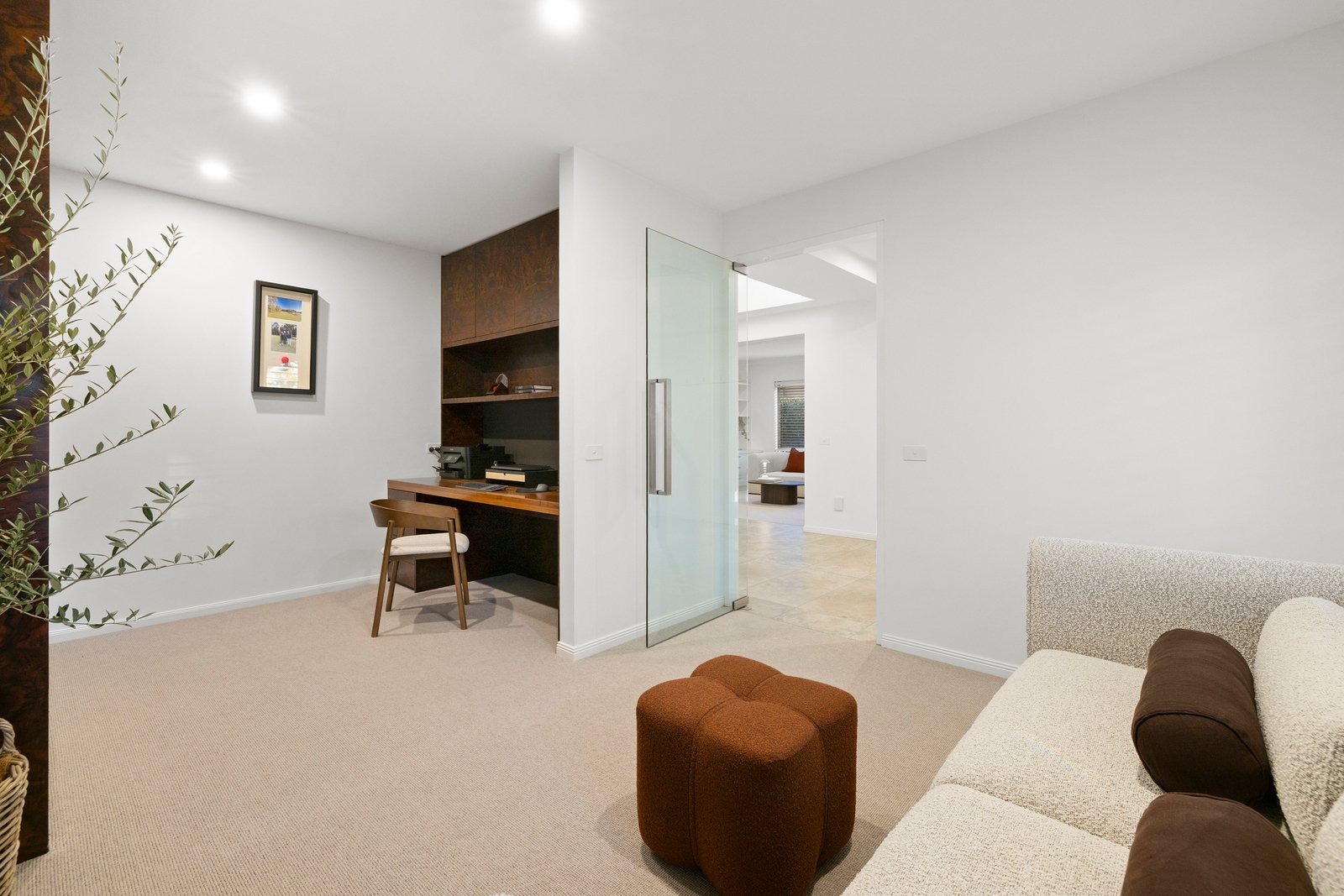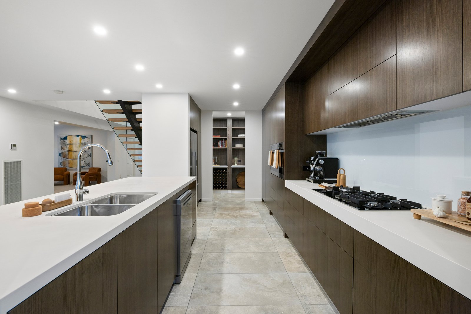 All bedrooms are tucked away upstairs for optimum privacy & quietude. The primary suite is a sanctuary in every sense – it boasts a tranquil sitting area, hotel-inspired ensuite and decadent walk-in wardrobing. A smartly-finished family bathroom with drenching rain shower and mirrored storage services the remaining bedrooms, all with built-in robes.
