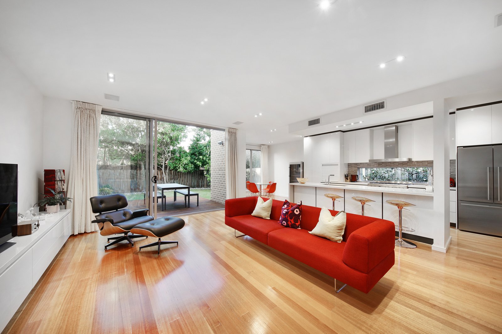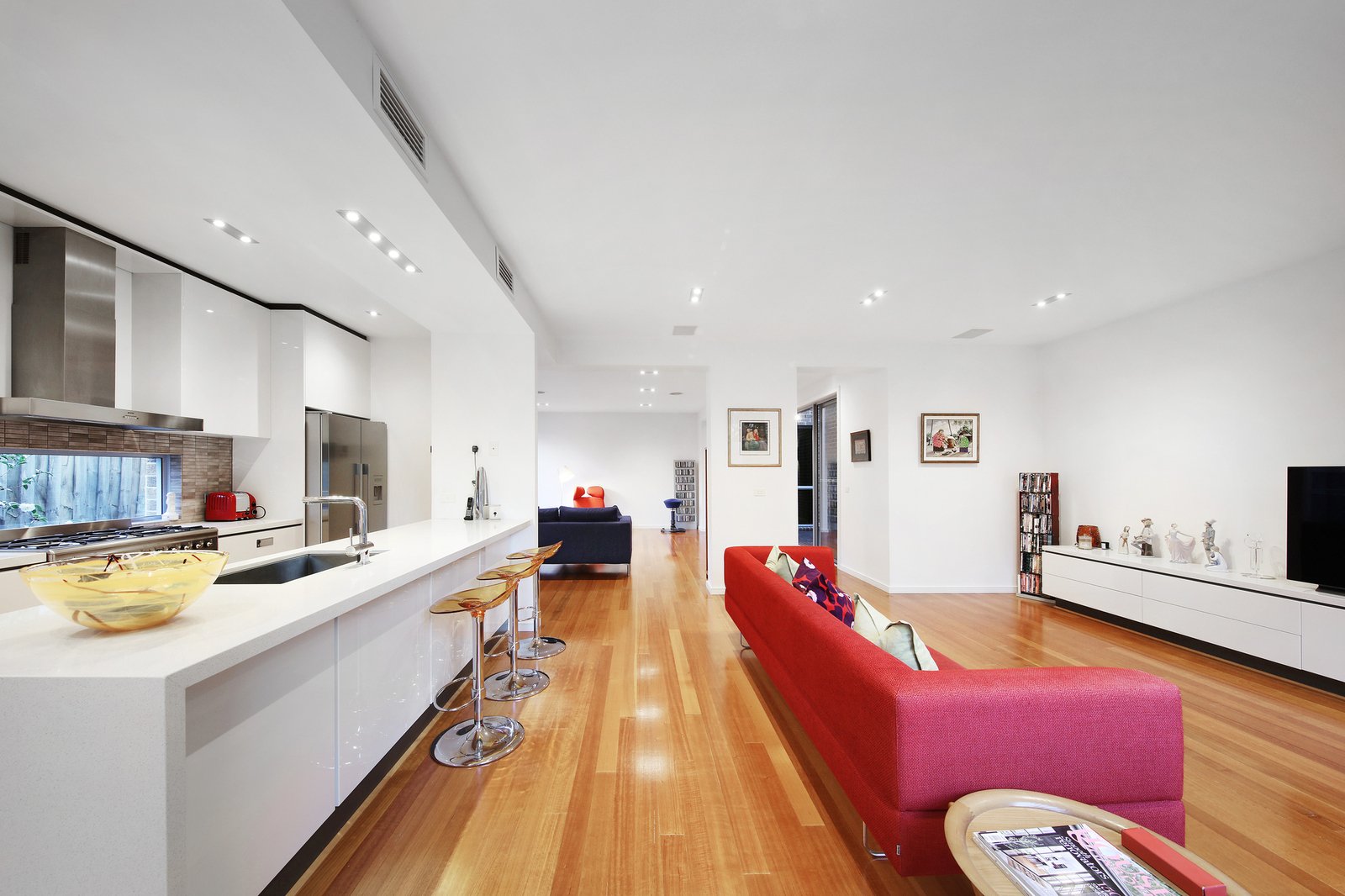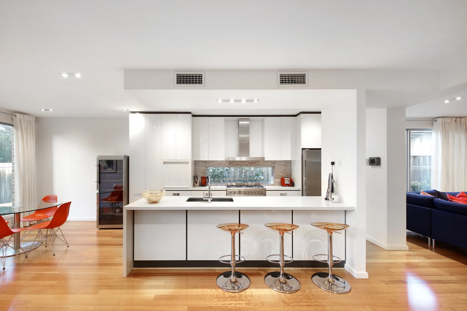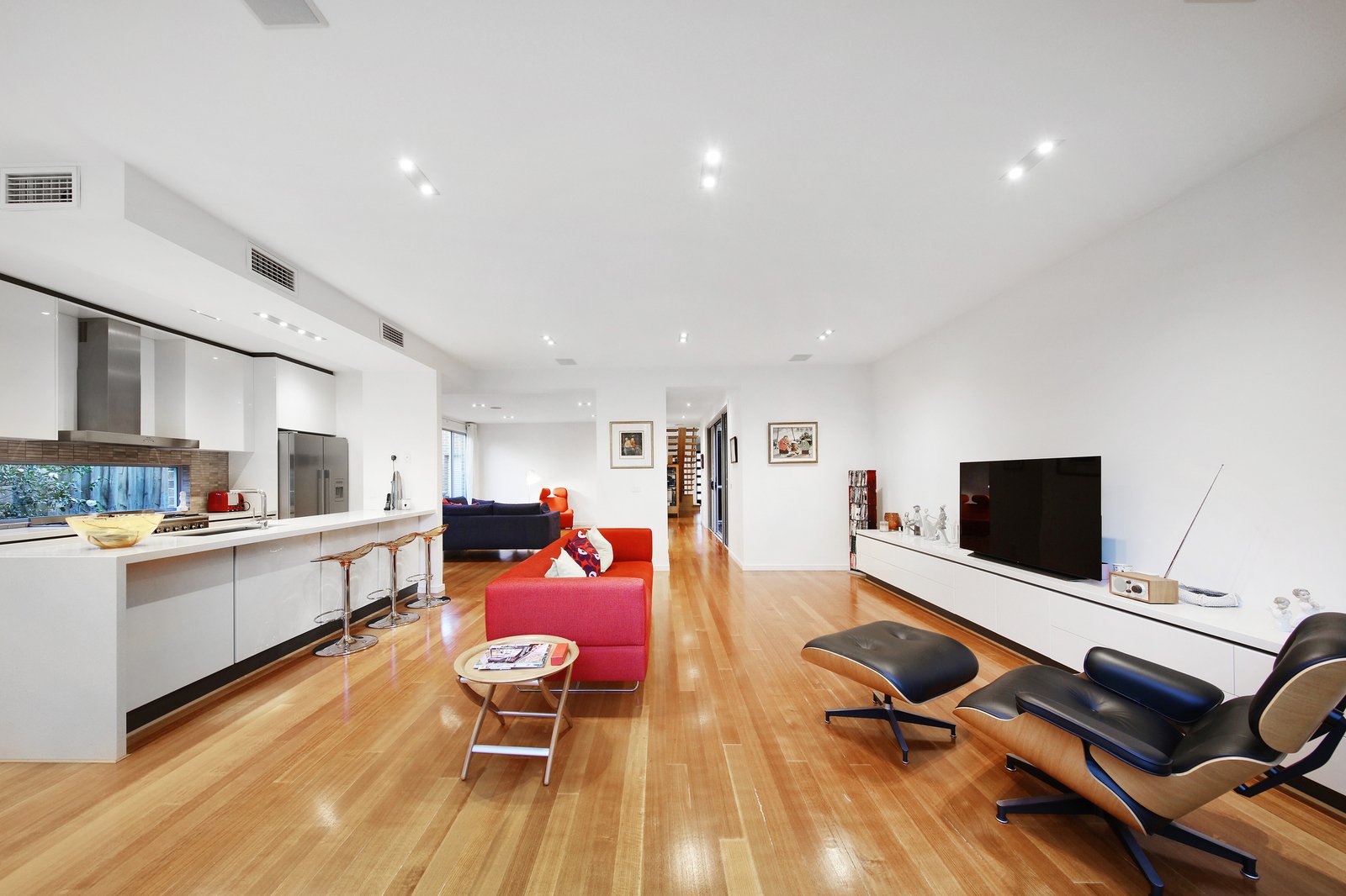 Master-built and meticulously customised at off-the-plan stage by the current owners, this expansive design is sized up and optioned up at every turn with Smeg appliances (including 900mm range) for the family-size kitchen, streamlined stone benchtops (even for the laundry), authentic hardwood floors and an architectural open tread glass and timber stair linking the levels. Prestige appointed with zoned climate-control, video-intercom, alarm security and a ducted vacuum it's all been considered and added here - including a laundry chute and additional storage for the oversized double auto garage.