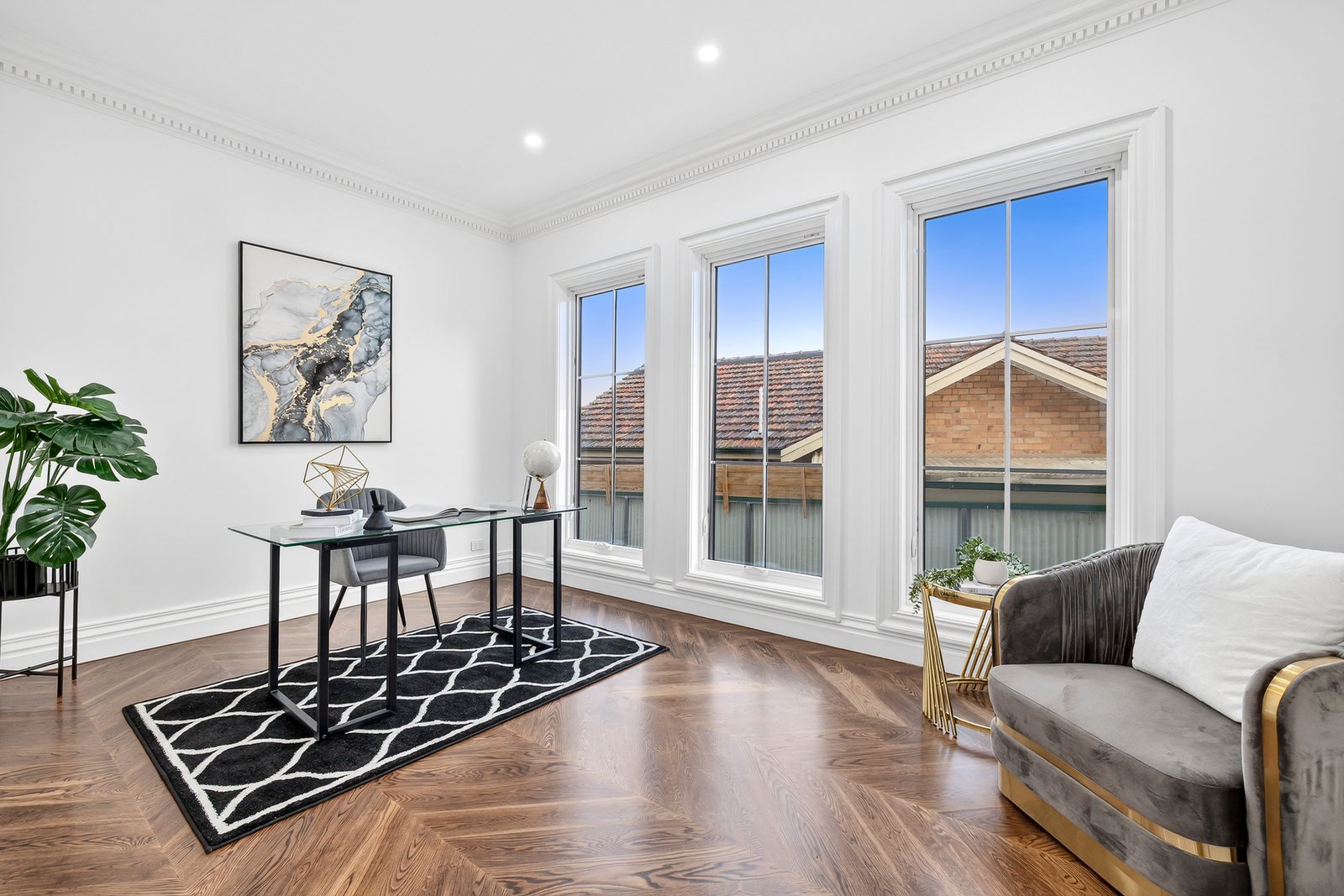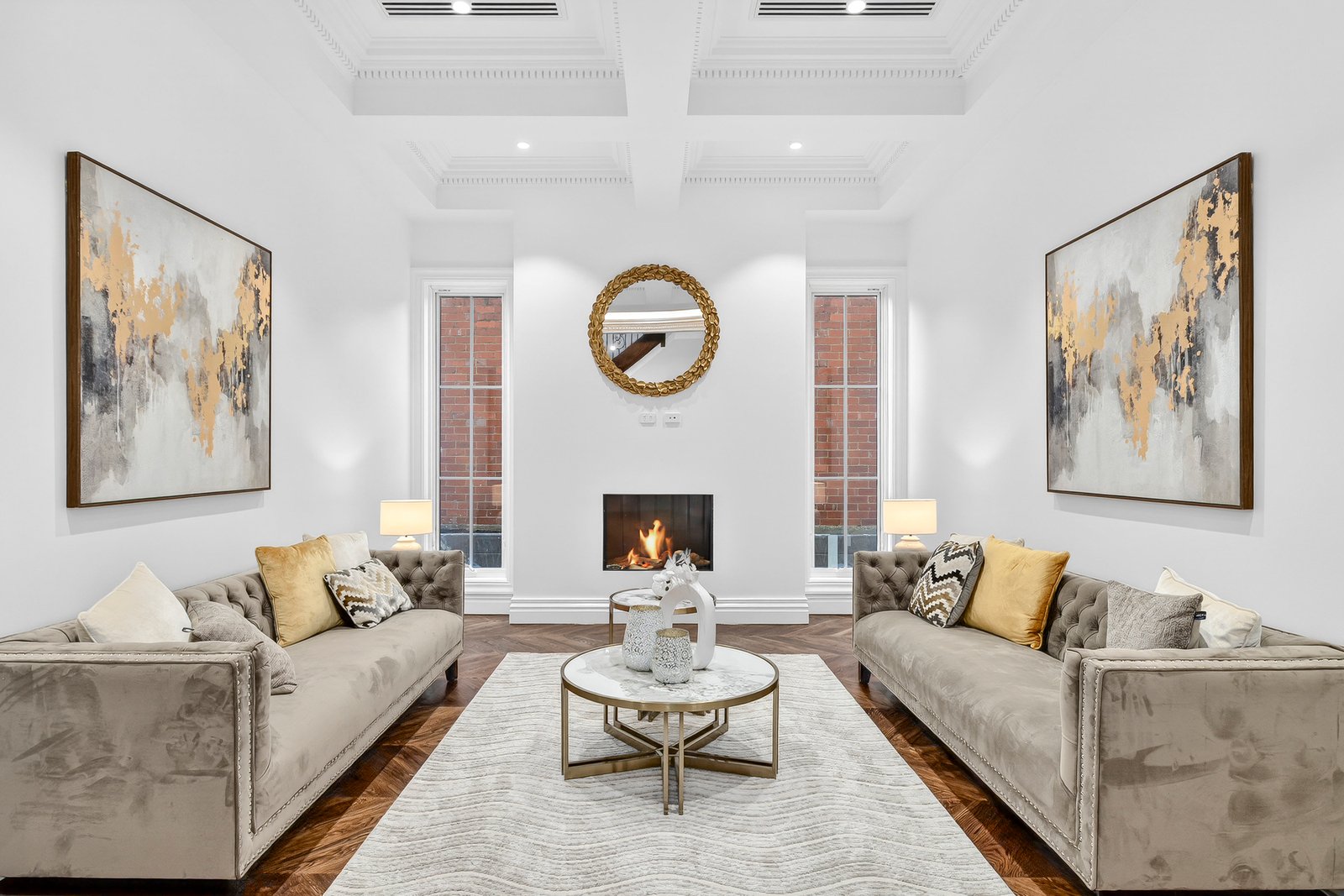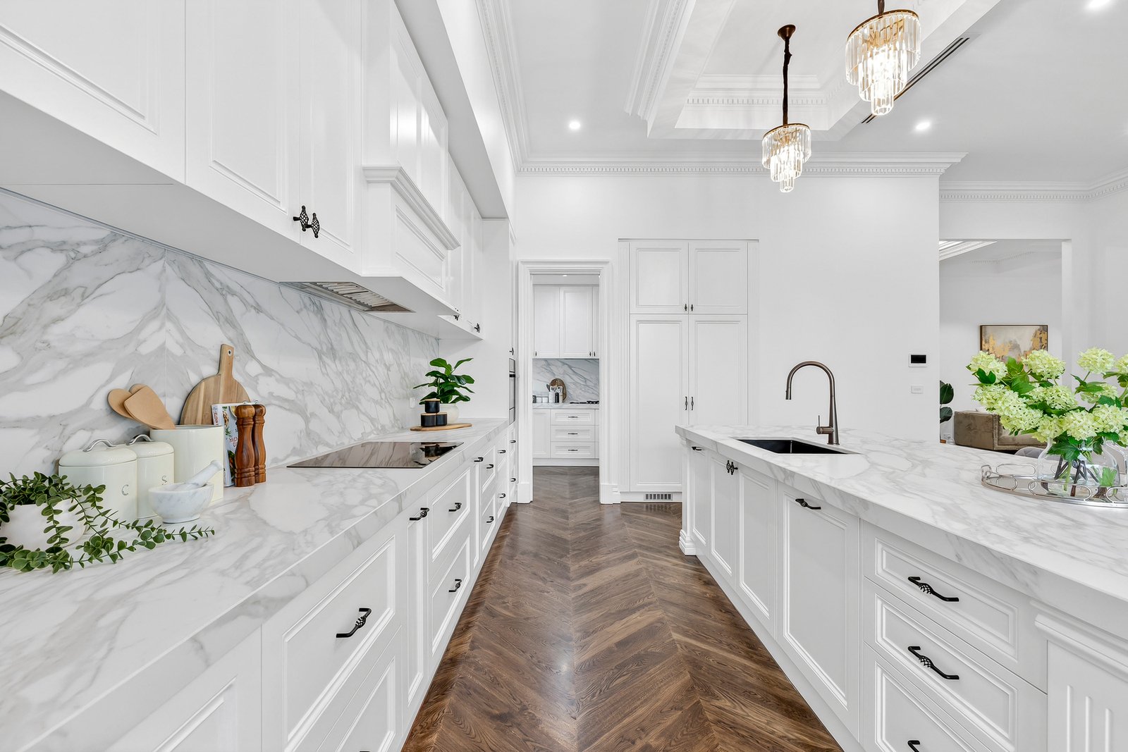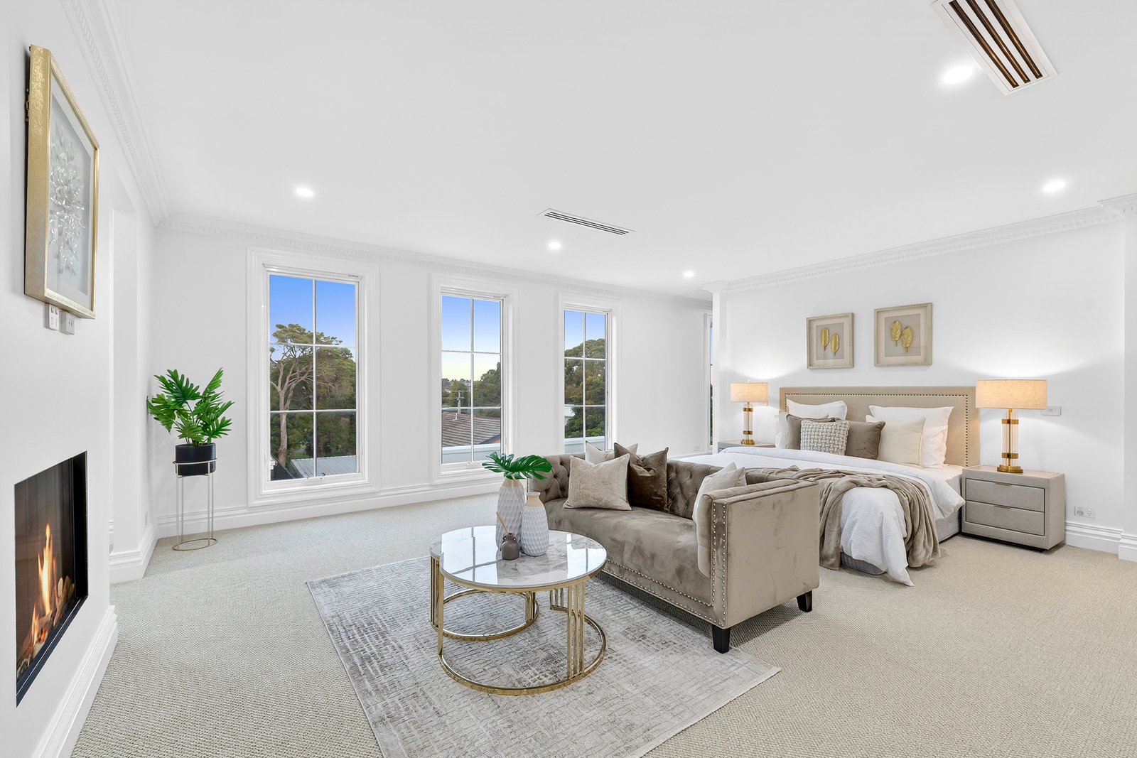 Additional living areas with 3.0-metre ceilings provide versatility for formal entertaining, guest accommodation or quiet retreat spaces, while European oak solid timber flooring laid in a refined chevron parquetry pattern flows through the main living areas, adding warmth and architectural sophistication.