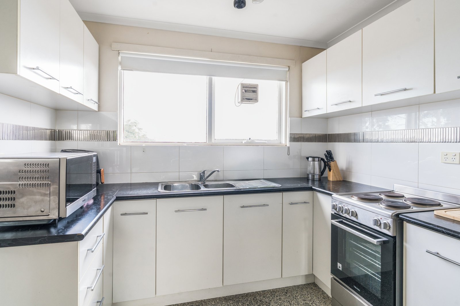 - Kitchen comes with electric stand up stove and ample cupboard space