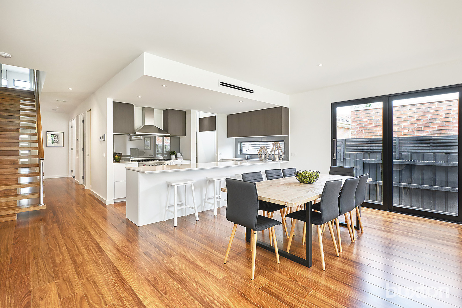 Appointed with ducted heating and cooling, an alarm, video intercom and additional Wi-Fi points, the home is 6 Star Energy rated with extensive double-glazing, LED lighting, solar hot-water and a fully-insulated garage door. Even the outdoors are on display with parking for at least three cars across a honed bluestone driveway and auto-garage and auto-irrigation front and rear. In a leafy locale within a few blocks of Ormond's shopping strip and new station, this showpiece home even has a choice of schools and the bus to the bay and Monash University within a walk.