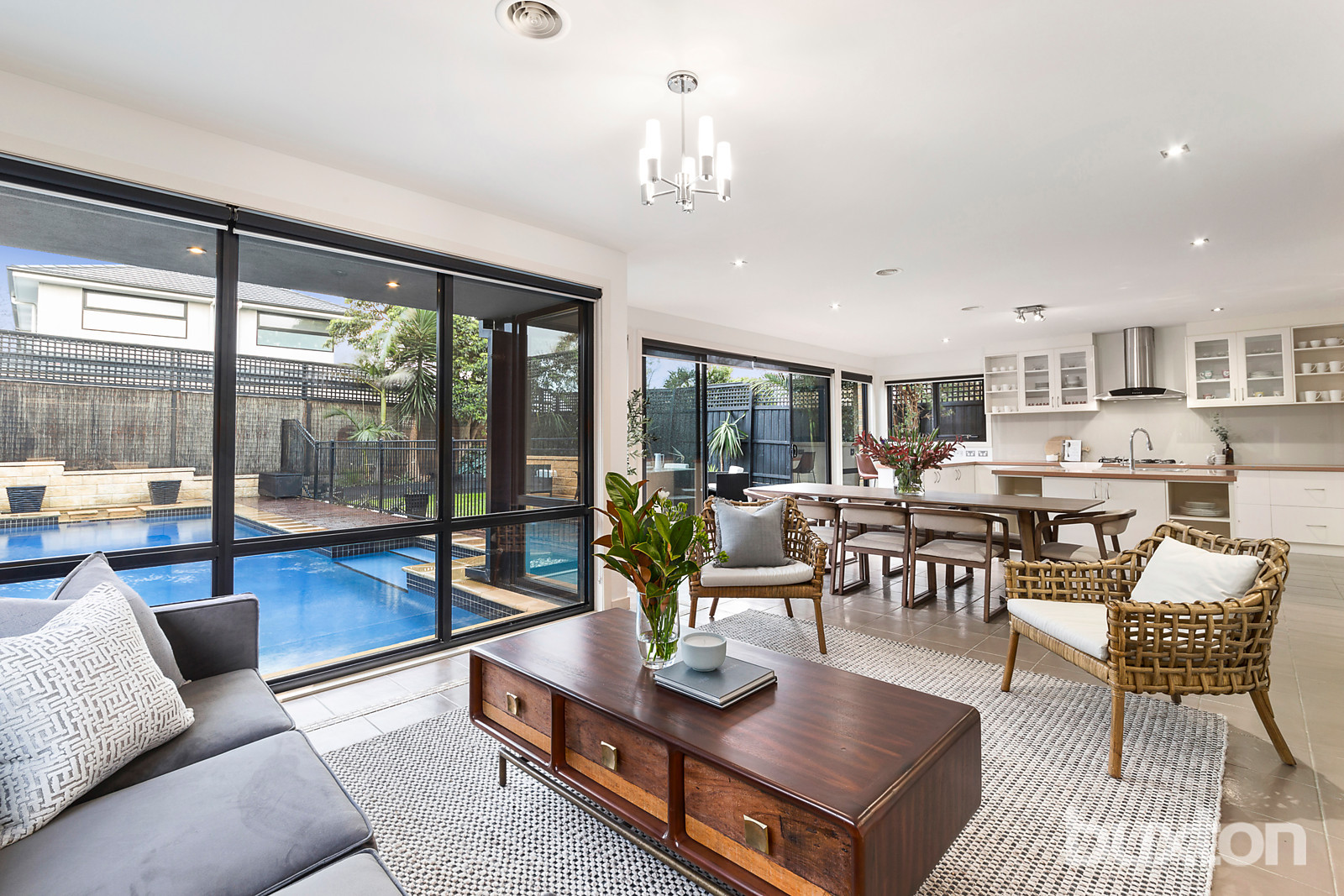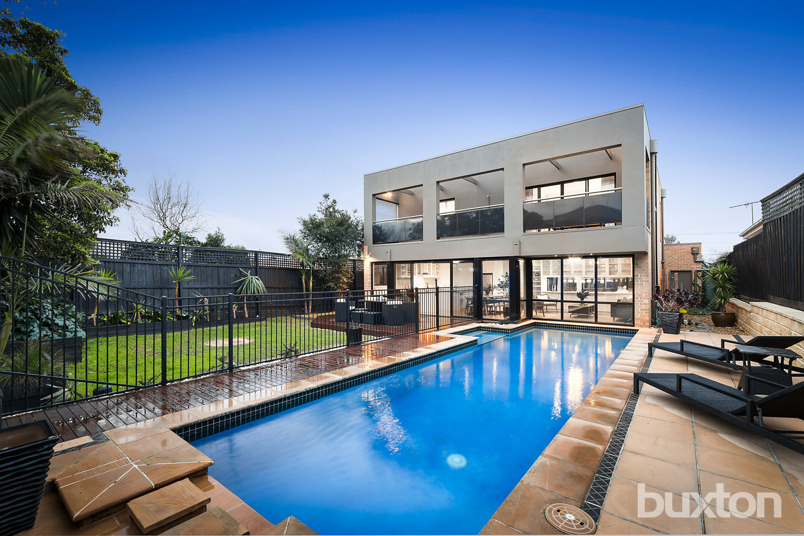 Sitting high in the street and stylishly surrounded by manicured low maintenance gardens, this invitingly spacious 4 bedroom 3.5 bathroom contemporary home has a relaxed homely ambience with poolside fun. Enjoying wide hallways, this generous home boasts a north facing sitting room with gas stone fire, a purpose built theatre room, a downstairs bedroom suite (BIRs & large ensuite), elegant and spacious stone kitchen with Fisher & Paykel appliances and a walk in pantry; brilliant family living with custom built cocktail bar, casual meals area and a family laundry. Upstairs features a spectacular main bedroom suite (luxury spa ensuite, full length balcony & huge WIR), 2 further large bedrooms (one with BIRs & ensuite), a store room and a front balcony with lovely leafy views. Double sliding doors open to a tranquil deck and solar heated 11m lap pool with water feature & a safe lawn area for children to play. With nothing to do, this low maintenance haven boasts all of the necessary luxuries including timber floors, ducted heating, split system air conditioning, security alarm, points for surround sound speakers, new carpet downstairs, 9000l underground water tank, store rooms and double auto garage. In this premier Bayside street, surrounded by parks, a short walk to Little Highett Village cafes, schools and Bluff Road shops, minutes to the vibrant Highett Village food scene and the train. For more information on this spacious and contemporary home contact Richard Slade or Sarah Balleggi