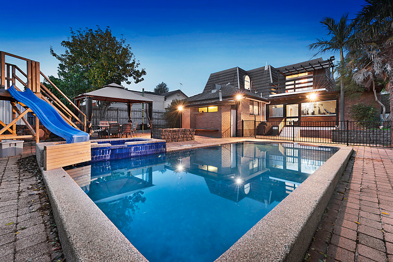 Welcomed by a luscious, tree lined front garden hidden privately beyond a secure gated entry, this family sanctuary provides brilliant living and entertaining spaces, with classic Dormer windows adding timeless character. Abundantly accommodating this vast family entertainer comprises stunning hardwood floors flowing through a generous lounge and dining area incorporating an immaculate, well-equipped kitchen with stone bench tops and stainless steel appliances. A tiled sunroom (secondary kitchen), fitted with an indoor grill, looks out to a vast entertaining area which surrounds a superb gas heated swimming pool/spa with outdoor bathroom facilities. Upstairs an expansive retreat with fireplace, built in bar and study nook opens out to a generous balcony with tranquil tree top and pool views. Four bedrooms including main with walk-through robe and stylishly updated ensuite are accompanied by 3 internal bathrooms, heating/cooling, single car garage, ample storage space and alarm system. Perfectly situated in the Brentwood Secondary catchment area, close to exceptional schools, bus services, Brentwood Reserve and Brandon Park Shopping Centre.
