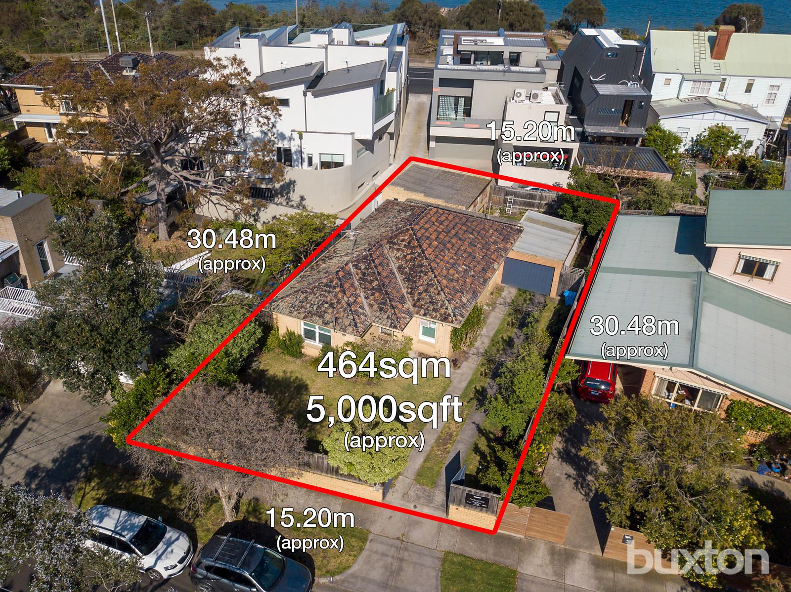 Check out the good approx 15m/50' frontage with a well-positioned crossover to driveway parking. Take a look at an easy-access rear right-of-way to an existing garage/studio, and see how easy it will be to enjoy a beachside latte lifestyle with the beach out the back gate and the Hampton St latte strip within 300m. Then look to the sunny west rear of this blue-chip beachside site and bring a design vision that maximises sea-breezes, park proximity and a deep northerly side aspect.