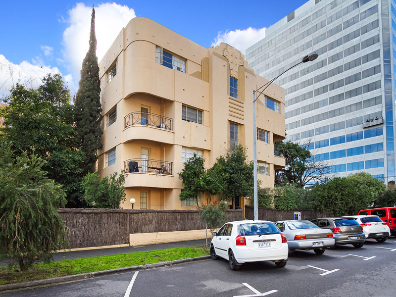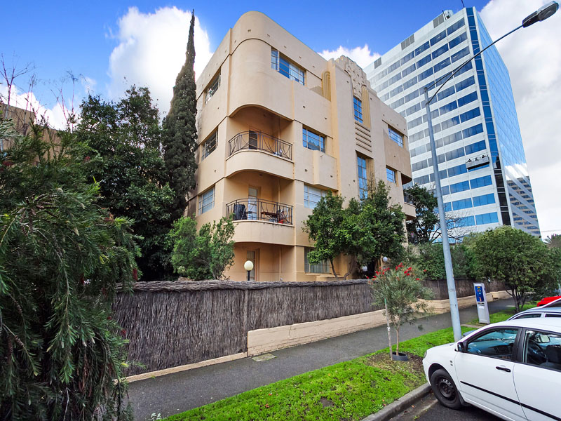 Situated at the corner of Queens Rd and Louise St. This Art Deco apartment has two bedrooms with wardrobes, living room, kitchen, private courtyard, heating and cooling and one car space.
