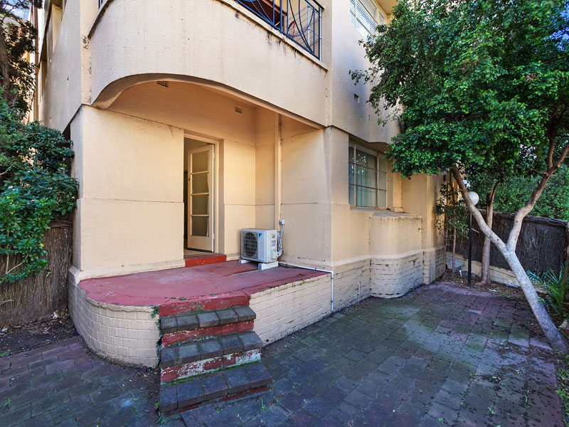 It is freshly painted, has new carpet and private courtyard. It also retains many of the original Art Deco delights - high ceilings, ceiling roses.