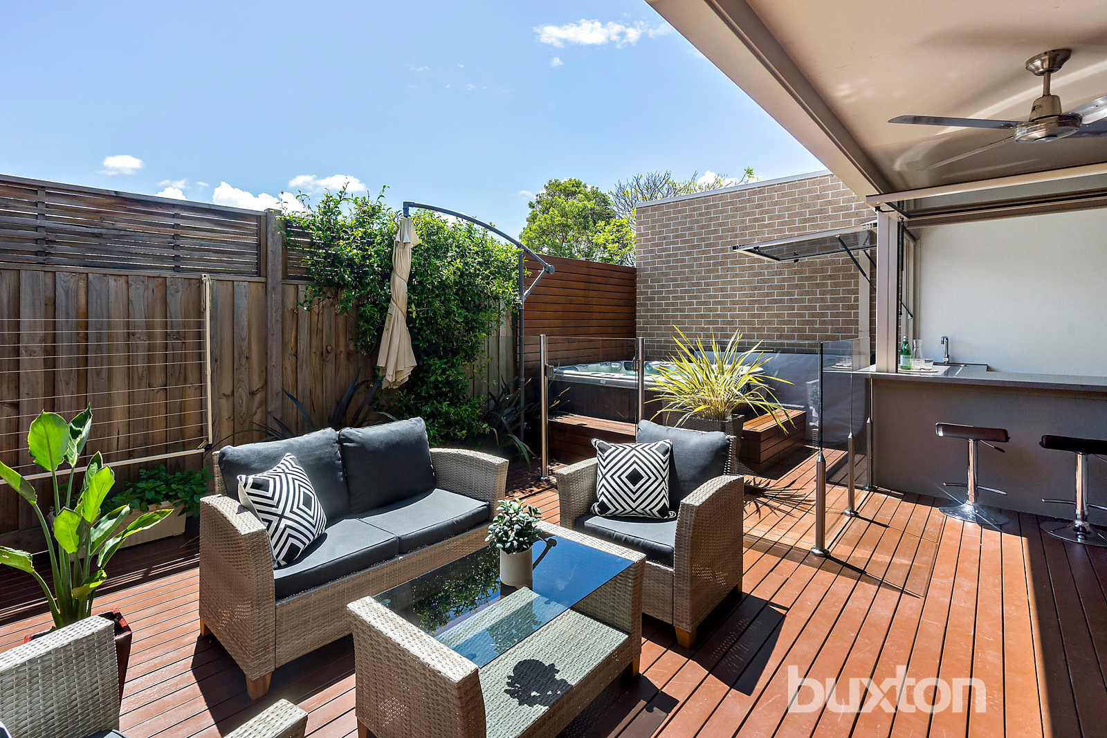 Incorporating all the contemporary finishes and modern comforts, this impressive two-storey residence with own street frontage offers an easy lock and leave lifestyle approx. 300m to the heart of Edithvale and minutes to the beach! Downstairs comprises of generous open-plan living flooded with natural light and a stylish gourmet kitchen (Caesarstone island bench, Bellissimo Technika appliances) with fabulous indoor-outdoor flow for easy entertaining. Superb glass stacking doors open onto a wonderful, tranquil alfresco space complete with heated spa, clever indoor/outdoor wet bar with tilt servery windows and sunny lounge area. A study (potential 4th bedroom) and discreet powder room complete this level. Upstairs is the spacious master bedroom (WTR, luxe en-suite with double vanity), two additional bedrooms (BIRs) and elegant family bathroom. Includes solar panels, ducted heat/cool, under stair storage, double auto-garage with internal access & low-maintenance gardens. With the beach, vibrant cafes, shops, schools and train a short stroll away - all you need for relaxed bayside living is at your fingertips!