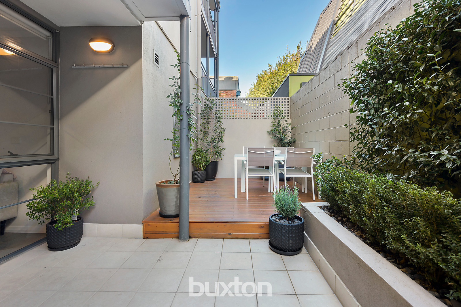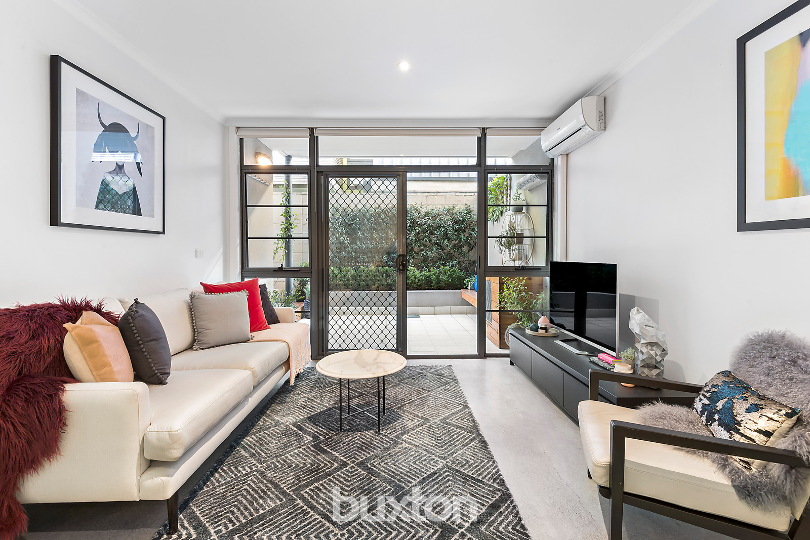 A designer's eye for style and quality has taken this spacious ground floor apartment to a whole new level of luxury in sought after surroundings just an easy stroll from both Chapel and Fitzroy Streets. Tucked right away at the rear of an impeccably maintained secure complex, its beautifully stylish spaces form a perfect partnership with an irresistible outdoor courtyard primed for fabulous alfresco entertaining. Polished concrete floors and a crisp neutral colour palette establish a sophisticated sense of contemporary chic throughout open plan living/dining zones and an expertly renovated kitchen finished with stone benchtops, integrated Liebherr fridge/freezer and Miele appliances. Floor to ceiling glass steps out to secluded outdoor spaces for breakfast right up to larger scale entertaining in leafy surroundings that include built in seating. A double bedroom with BIRs and an inspired open study with Calacatta marble benchtops and extensive office storage are exquisitely complemented by a seductive, hotel style bathroom where Rogerseller fixtures, stone benchtops and ample storage provide the ultimate early morning luxury. Reverse cycle heating/cooling, Euro laundry, intercom security, a storage cage and secure basement parking complete a rare first home or lifestyle offering in a fabulous lifestyle location near the beach, CBD trams, Windsor Station and all the cafes, bars, shops and nightlife you can handle!