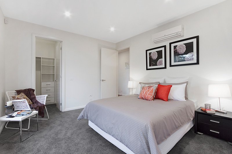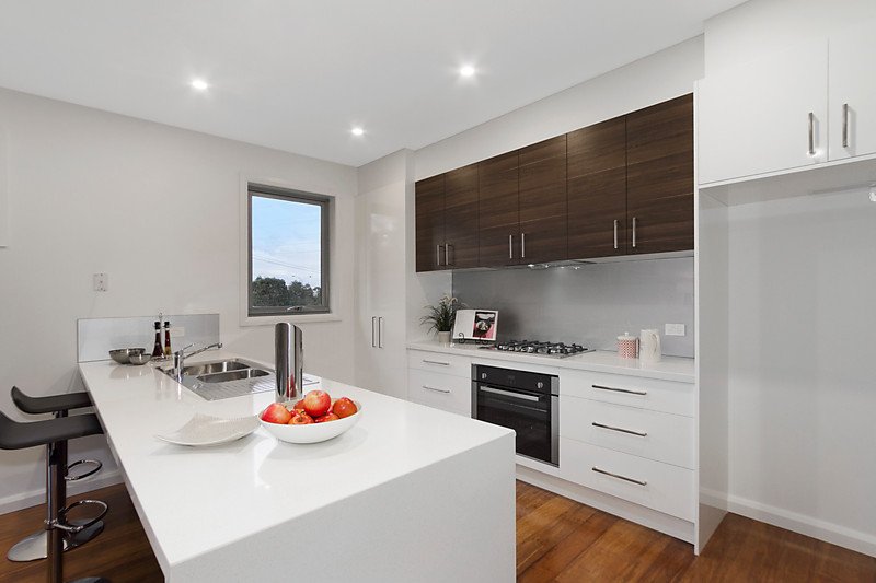 Impressive proportions present a beautifully designed modern lifestyle environment with this street-front of 3 townhouses, enjoying a low maintenance setting a leisurely stroll to Chadstone Shopping Centre, Phoenix Park, Library and Community Centre and Holmesglen Tafe and Train Station. Superb finishes, high ceilings and a mix of luxurious tile and bamboo floating floorboards define an open plan living and meals domain that incorporates a sleek Stone kitchen with breakfast bar and quality stainless steel appliances, while downstairs features a privately appointed theatre room. Sliding doors open out to a private decked courtyard, perfect for indoor/outdoor entertaining, accompanied by 3 bedrooms including a convenient downstairs main with WIR/ensuite plus 2 additional bedrooms (BIRs) configured upstairs with exclusive tiled bathroom and retreat with balcony. Impeccably equipped with powder room, security alarm, ducted vacuum, ducted heating and air conditioning, water tank and remote double garage with internal access.