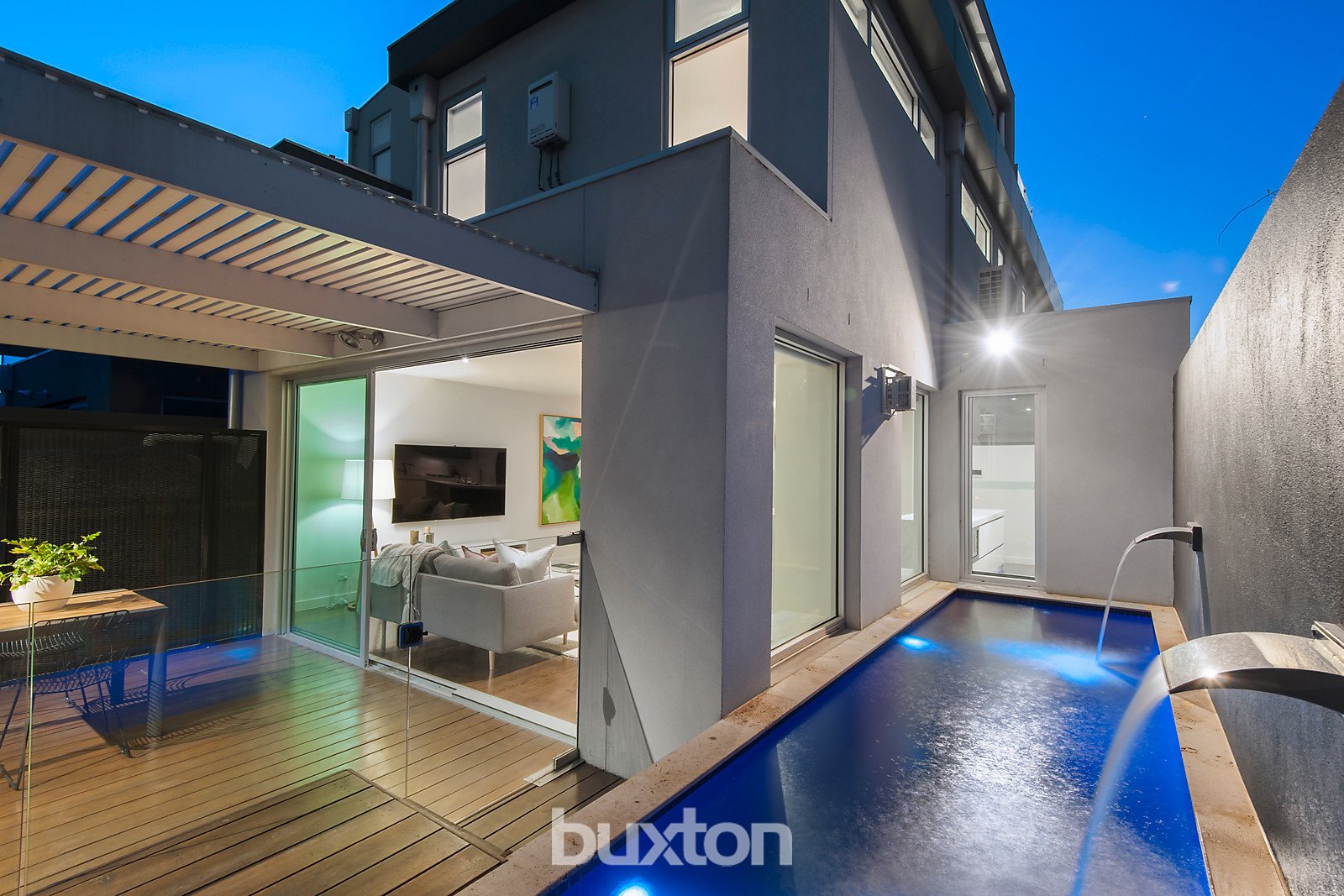A front and centre panorama of the City skyline, a seductive azure lap pool, luxuriously finished family spaces and beautifully generous open proportions. The opportunity to enjoy all these incredible elements is remarkable in itself, but even more so when, in just a short walk, you can be sipping a latte in Bay Street, on a light rail link to the CBD, walking the dog in Turner Reserve or taking an evening dip at the beach. Cool, calm and sophisticated over three light filled levels, this four bedroom home epitomises uncompromising inner city living with unforgettable indoor/outdoor entertaining spaces and sumptuous contemporary style. On the ground floor, large open plan living areas with gas fire and media storage include a showpiece marble kitchen with smeg appliances before sliding back to a brilliant undercover alfresco domain featuring heated pool with water feature and marble finished wet bar with built in Capital BBQ and under bench fridge. Three bedrooms on the mid floor share a large family bathroom, one with ensuite and balcony whilst the top floor is devoted to a magnificent main retreat featuring fitted WIR, ensuite and an oversized northern terrace against the City view. A long list of extras starts with ground floor powder room, travertine tiled bathrooms, custom fitted soft close storage, solid American Oak floors, auto blinds, ducted heating/cooling, intercom entry and internally access remote double garage with storage.