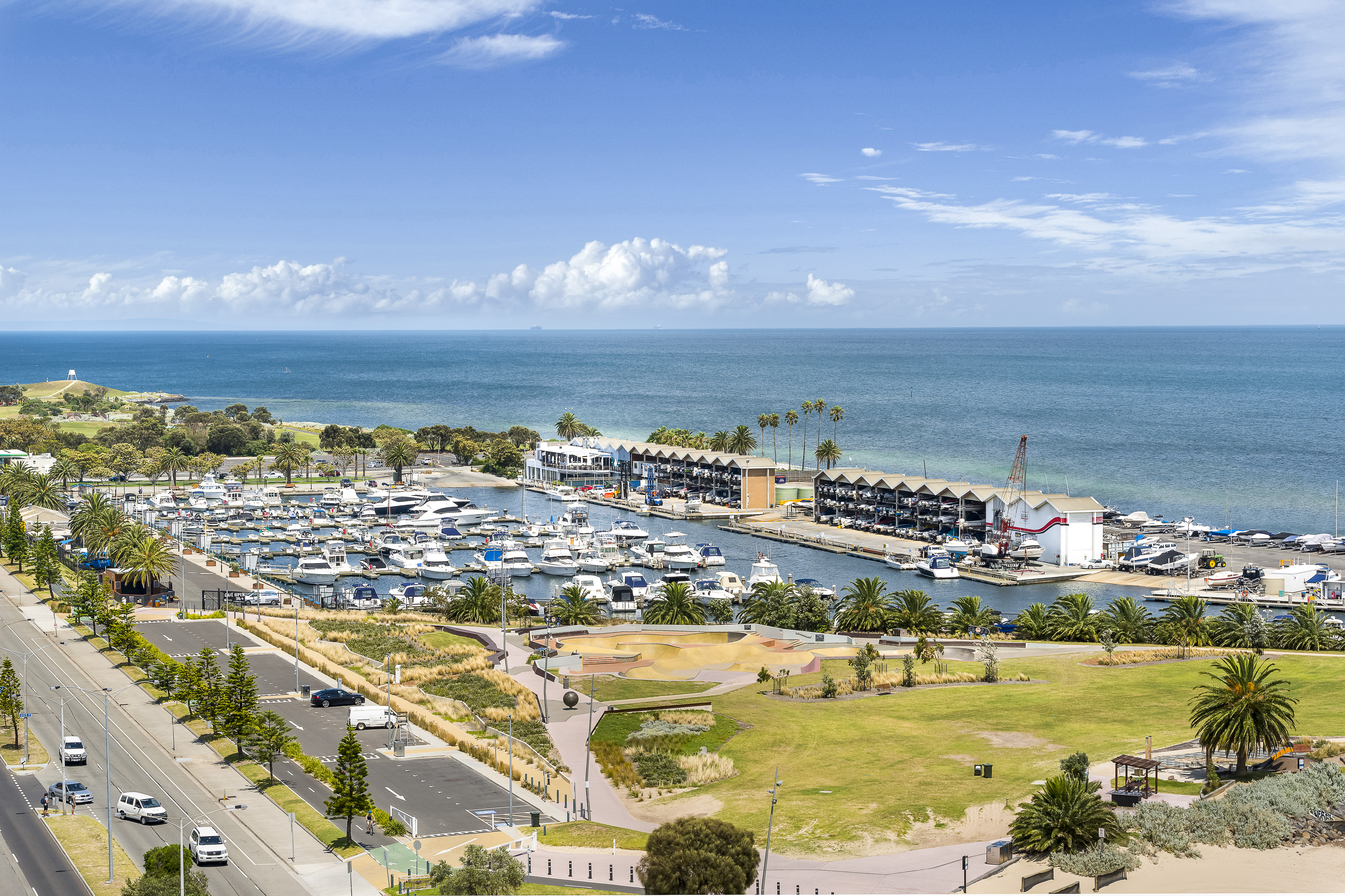 The landmark Edgewater Towers building, offers an iconic identity to complement this light-filled, fully updated ground floor apartment. Security entrance and evocative foyer introduce bright spaces including central living/dining and an open-plan kitchen featuring efficient storage and European appliances. A generous double bedroom with built-in robes provides instantly attractive accommodation and is enhanced by a fully tiled bathroom, fitted and finished with a designers eye for style. Off street parking is an added bonus in a prominent position so close to the beach you can smell the sea and around the corner from Acland Street shops.