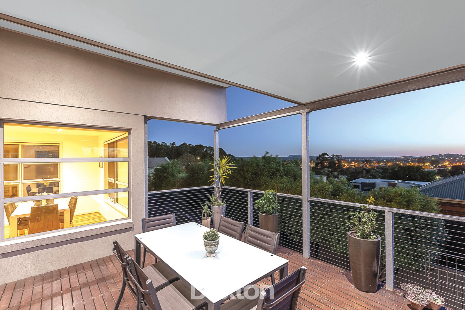 The kitchen is decked out with ceaserstone benchtops with overhead pendant lighting, stainless steel appliances and rangehood and enormous butler's pantry. Step outside onto the timber deck to stunning views over Ballarat and beyond.