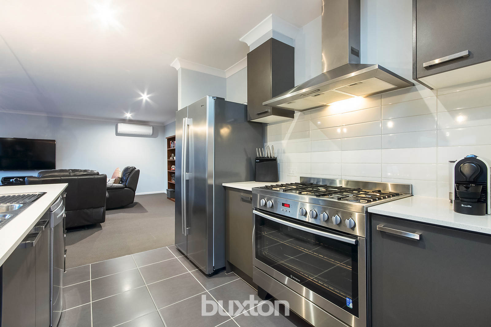 The open plan kitchen, living and dining area is the heart of the home and provides plenty of space to entertain family and friends, while also having the room of the second separate living area or kids retreat. The well-equipped kitchen offers quality stainless-steel appliances, gas cooktop, dishwasher, loads of storage, stone bench tops and is big enough to cater for everybody.