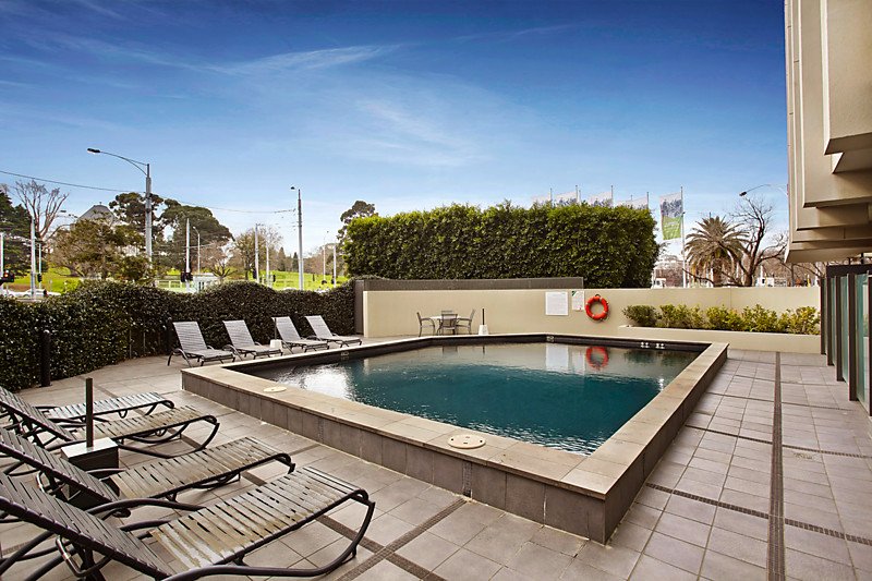 Instantly appealing for its understated elegance and beautiful backdrop, this open-plan 1-bedroom apartment is a stylish inner-city option offering easy access to the very best of central Melbourne. With a compact, yet supremely functional layout, incorporating kitchen/meals area featuring granite benchtop, Miele appliances, dishwasher drawer, bedroom area with mirrored built-in robes, while the sunken lounge and undercover balcony enjoy mid-morning sunshine and an outlook taking in the Shrine of Remembrance and surrounding parklands. Within the classy confines of the Hallmark building on the corner of St Kilda Rd, complete with a 7-day concierge and communal gym, open-air pool, sauna and steam room, its fantastic location ensures Albert Park Lake, public transport, the Botanic Gardens, Southbank's arts district and the vibrant CBD are all just moments away. Includes a secure same-level car space plus handy visitors' parking, storage cage and reverse-cycle heating/cooling.