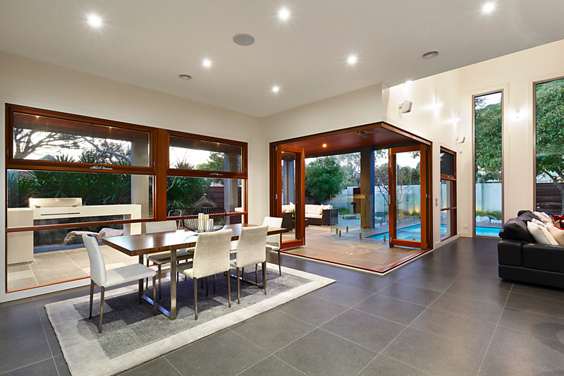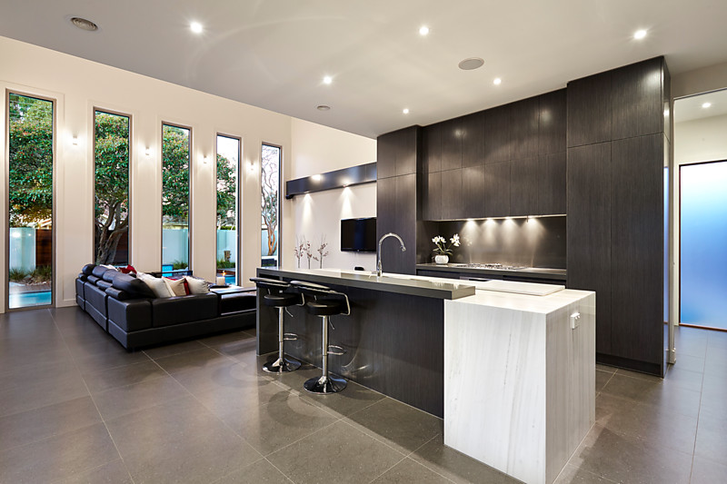 Appointed to an extraordinary standard with a Pentelic Marble and Miele appliance kitchen with butler's pantry, and fully-tiled bathrooms, the home features a rich mix of high-end finishes (including natural and composite stone benchtops, Emporite cabinetry and porcelain and Spotted Gum flooring) and prestige appointments (including Hills Hub cabling, ducted and in-floor heating, cooling, vacuum, alarm, video-intercom, inside-out surround-sound wiring and selected double-glazing).