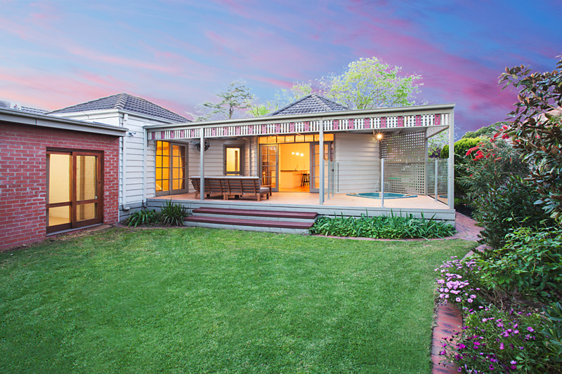 A wonderful ambience in tranquil landscaped environs (702m2/7556sqft approx) provides an idyllic family setting for this spacious weatherboard residence with a true entertaining focus. Natural light and timber floors wash through an instantly welcoming lounge room with fireplace, merging with a renovated stone kitchen featuring large breakfast bar, glass splash back and SMEG appliances, whilst a casual family/meals area has prime views of the glorious garden surrounds. Timber sliding doors open out to an inspiring outdoor entertaining area complete with covered tiled patio and spa all overlooking a pristine established garden. 4 robed bedrooms including main with ensuite and an immaculate bathroom are complemented by ducted heating, split system AC, bungalow/home office with A/c, workshop and 2 off street car spaces. Brilliantly located moments to GESAC, a short stroll to Mackie Rd shops & cafes, Coatesville Primary School, the Southland/Chadstone bus, and sporting facilities.