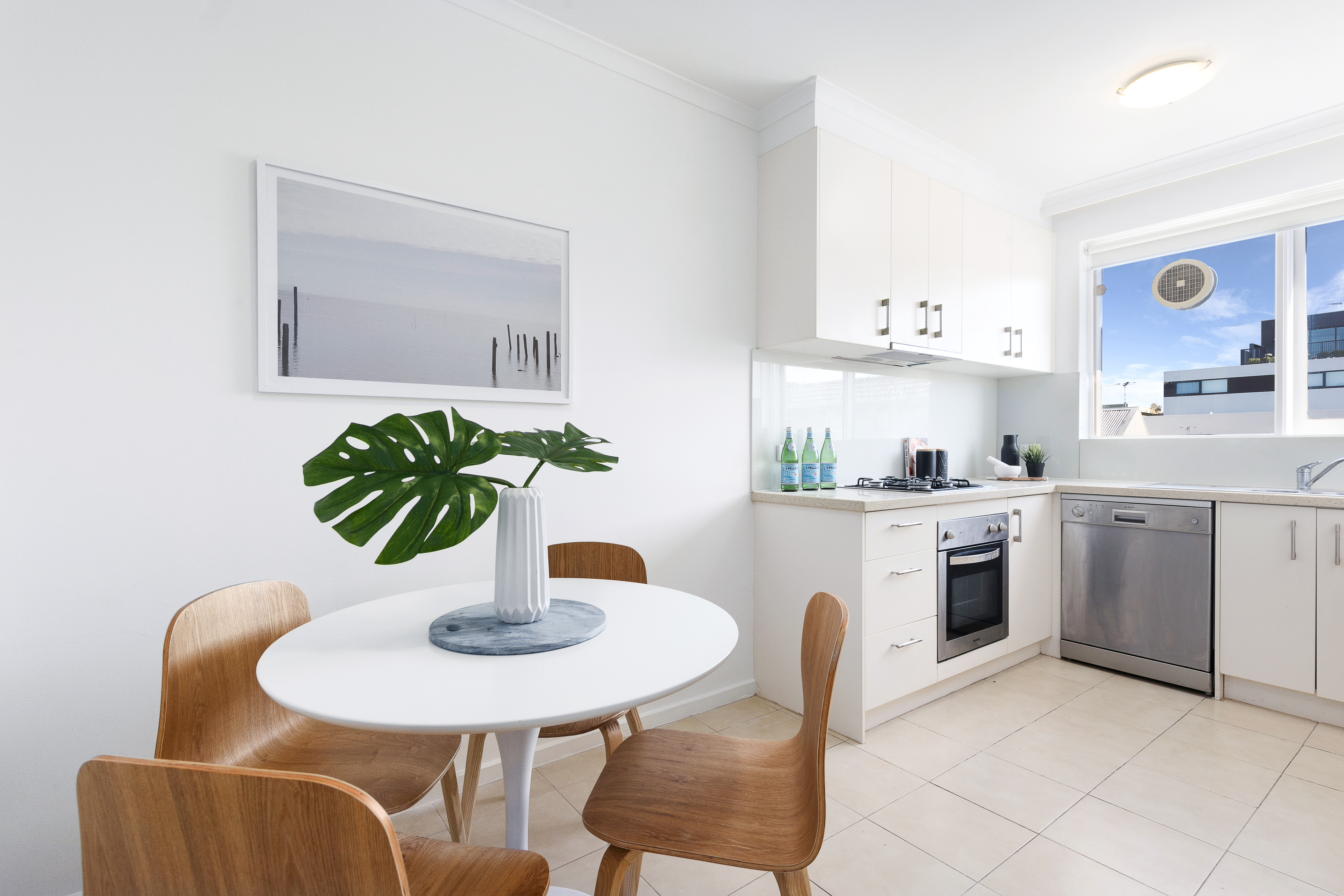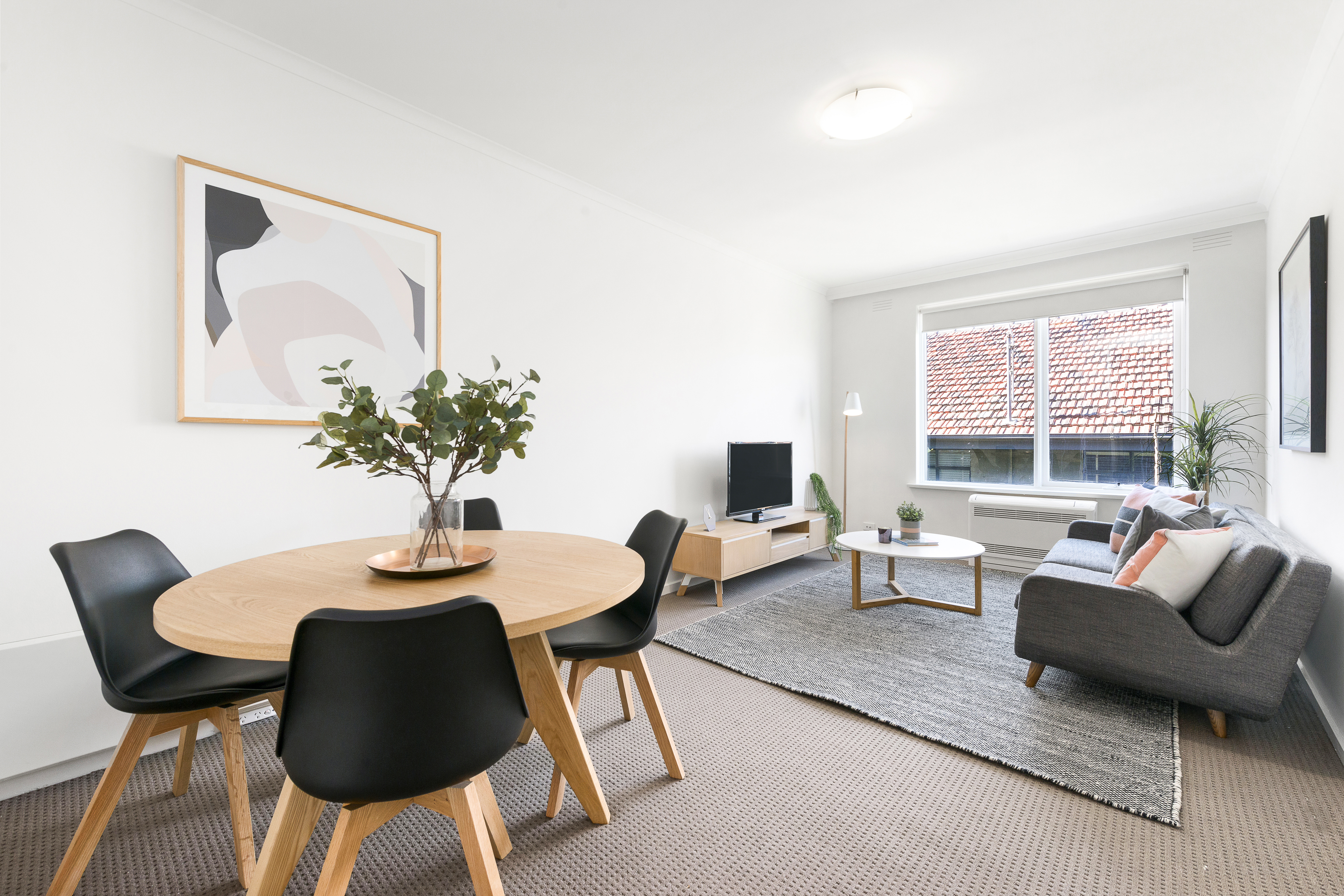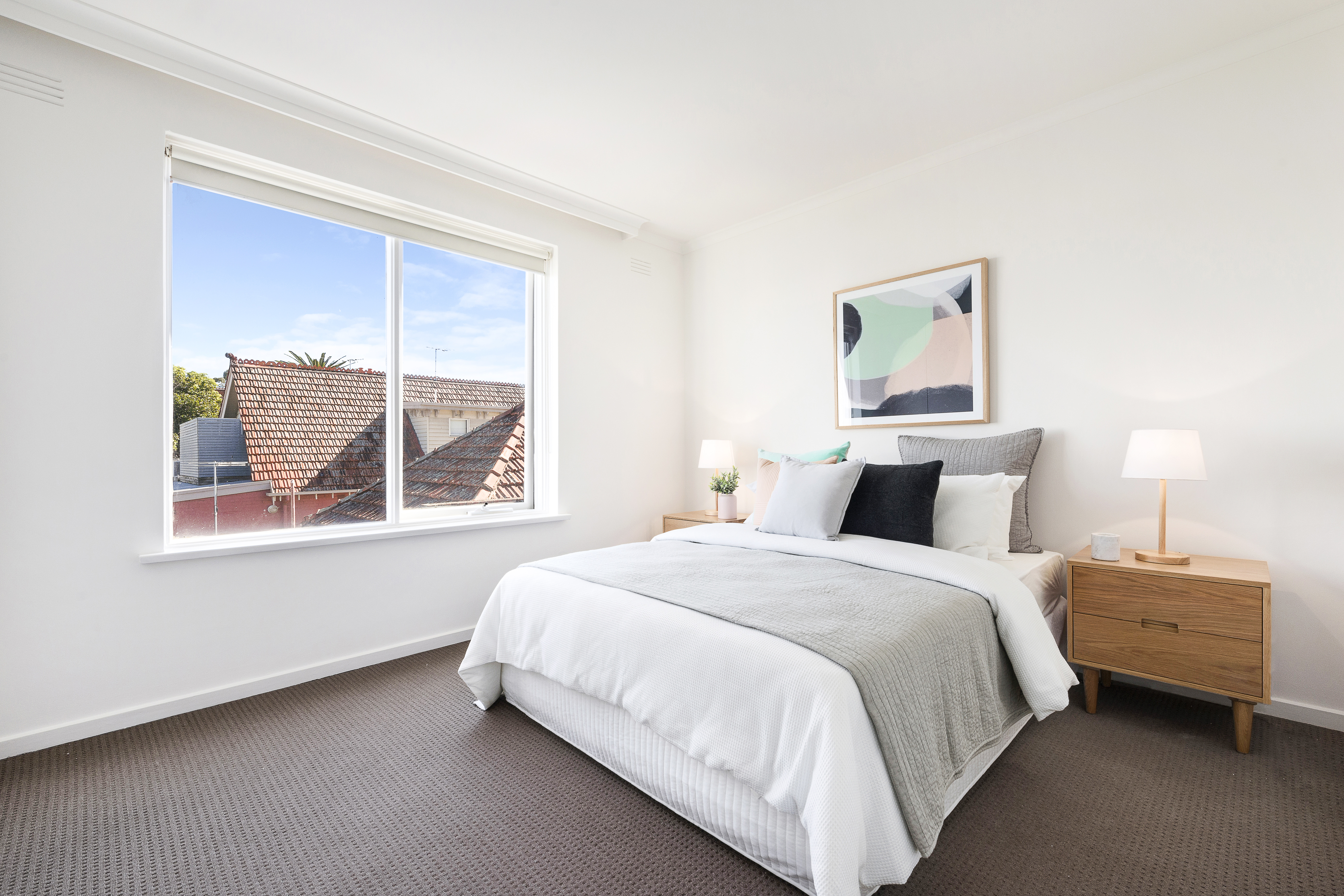 Situated at the rear of this well presented building amongst established gardens, this irresistibly modern and light filled apartment comprises; an unusually spacious living/dining room, generous bedroom complete with BIR and bay glimpses, a renovated contemporary kitchen with stone benchtops, Blanco appliances including gas cook top and dishwasher plus a dedicated meals area, the bathroom has a shower over bath and Euro laundry. Features include; timber floors throughout (please note the photos used show the property prior to the flooring being replaced), heating/cooling, security intercom access and off street parking for one car. There is also the option of including a fridge and washing machine. Situated within walking distance of Carlisle and Acland Streets, St Kilda Road trams and the beach. An enviable lifestyle awaits!