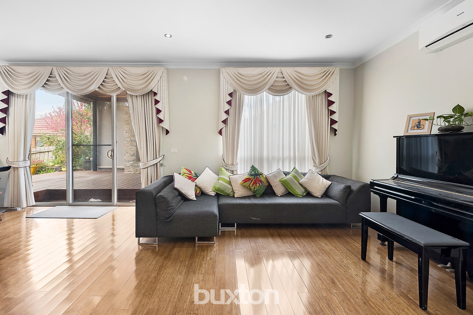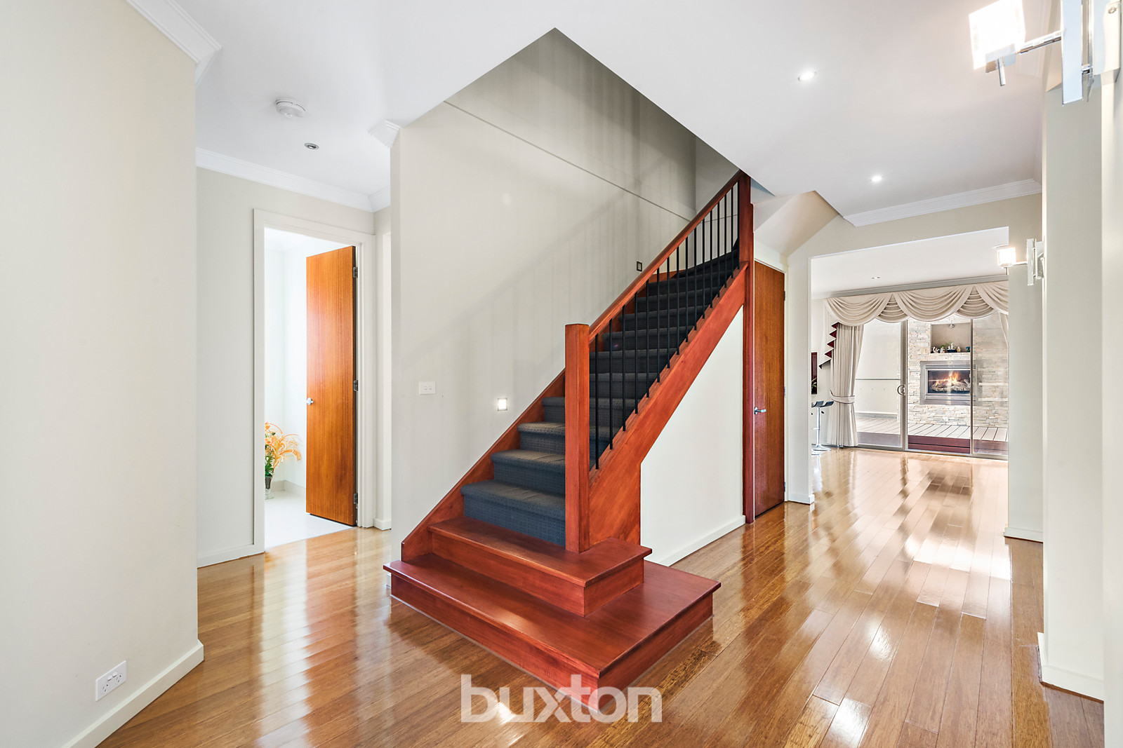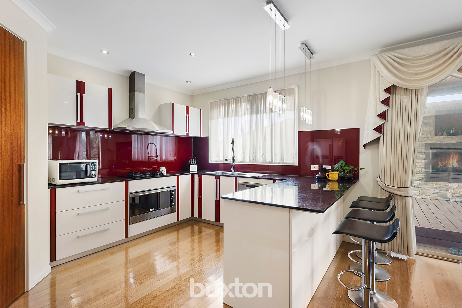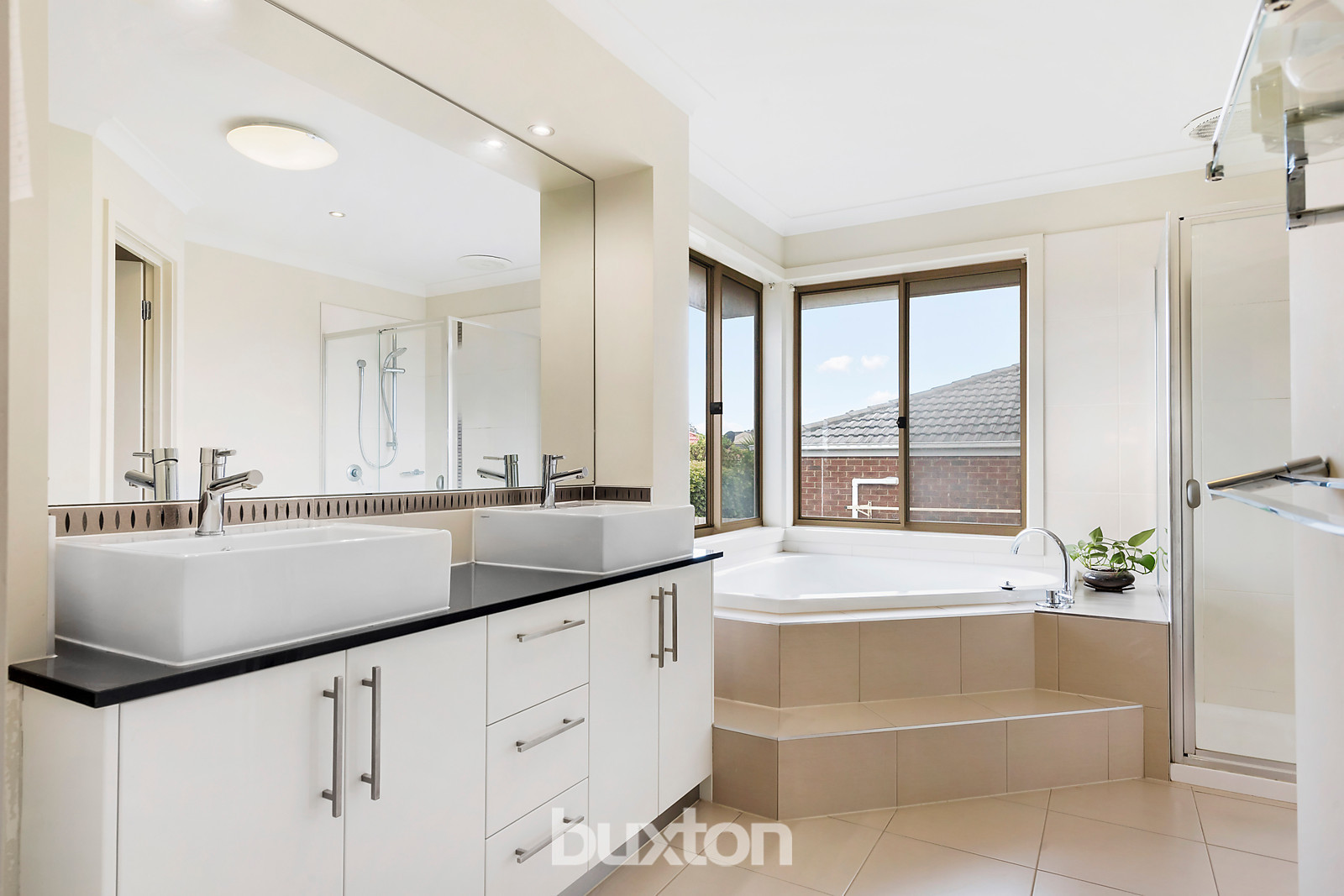 Quietly tucked away in a peaceful leafy neighbourhood, this contemporary 4-bedroom plus study two-storey residence will meet all the needs of your growing family. Downstairs enjoys a sophisticated formal living room, study/home office plus expansive open-plan living, dining and well-appointed stylish kitchen (WIP, stainless steel appliances) extending onto a stunning undercover entertainer's oasis with automatic retractable awnings and cosy gas log fire. Surrounded by an exquisite landscaped garden and secure yard, relax and watch the kids explore and play. Upstairs is an elegant master retreat with luxe en-suite (cnr bath, separate shwr, dbl vanity) and private dressing space (BIR), three further bedrooms (2-WIR, 1-BIR), gleaming family bathroom and spacious 3rd living zone. Features bamboo floors, stone benchtops, ducted heating, split systems, solar hot water, u/stair storage, dstrs pwd/r, full laundry and double auto garage (internal + rear access). Stroll to the bus and playground. Moments to Carrum Downs Regional Shopping Centre, schools and reserves plus fantastic transport links via the M3/M11 Fwys.