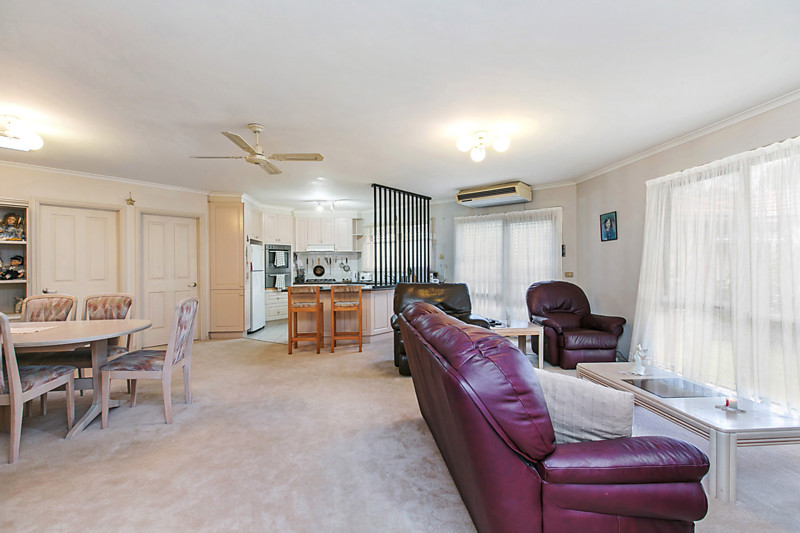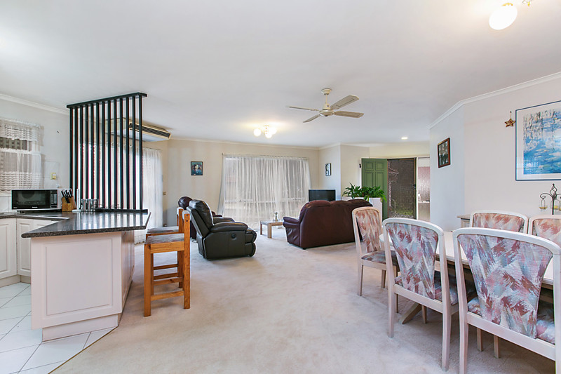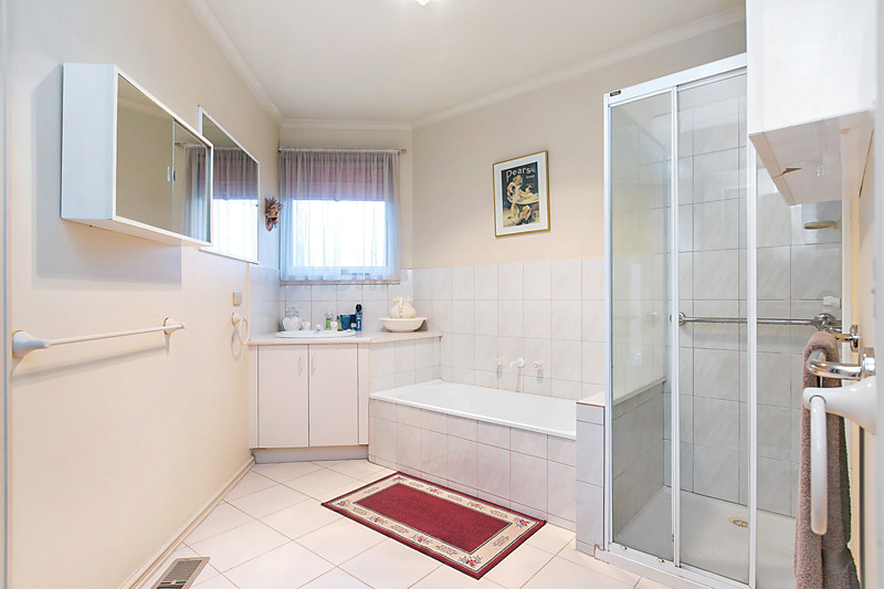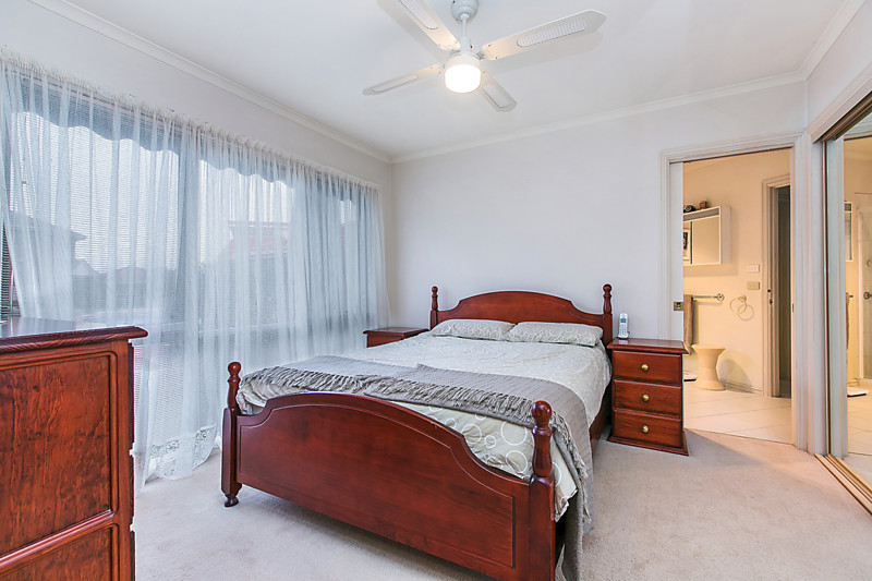 Presented in timeless style with a clever two-way ensuite bathroom with (separate WC) and a classic kitchen (upgraded with new stainless-steel appliances), this centrally heated home has reverse-cycle air-conditioning, a handy ducted vacuum and glossy mirrored robes for every bedroom.