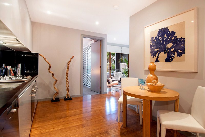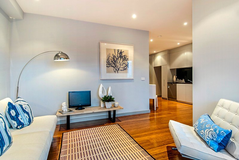 Combining the peace of mind of video-intercom security entry with the openness and ease of a streetfront position, this as-new apartment features free-flowing living with separate areas to lounge and dine and naturally-lit robe-fitted bedrooms zoned well apart. Finished to an elite standard with reflective black stone benchtops and splashbacks for the Miele appliance kitchen and a fully-tiled stone-finished bathroom, this cutting-edge home stars hard-wearing bamboo floors, climate-controlling reverse-cycle air-conditioning and secure garaging with storage.
