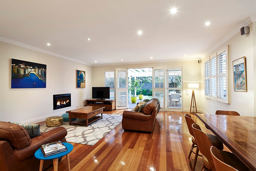 Starring a state of the art Blanco and Miele kitchen and quality bathrooms (including a dual vanity ensuite), this substantial family home has prestige extras including ducted heating/cooling and surround-sound and classic appointments including fireplaces (one open, one gas) for each living zone, solid Australian hardwood floors and elegant plantation shutters.