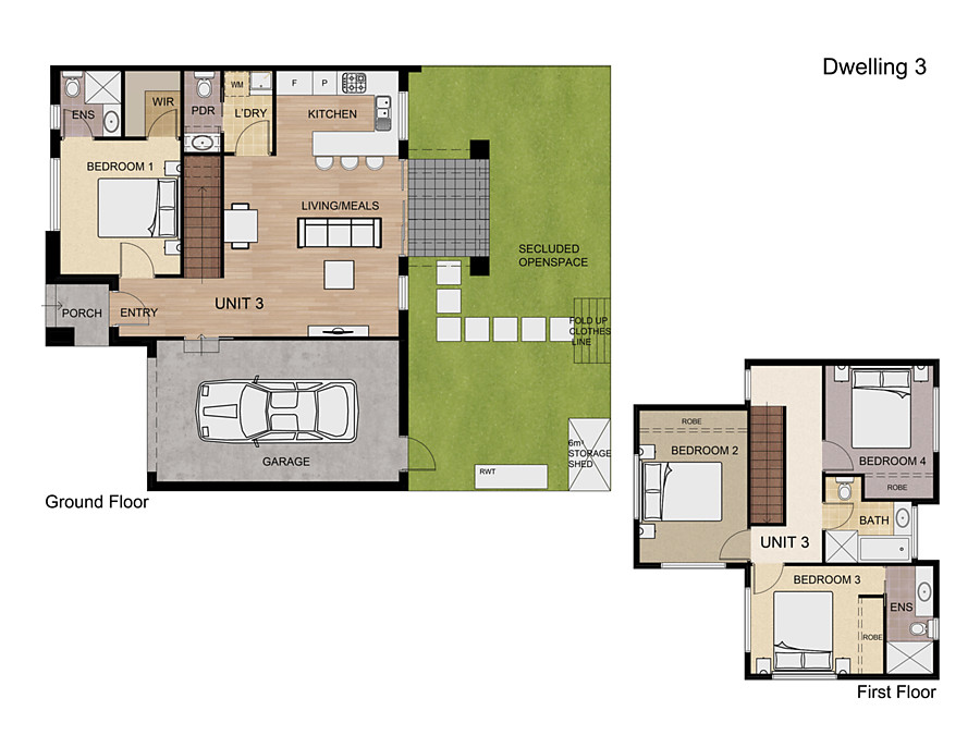 This stylish group - of only 3 Homes - offers spacious 4 bedrooms, 3 bathrooms with sun facing gardens, prime positioning and independent living. Each home offers its own driveway, stone bench tops, Tasmania oak flooring, air conditioning, heating, remote garage, tiled bathrooms, separate toilets and much more.